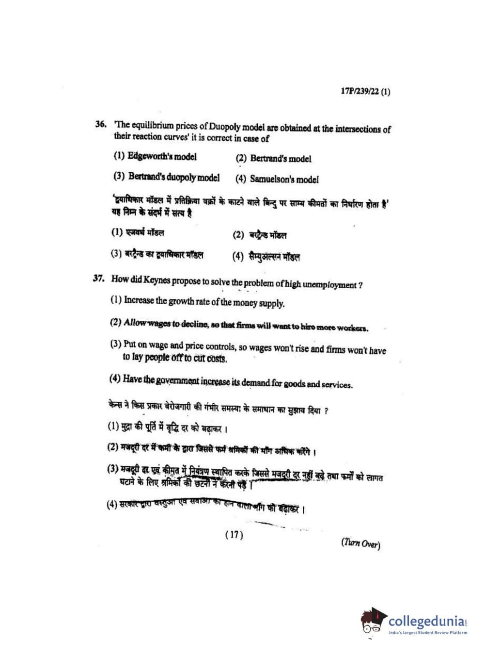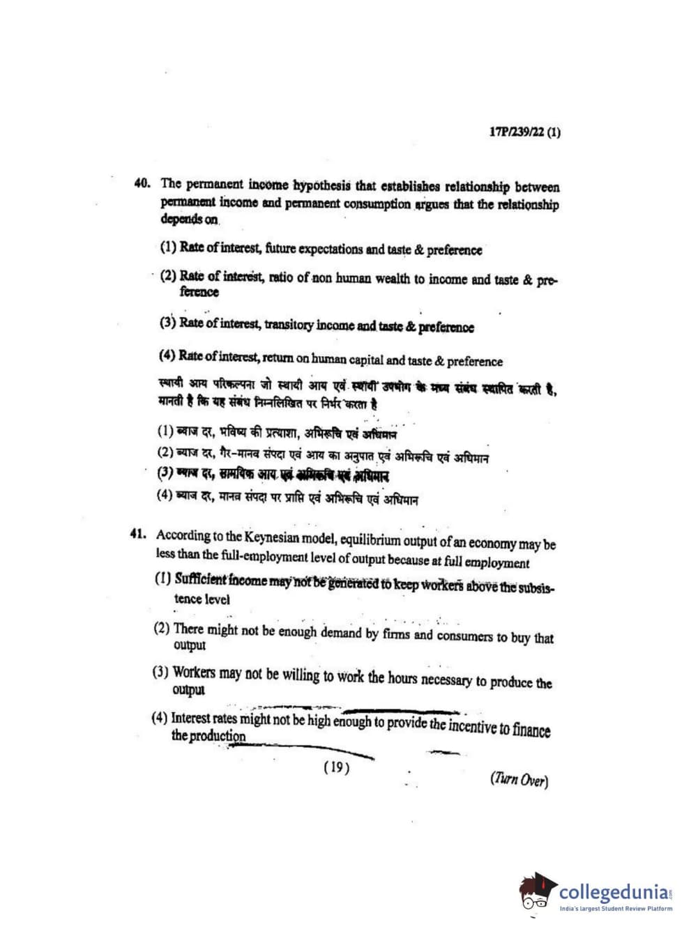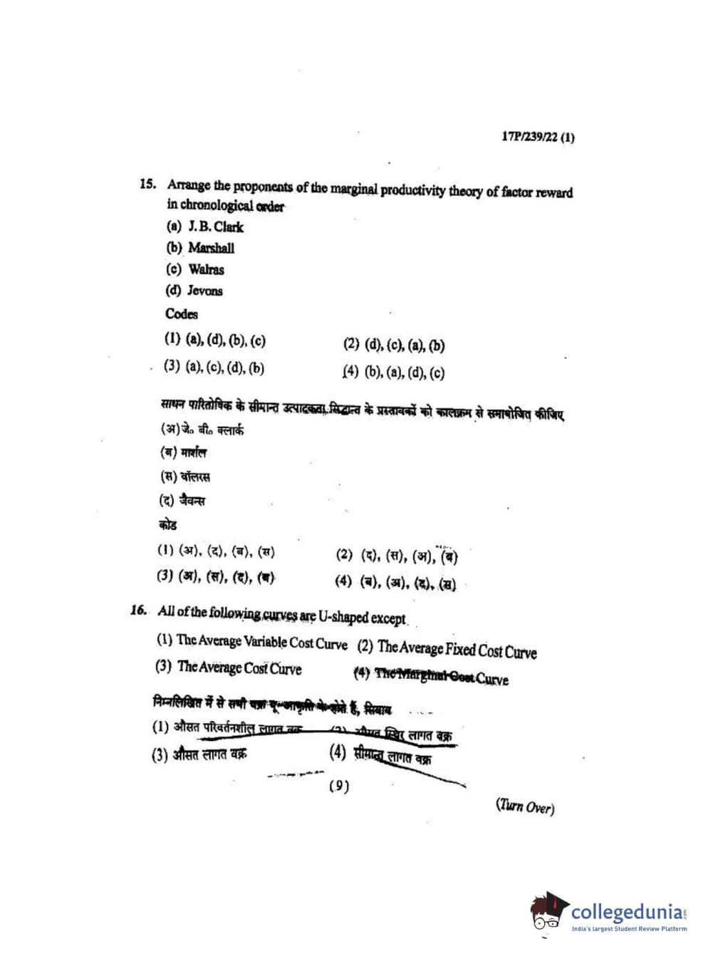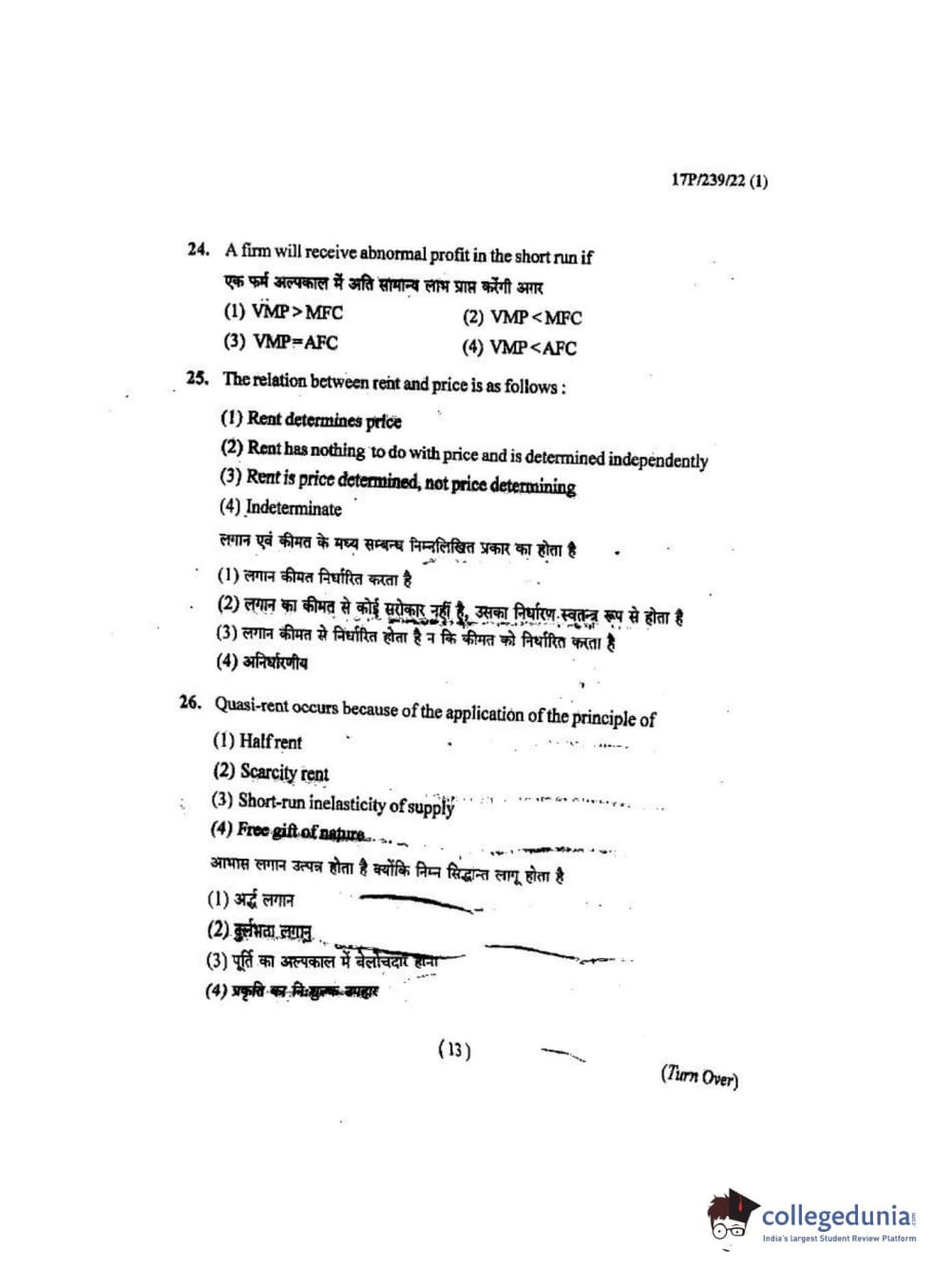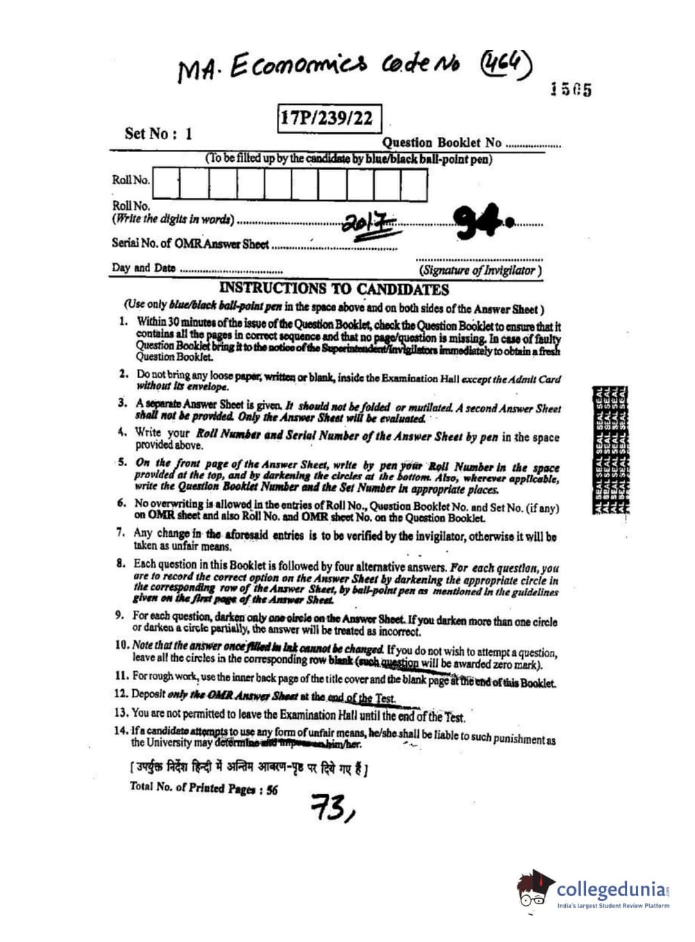 BHU PET 2017 M.A Economics Question Paper with Answer Key PDFs