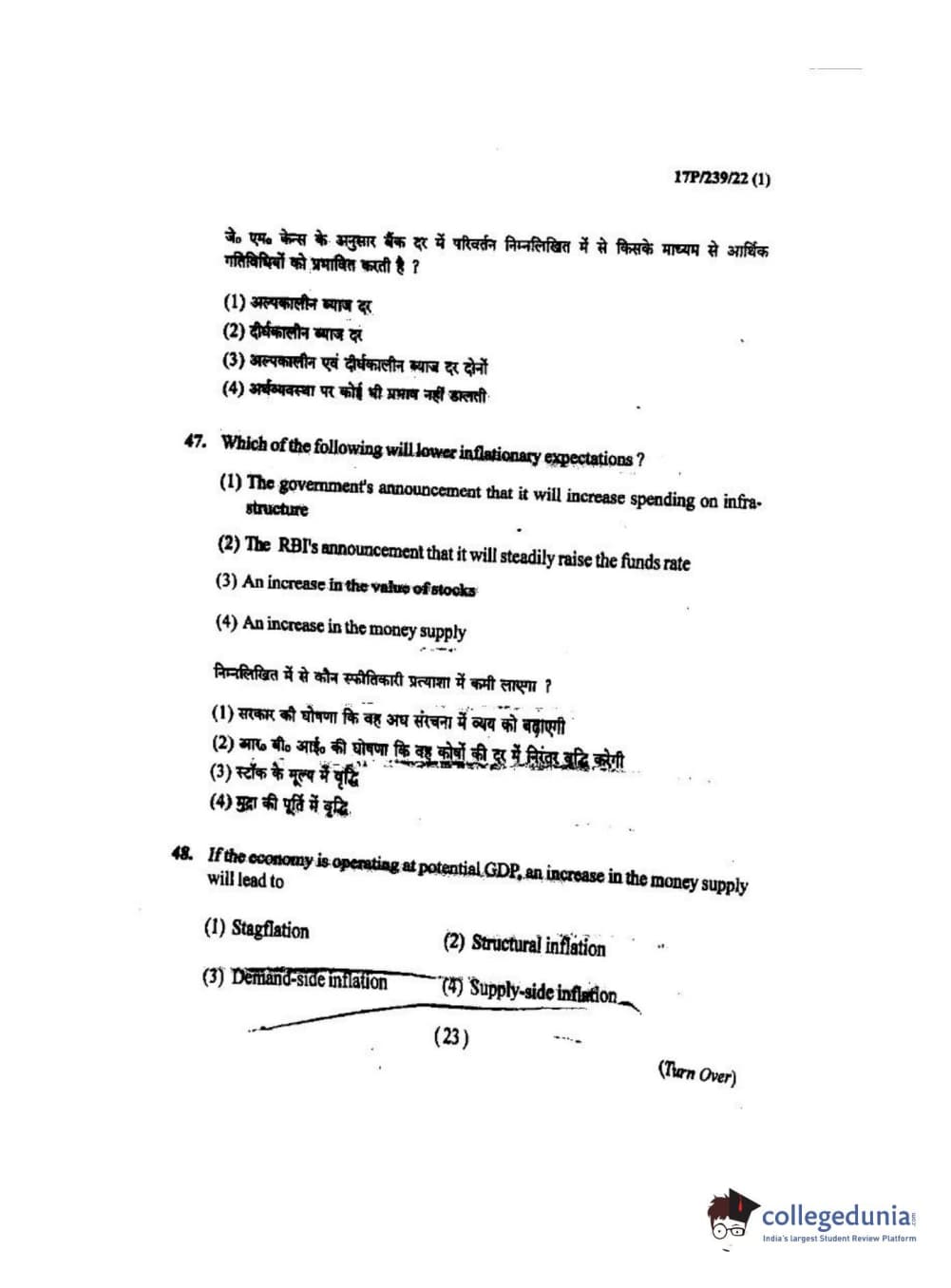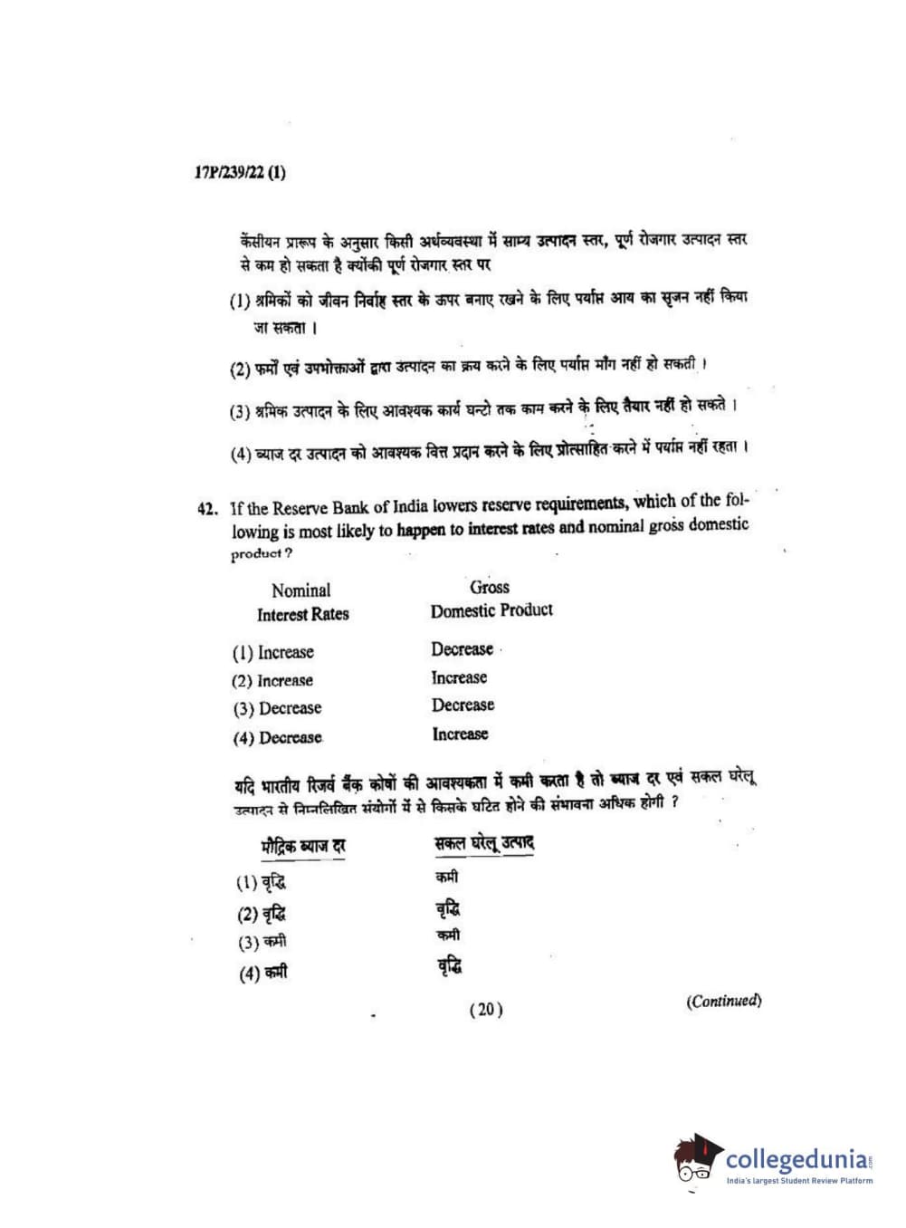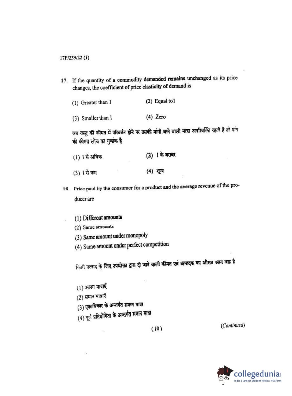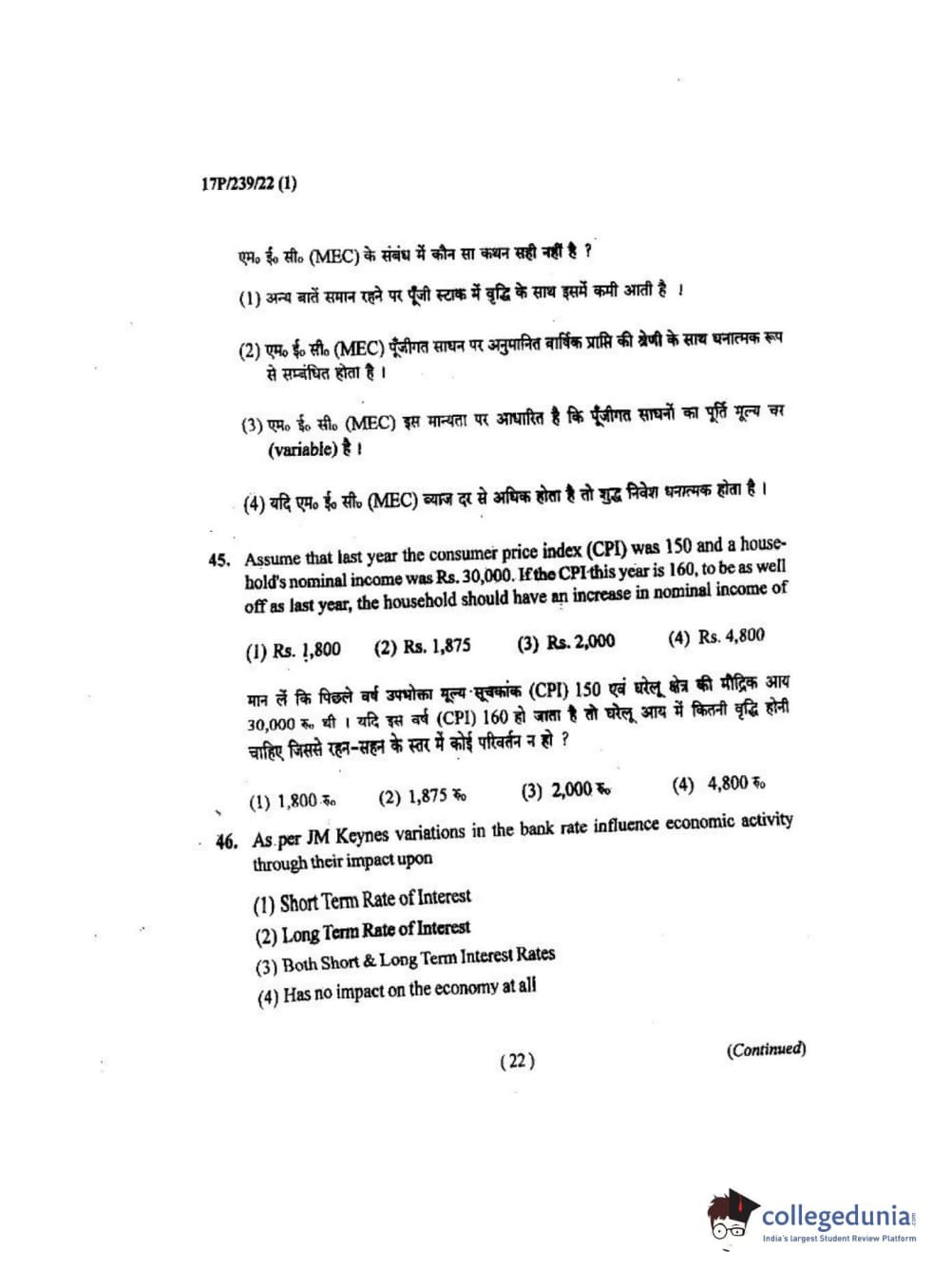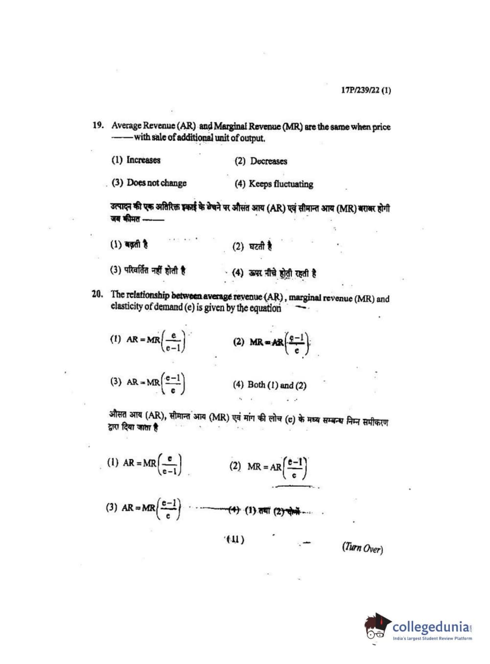 BHU PET 2017 M.A Economics Question Paper with Answer Key PDFs