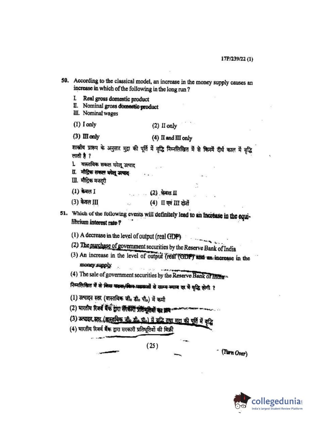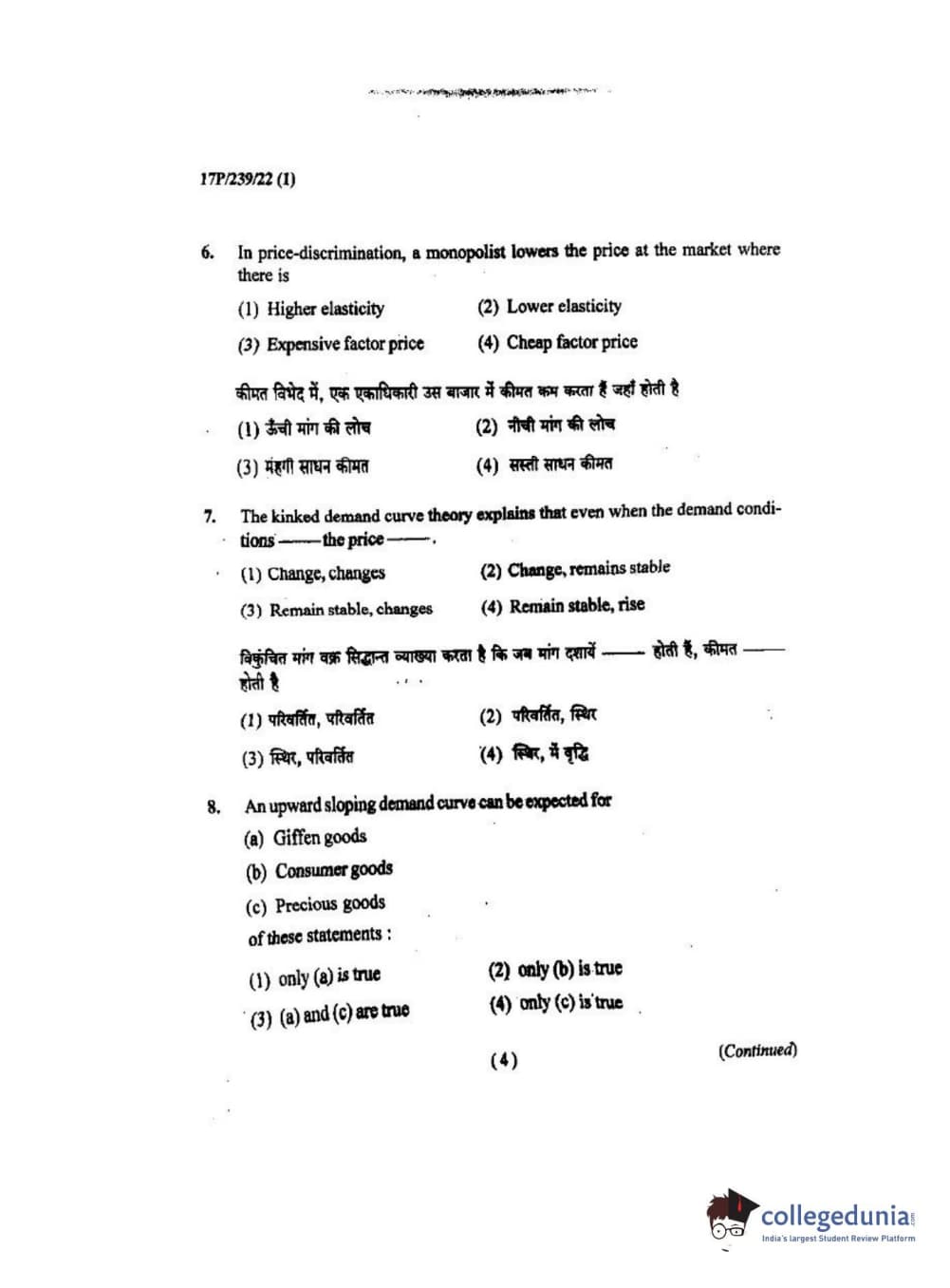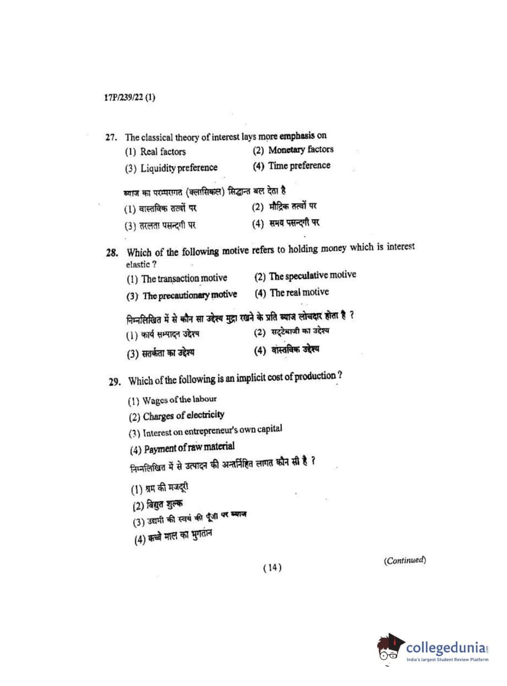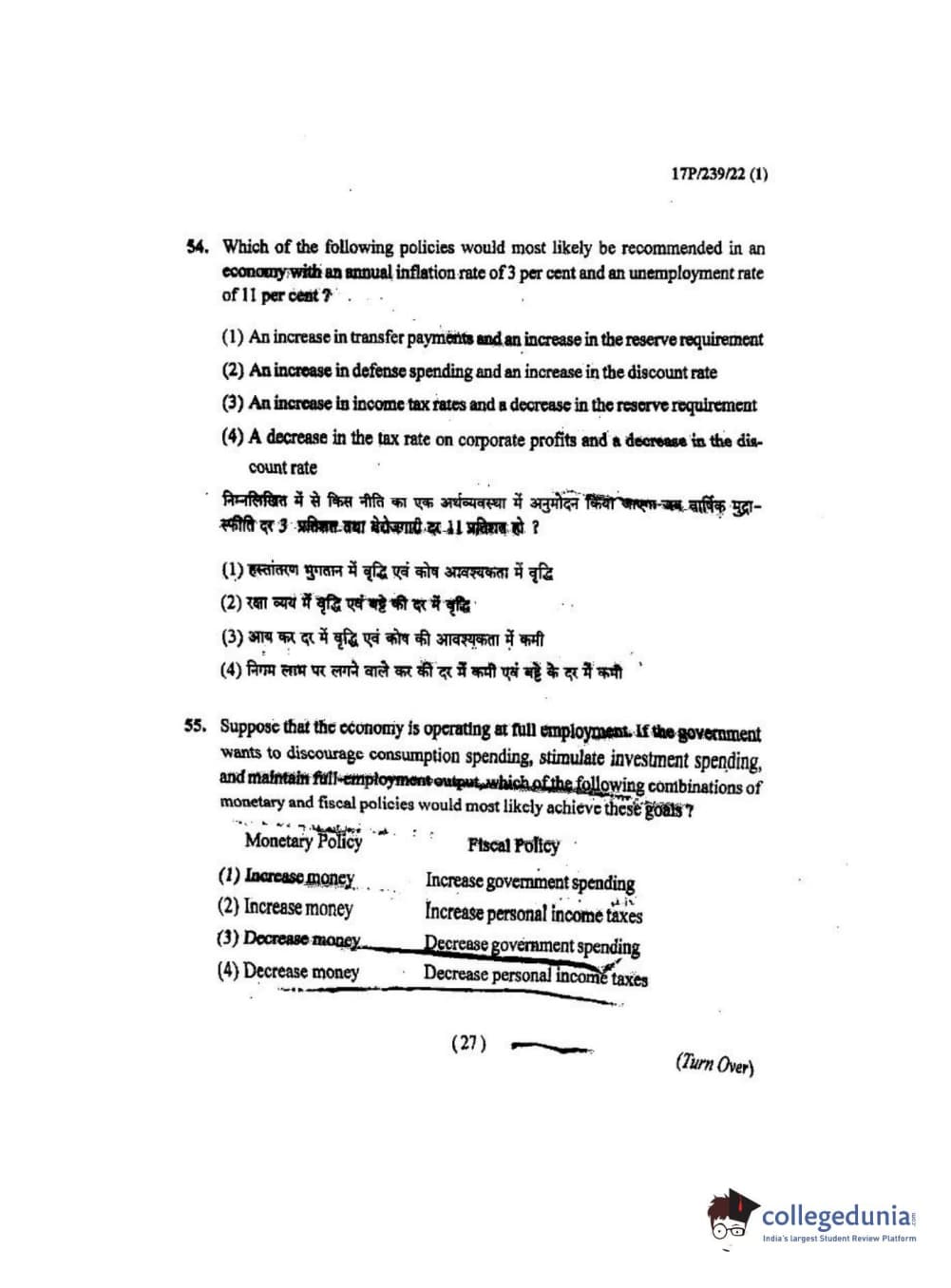 BHU PET 2017 M.A Economics Question Paper with Answer Key PDFs