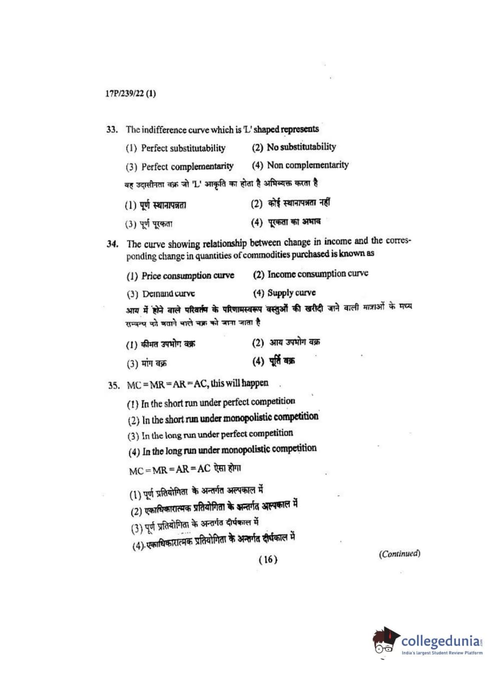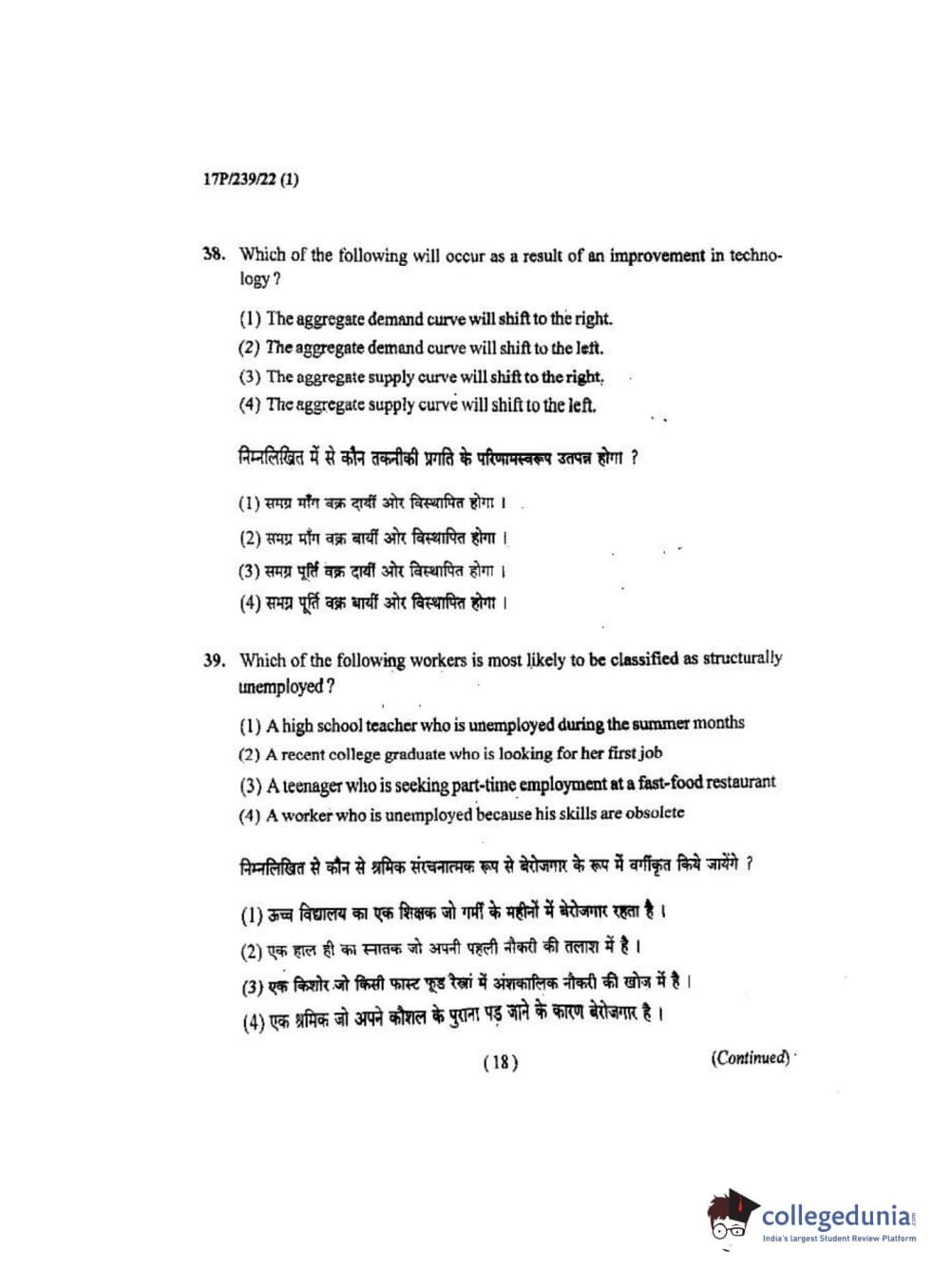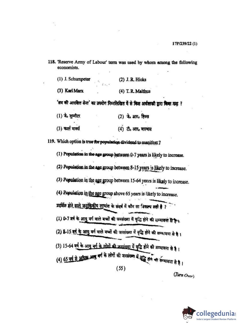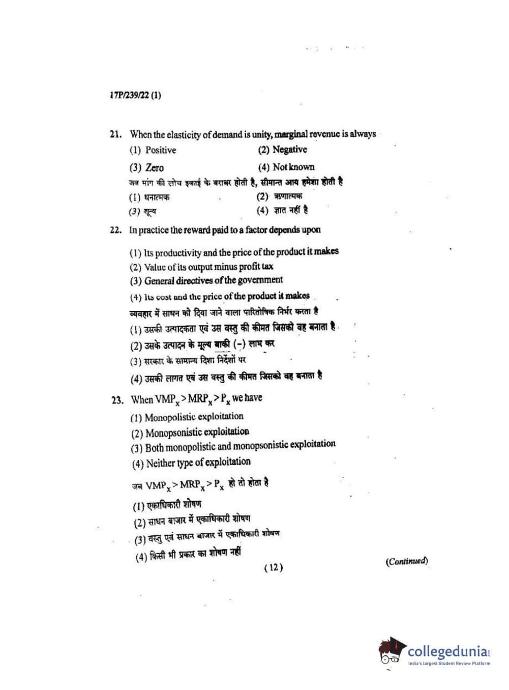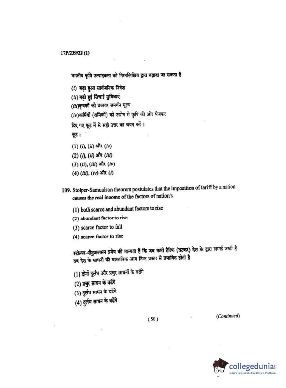 BHU PET 2017 M.A Economics Question Paper with Answer Key PDFs