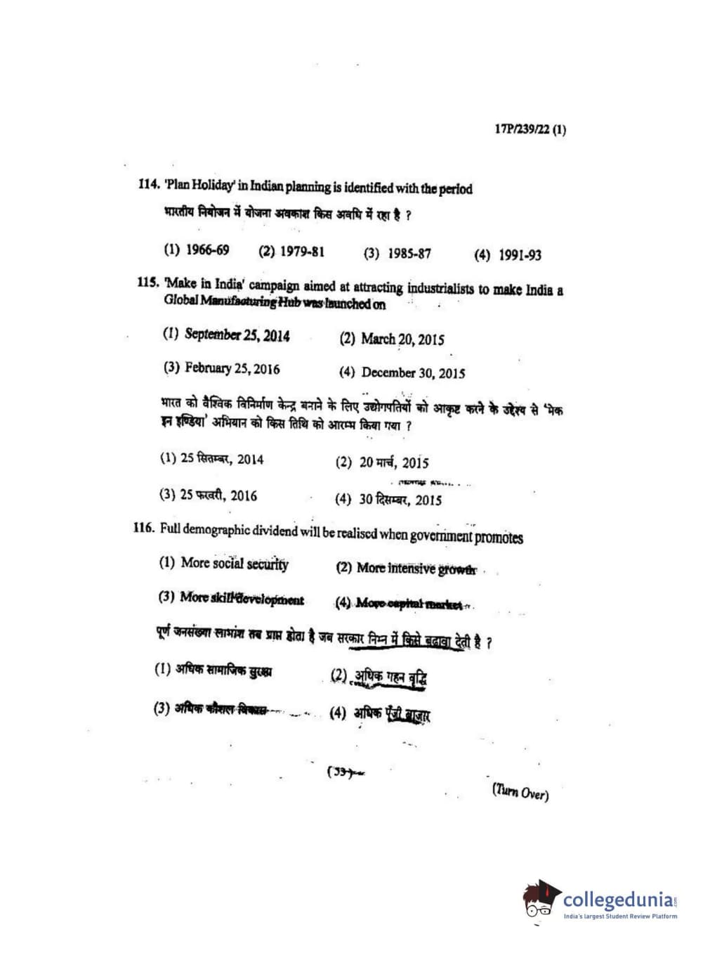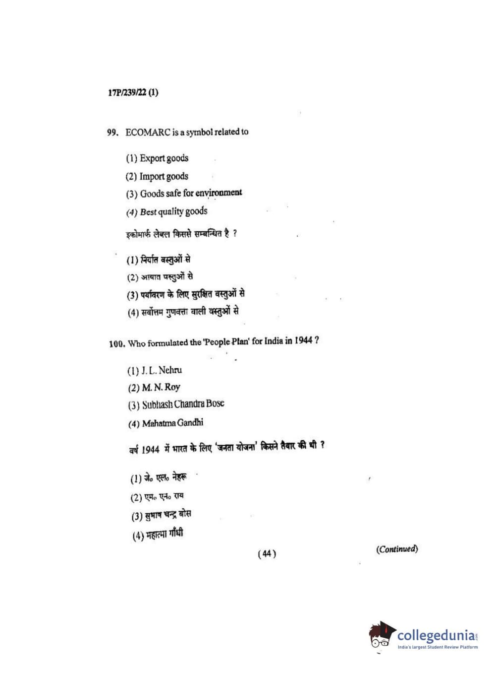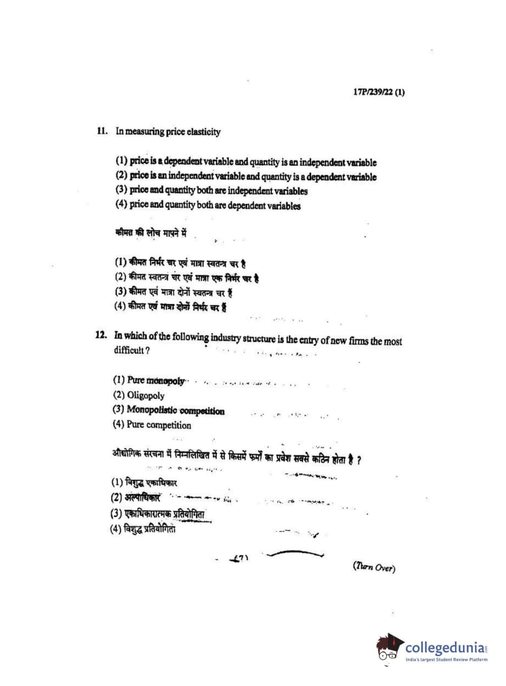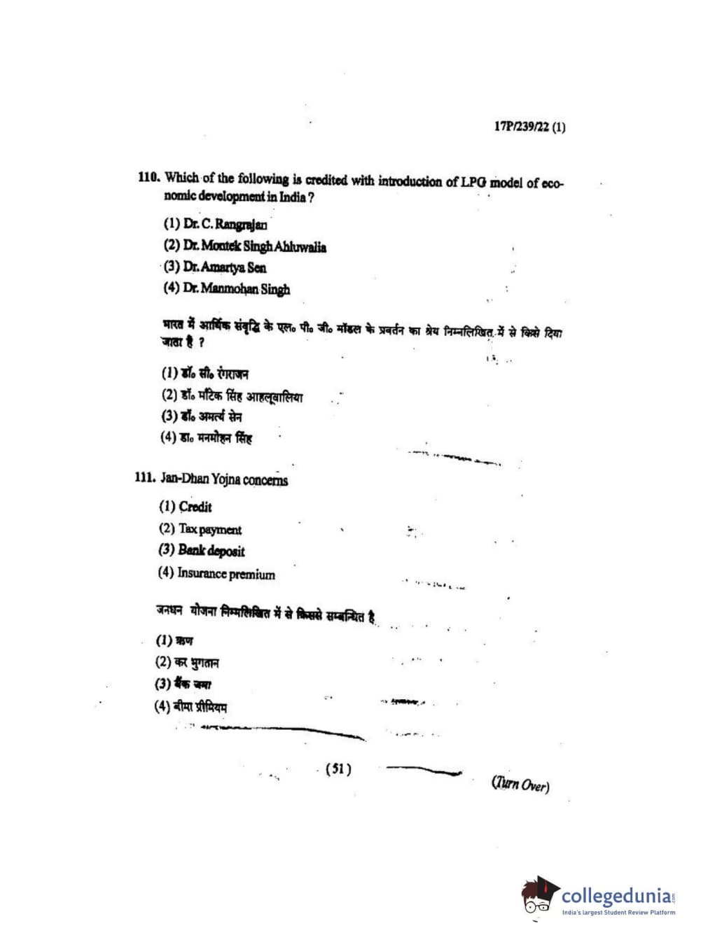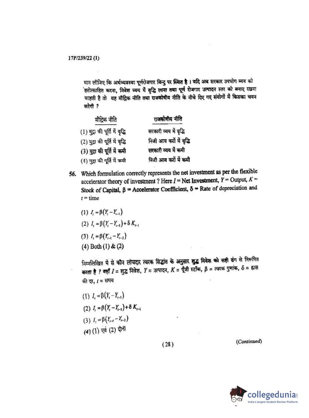 BHU PET 2017 M.A Economics Question Paper with Answer Key PDFs