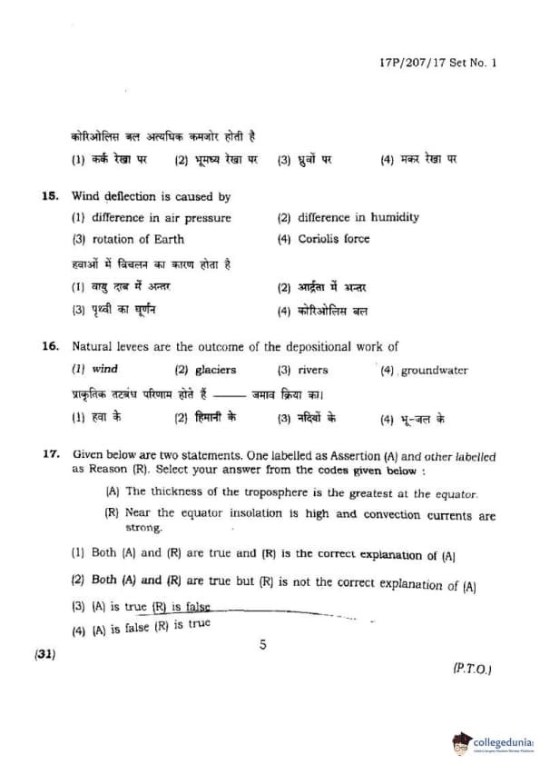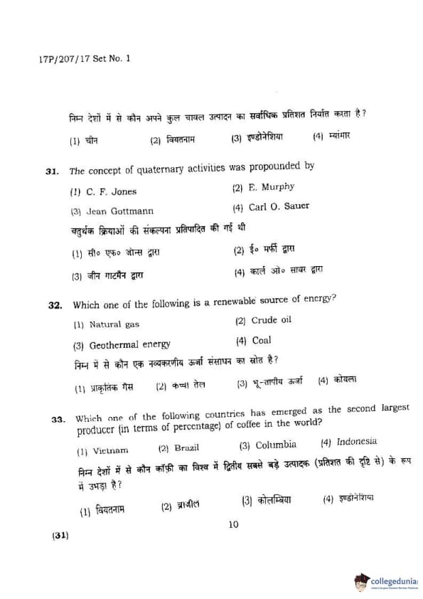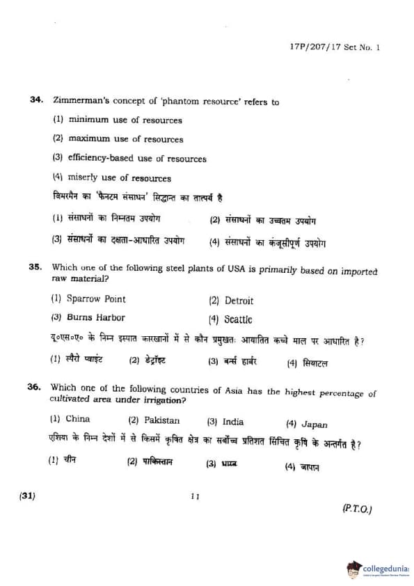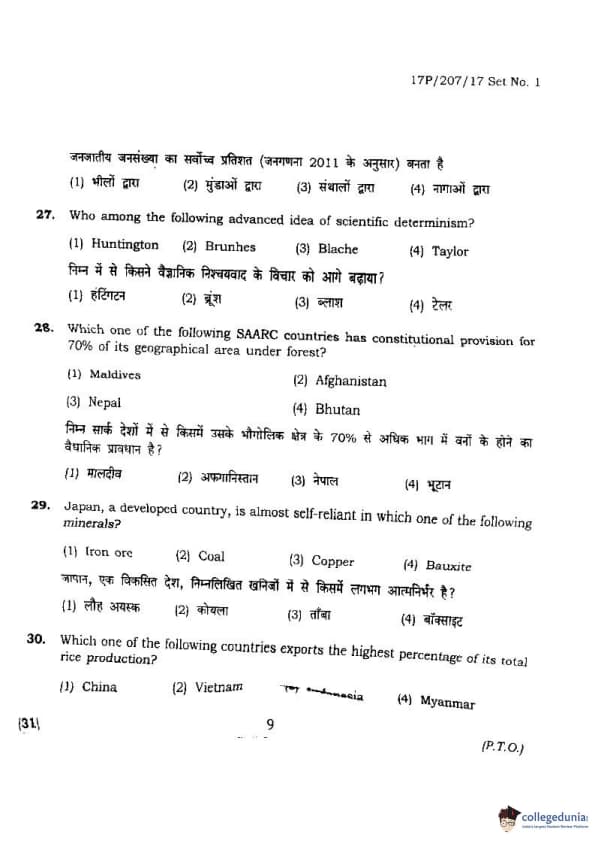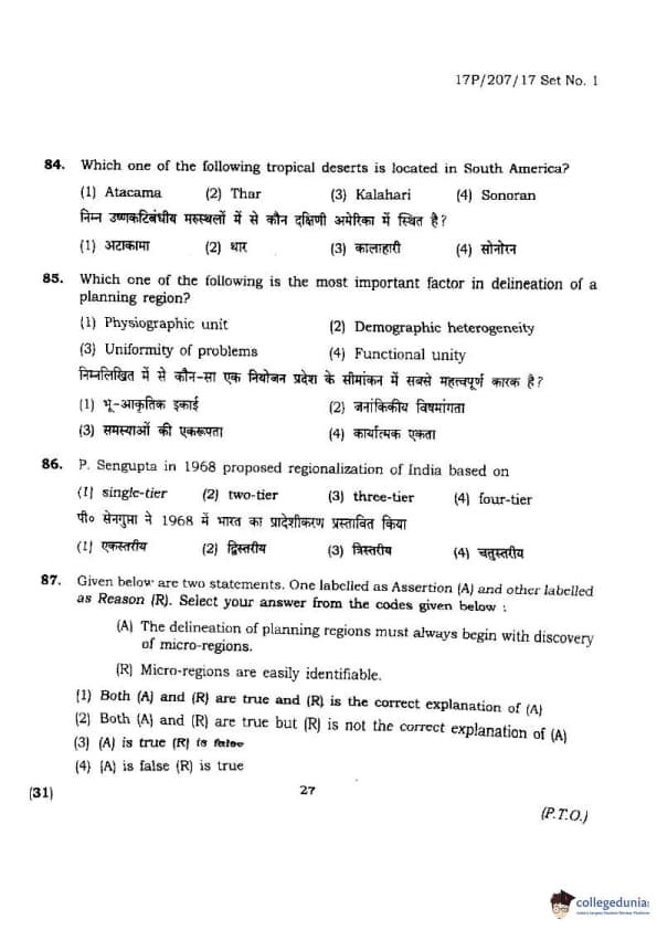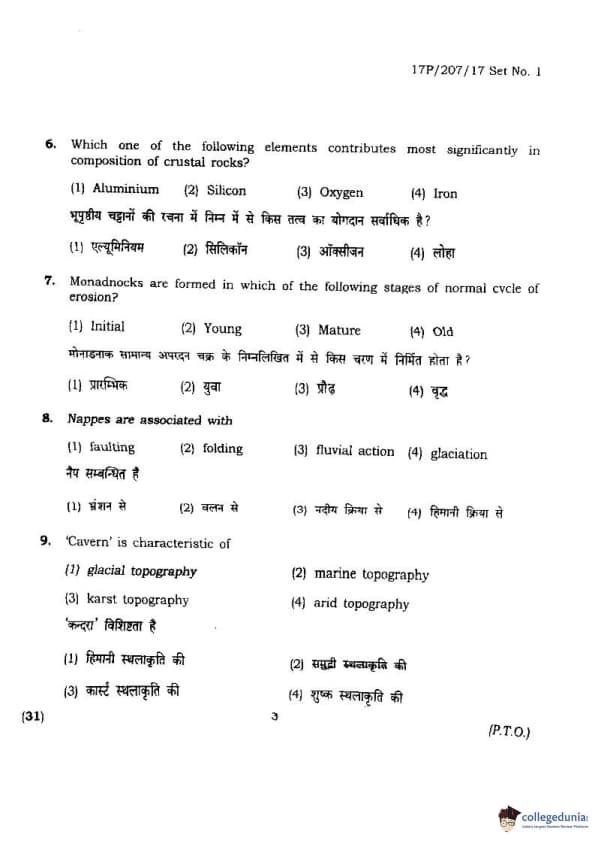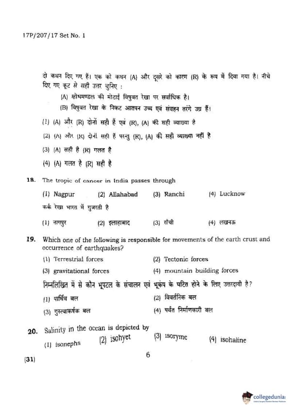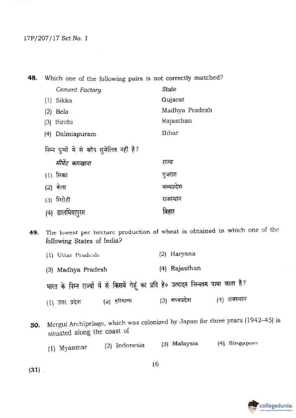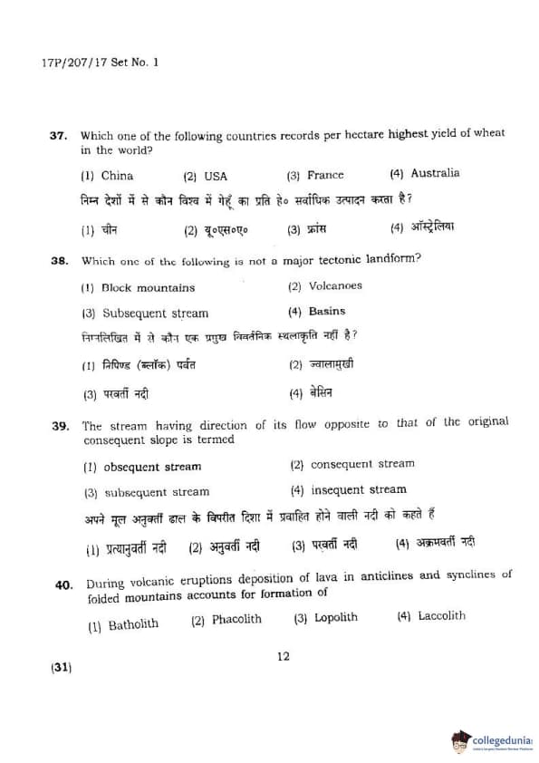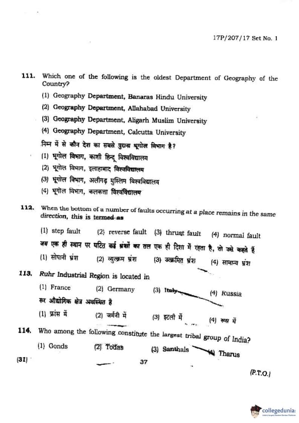 BHU PET 2017 M.A. Geography Question Paper with Answer Key PDFs