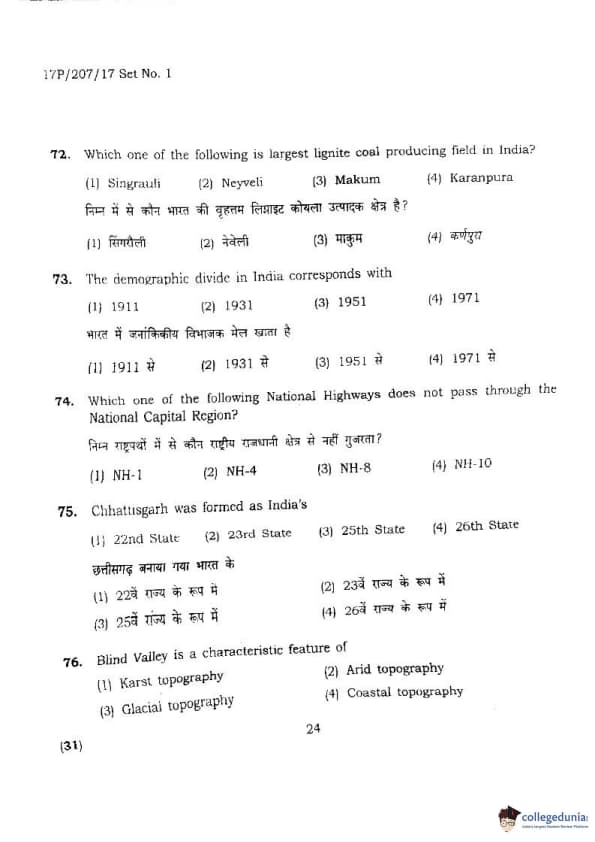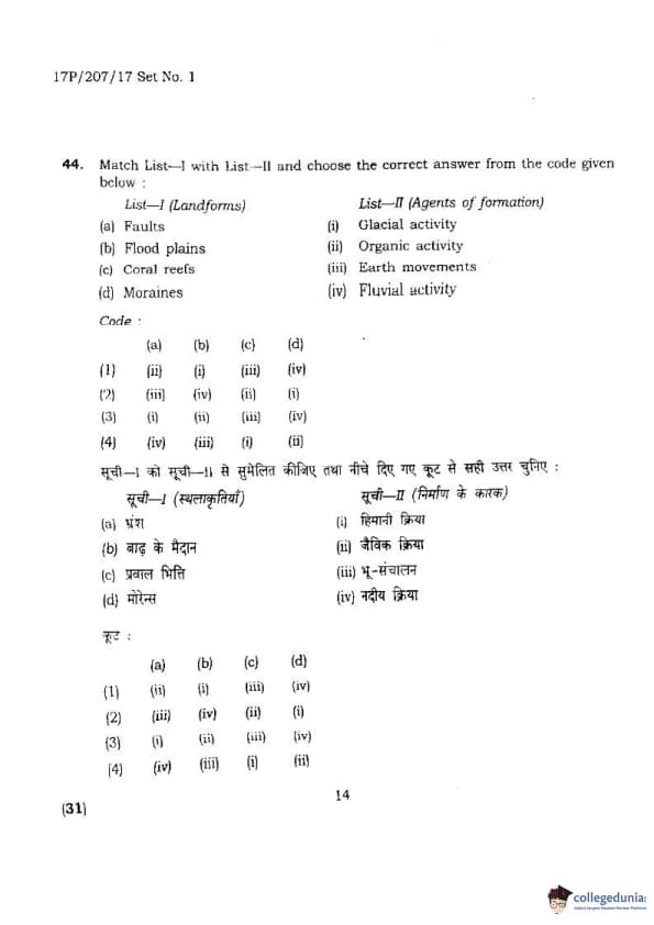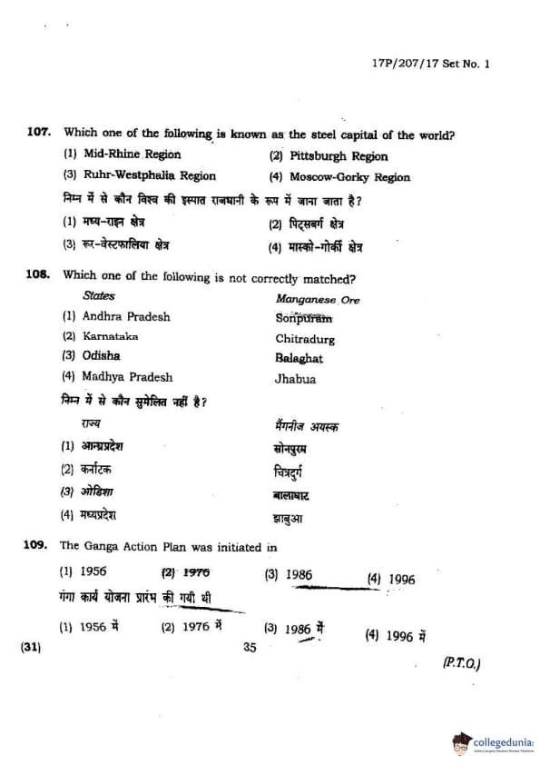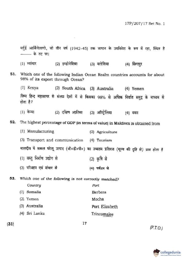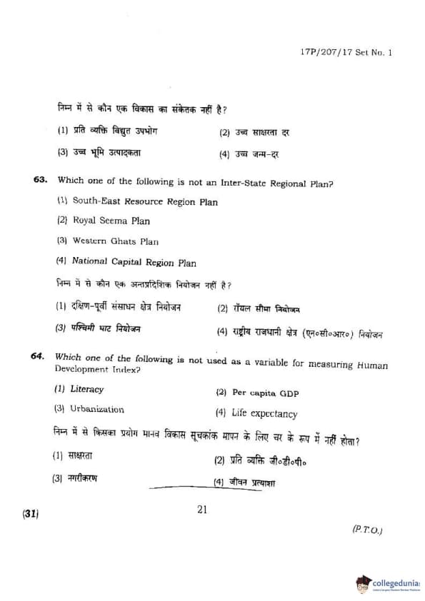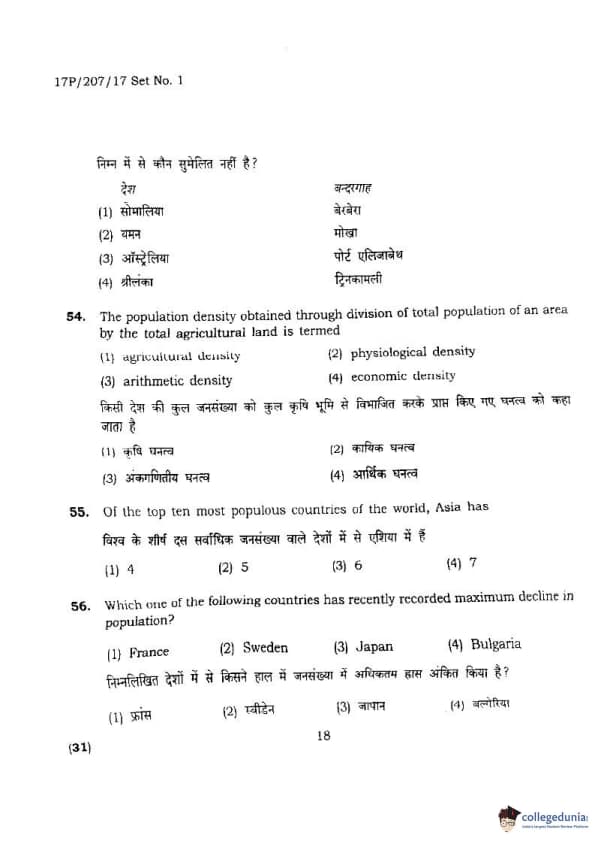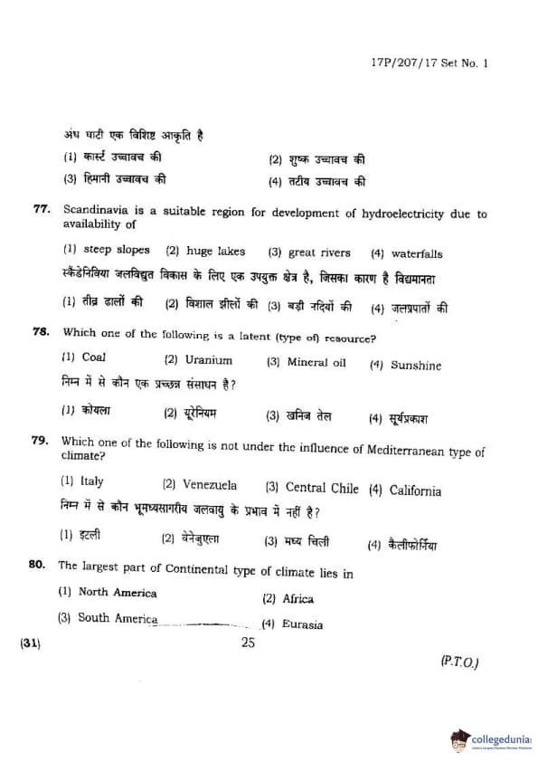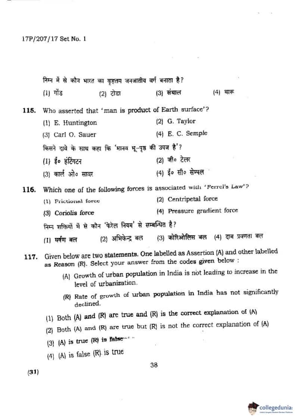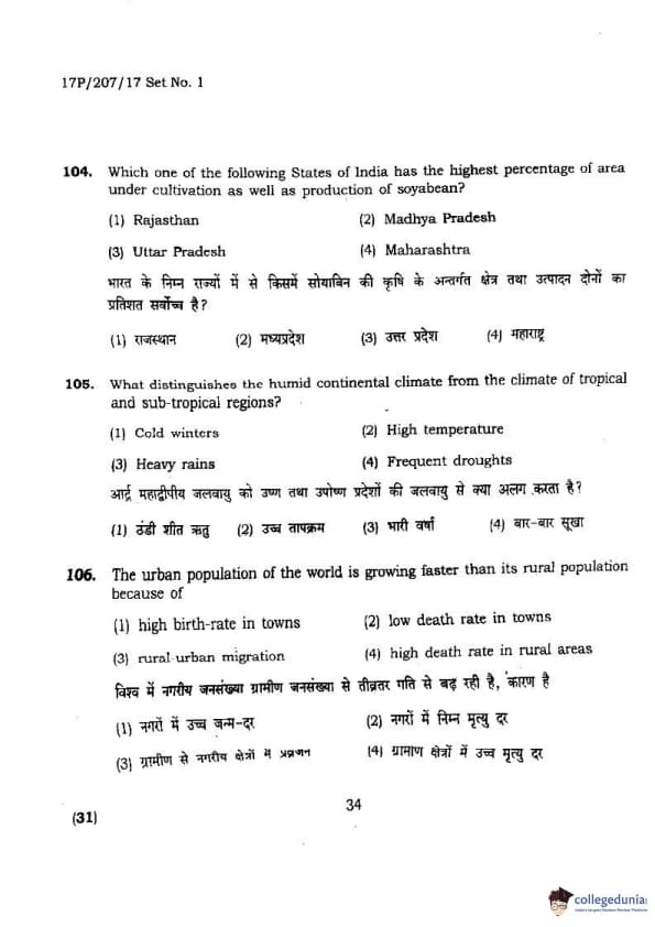 BHU PET 2017 M.A. Geography Question Paper with Answer Key PDFs