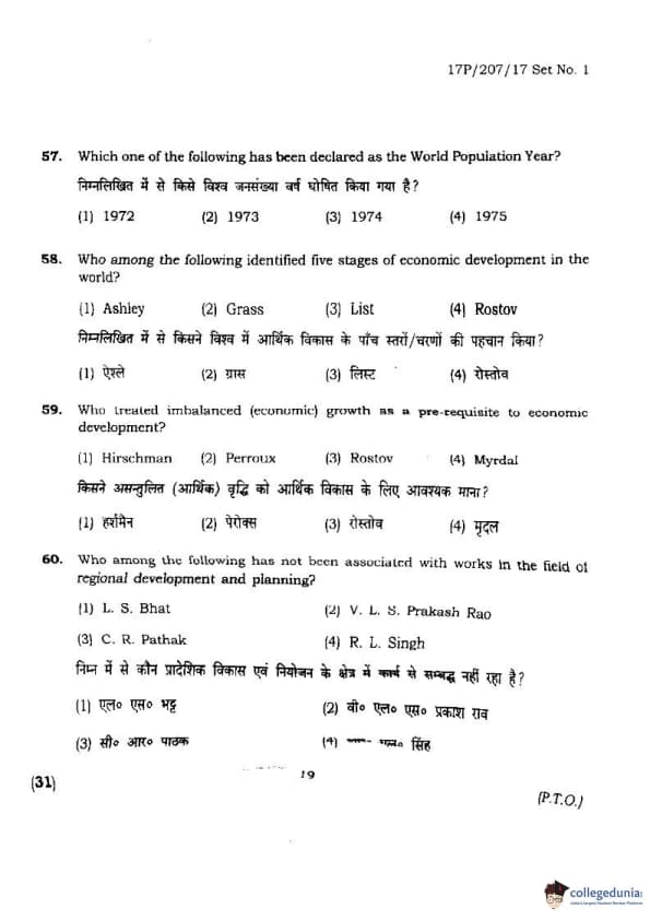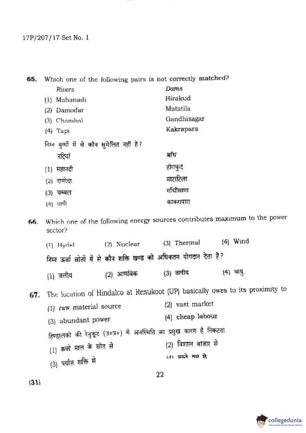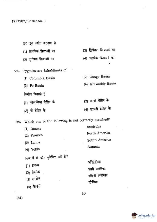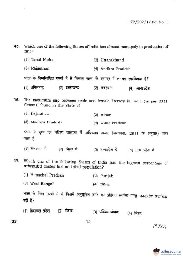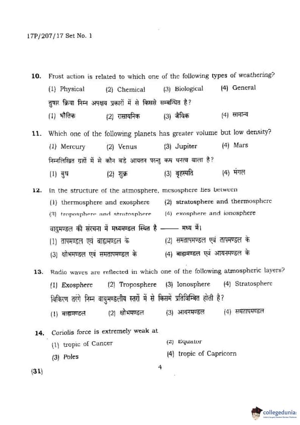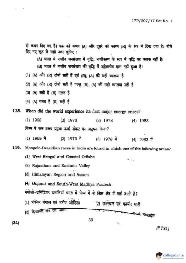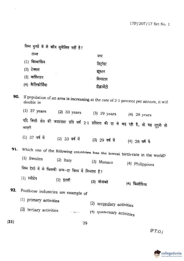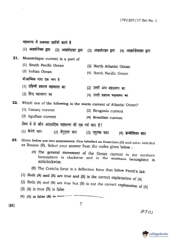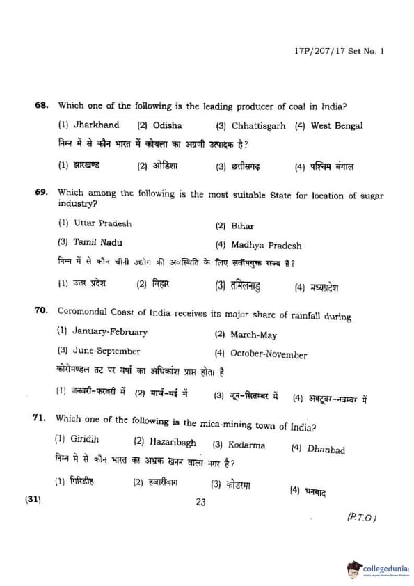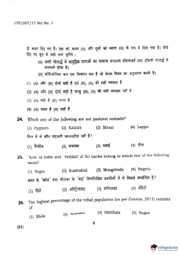 BHU PET 2017 M.A. Geography Question Paper with Answer Key PDFs