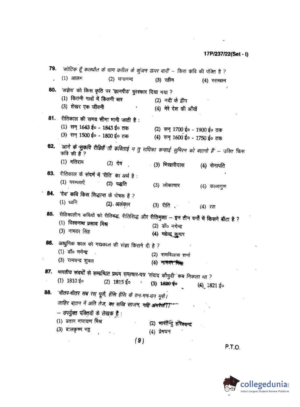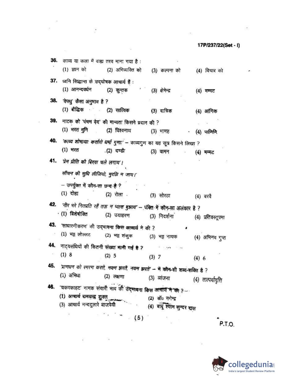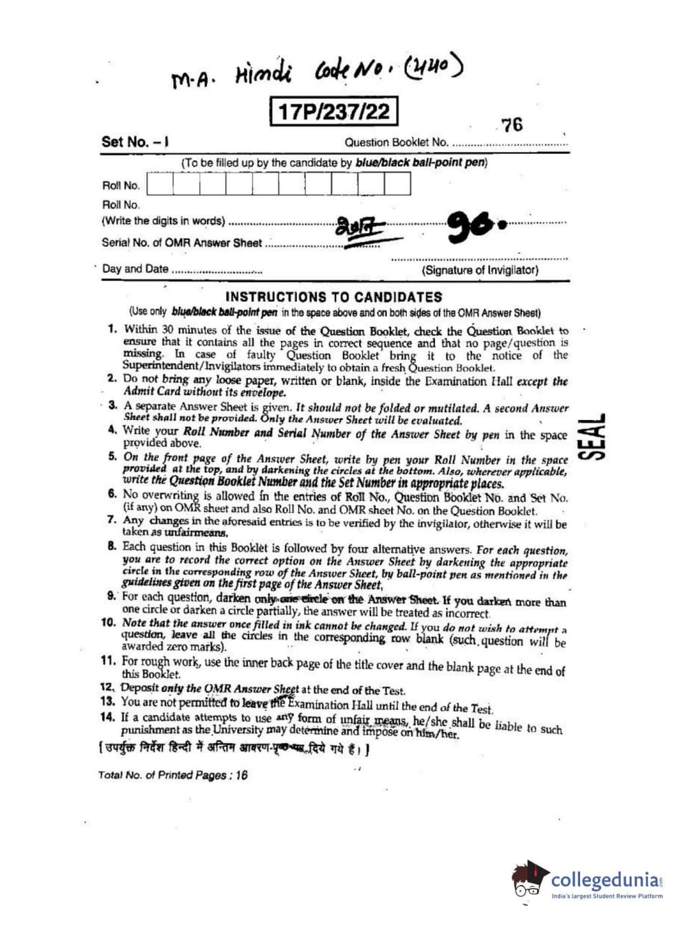 BHU PET 2017 M.A Hindi Question Paper with Answer Key PDFs