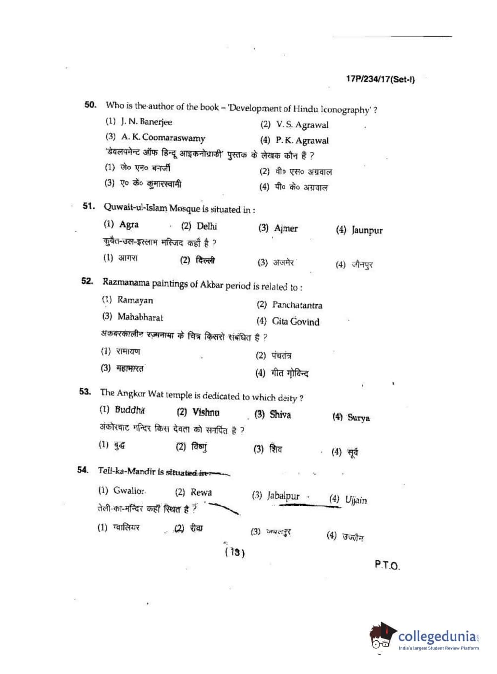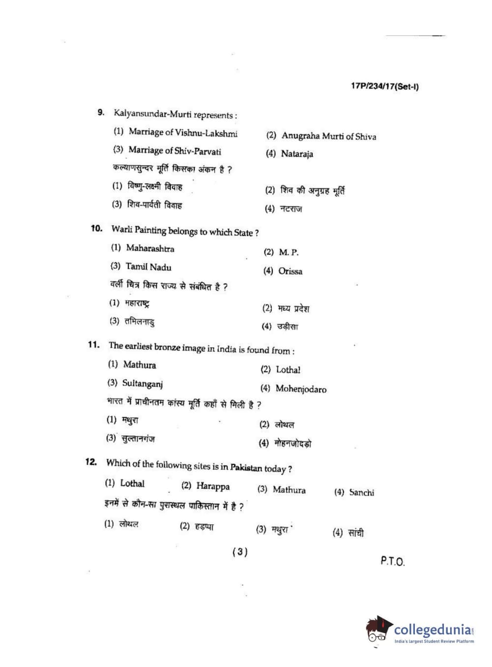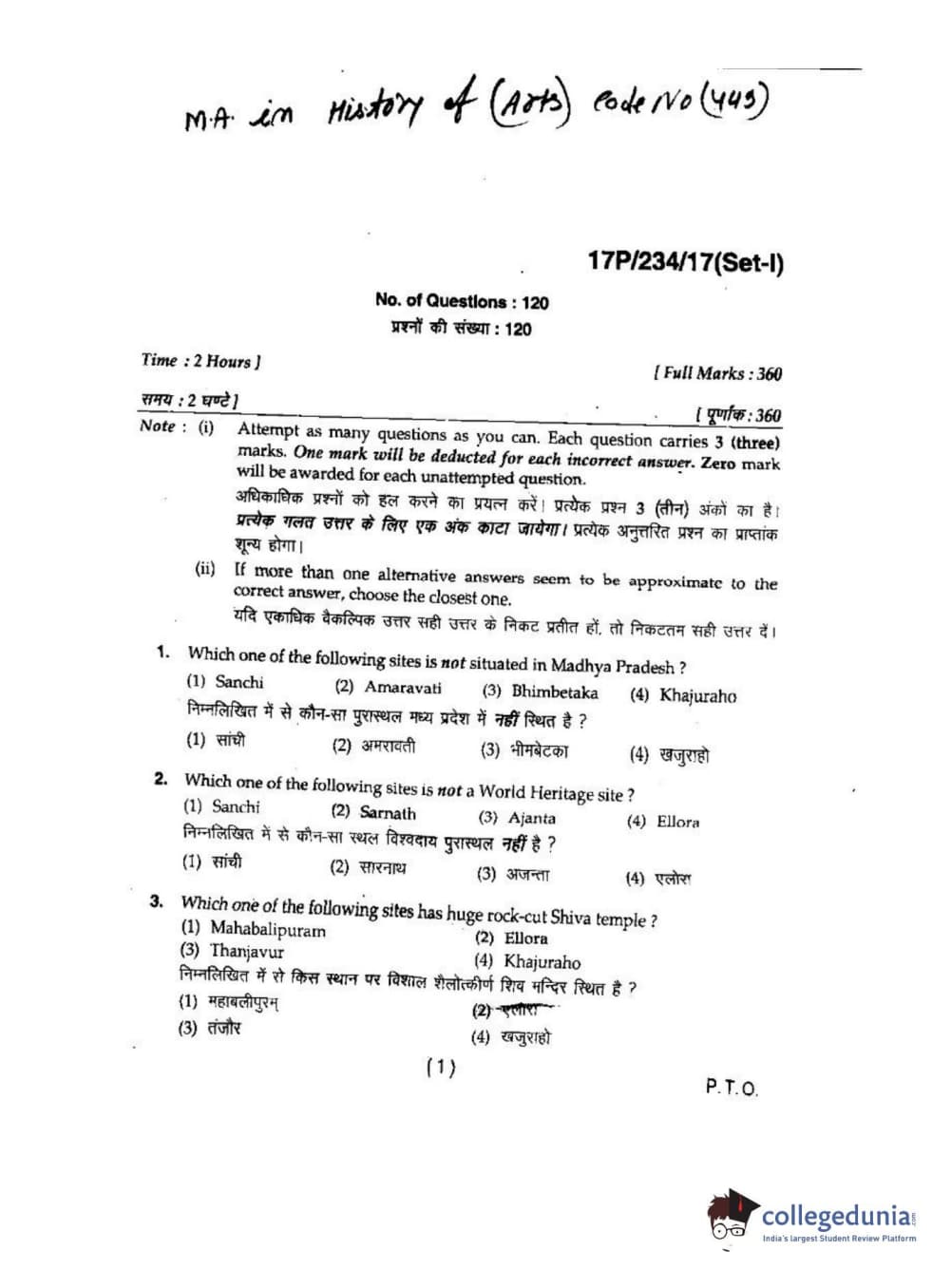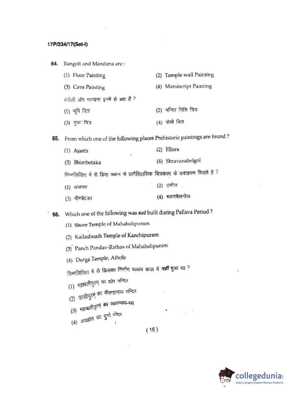 BHU PET 2017 M.A History of Arts Question Paper with Answer Key PDFs