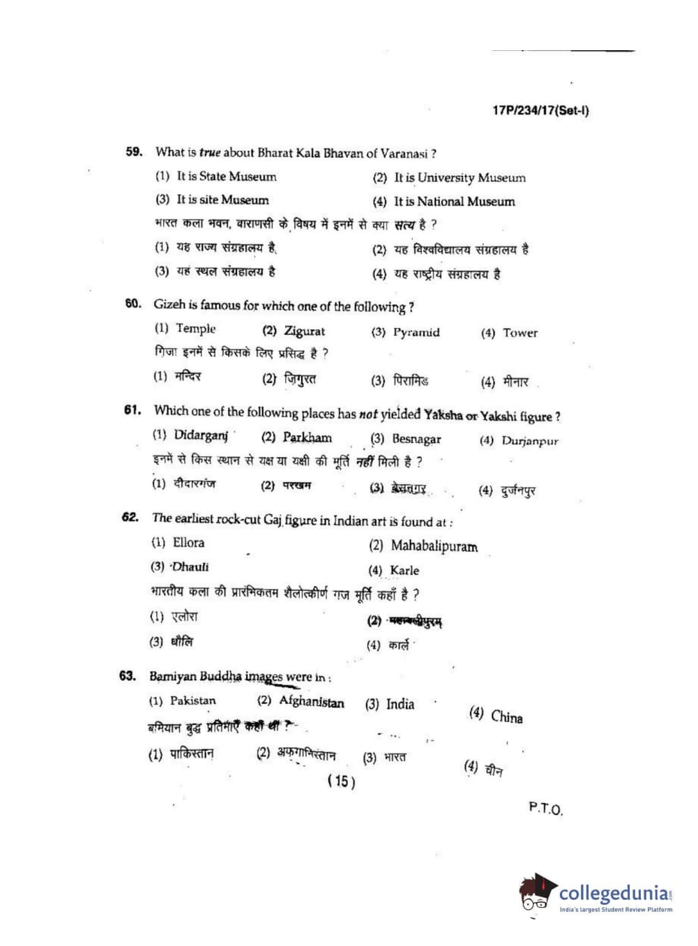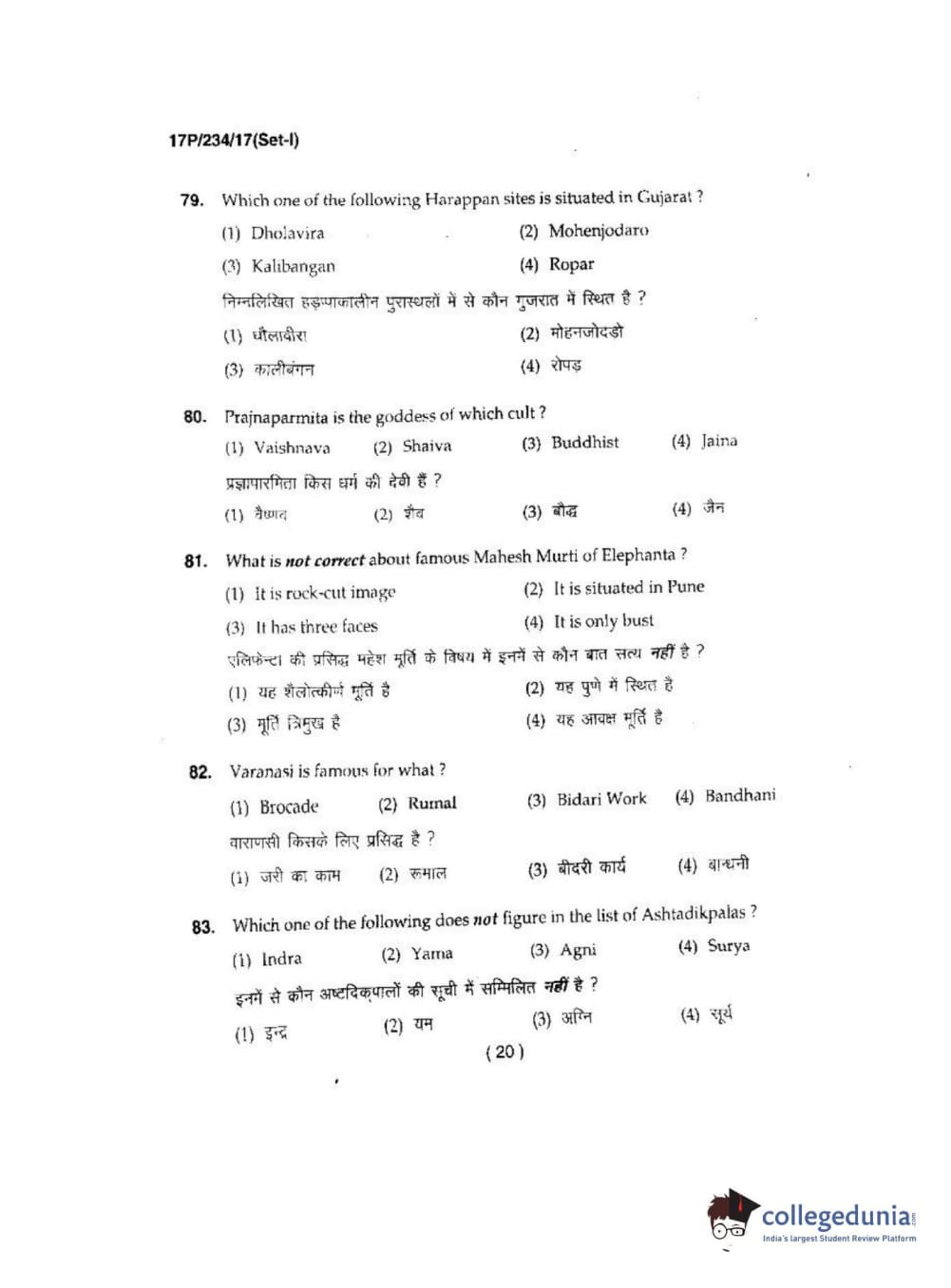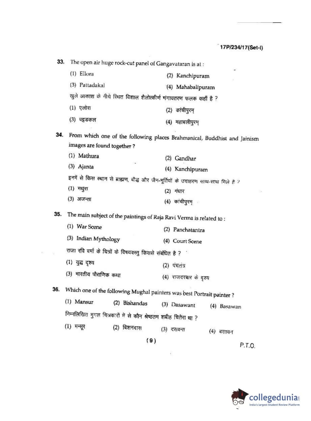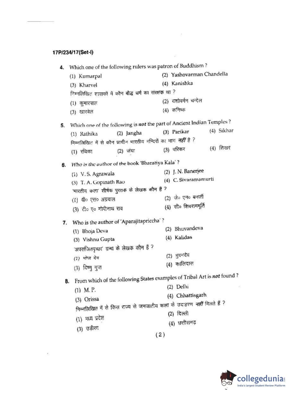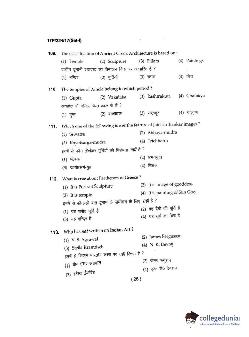 BHU PET 2017 M.A History of Arts Question Paper with Answer Key PDFs