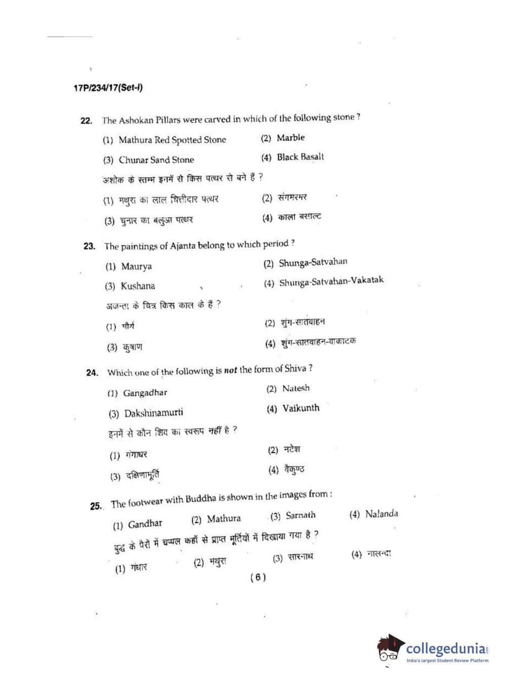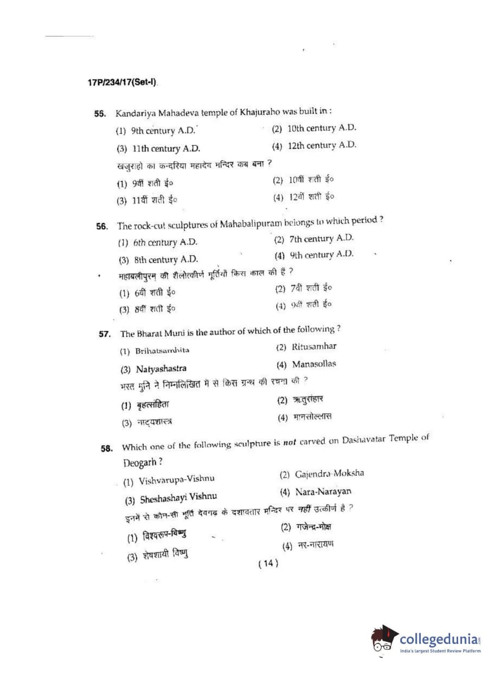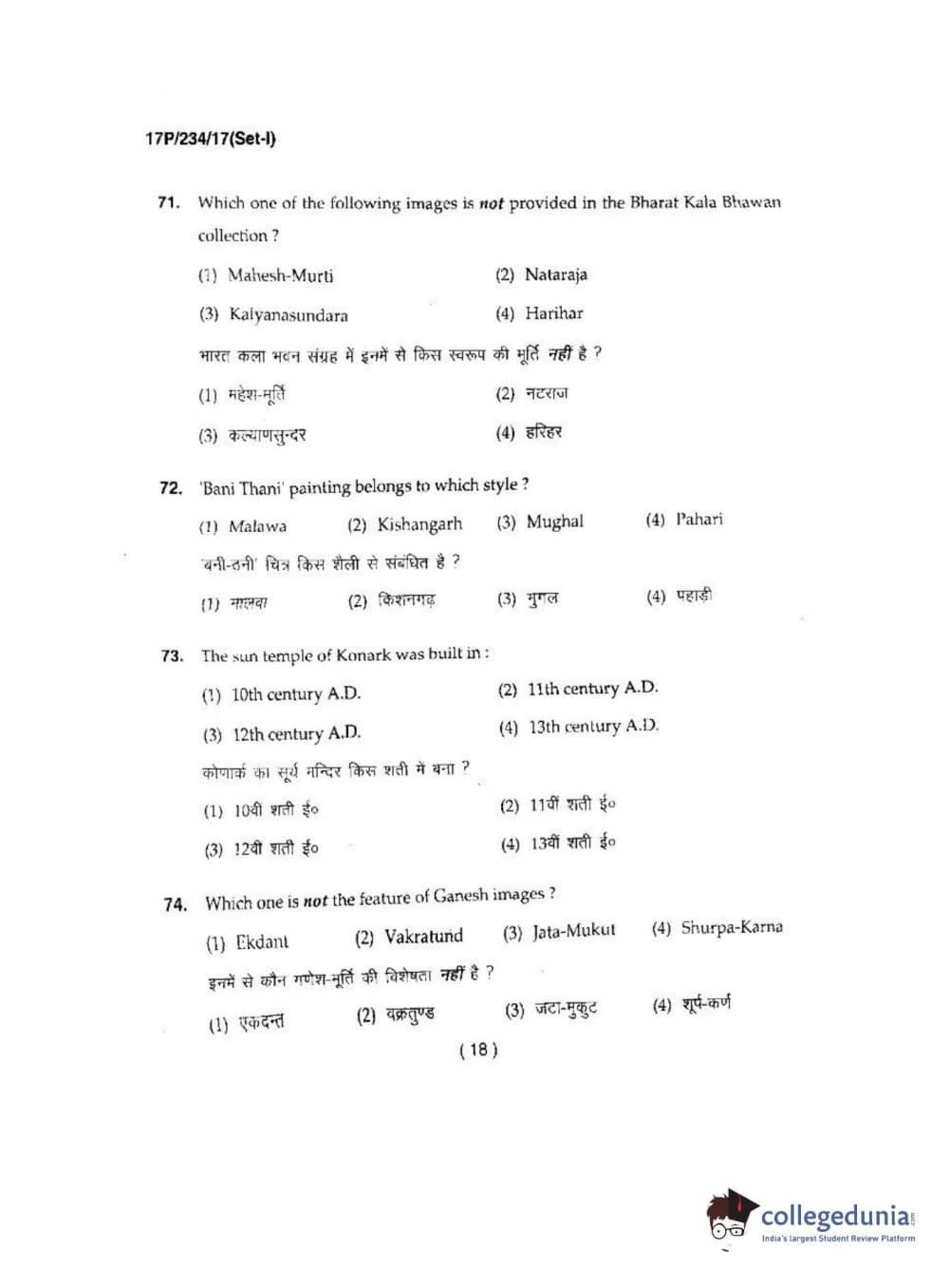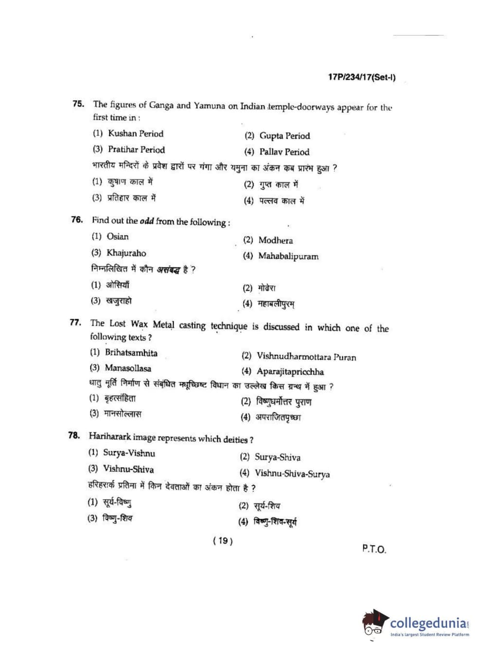 BHU PET 2017 M.A History of Arts Question Paper with Answer Key PDFs