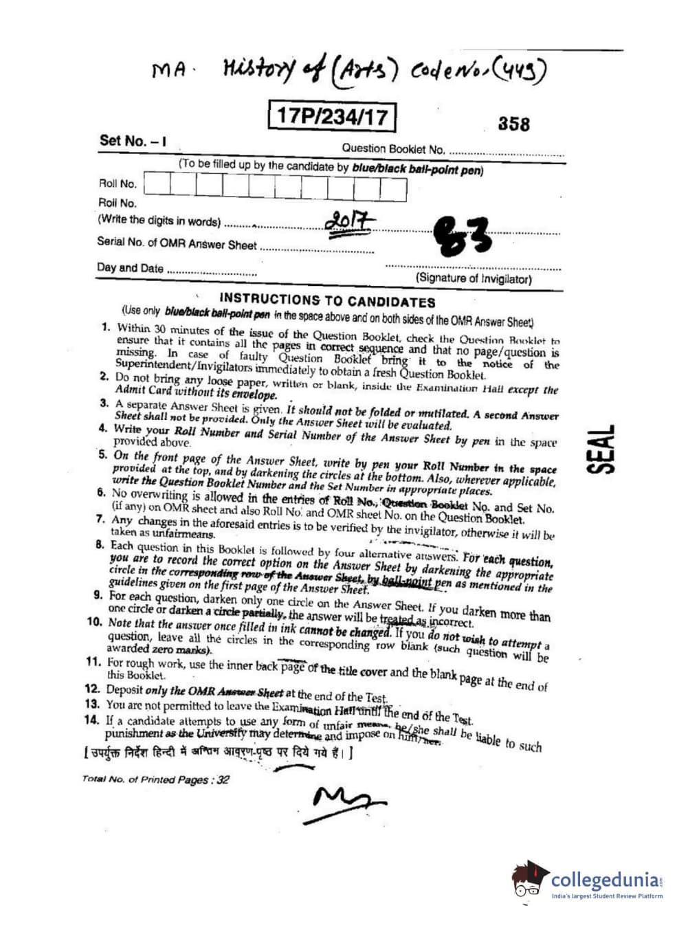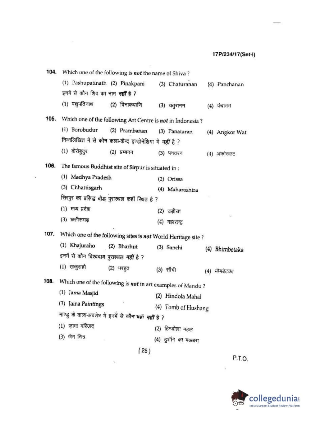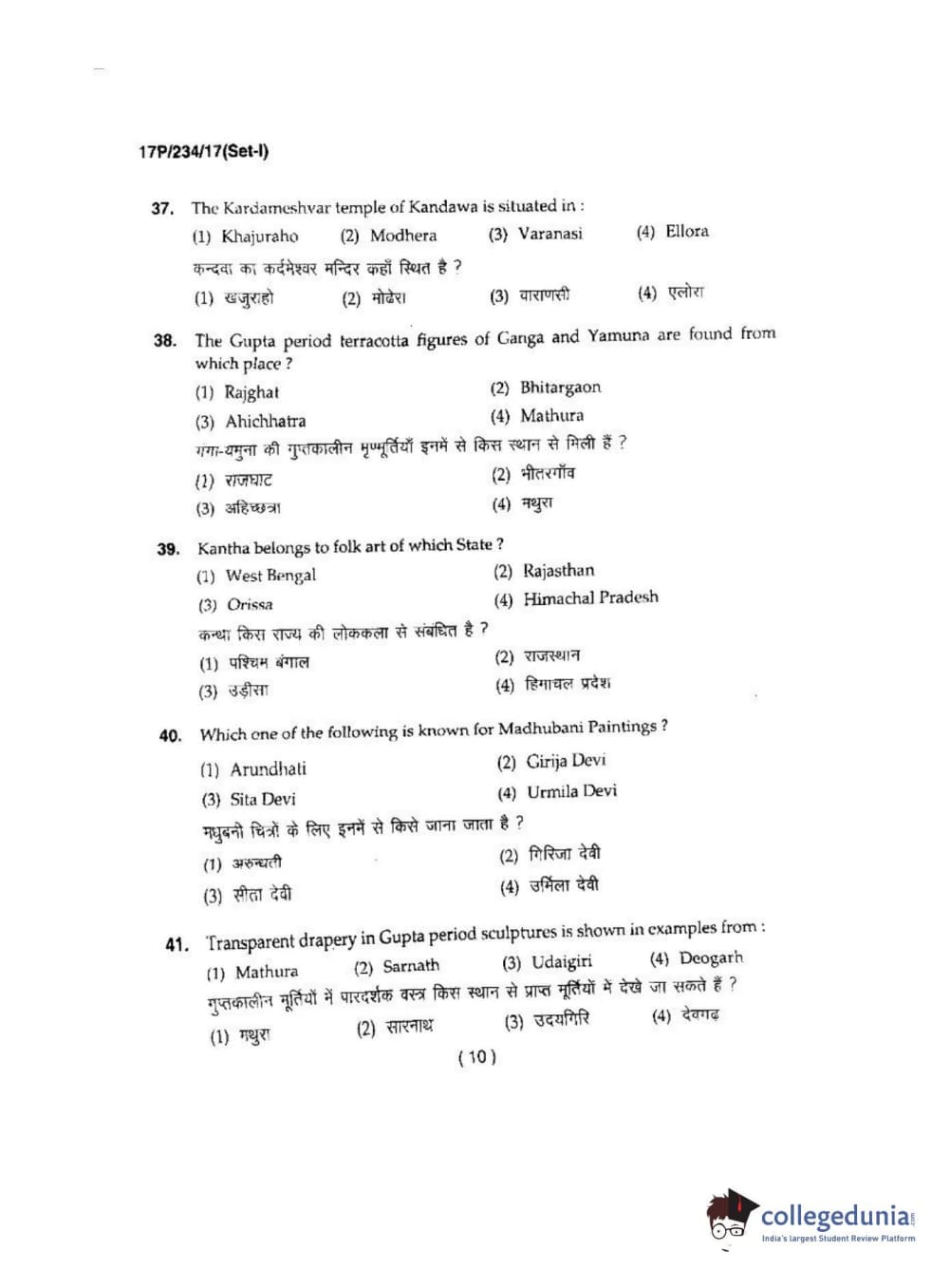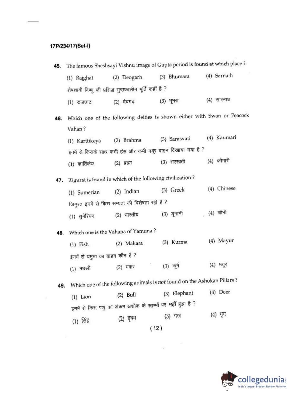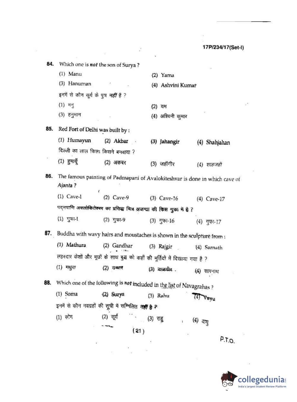 BHU PET 2017 M.A History of Arts Question Paper with Answer Key PDFs