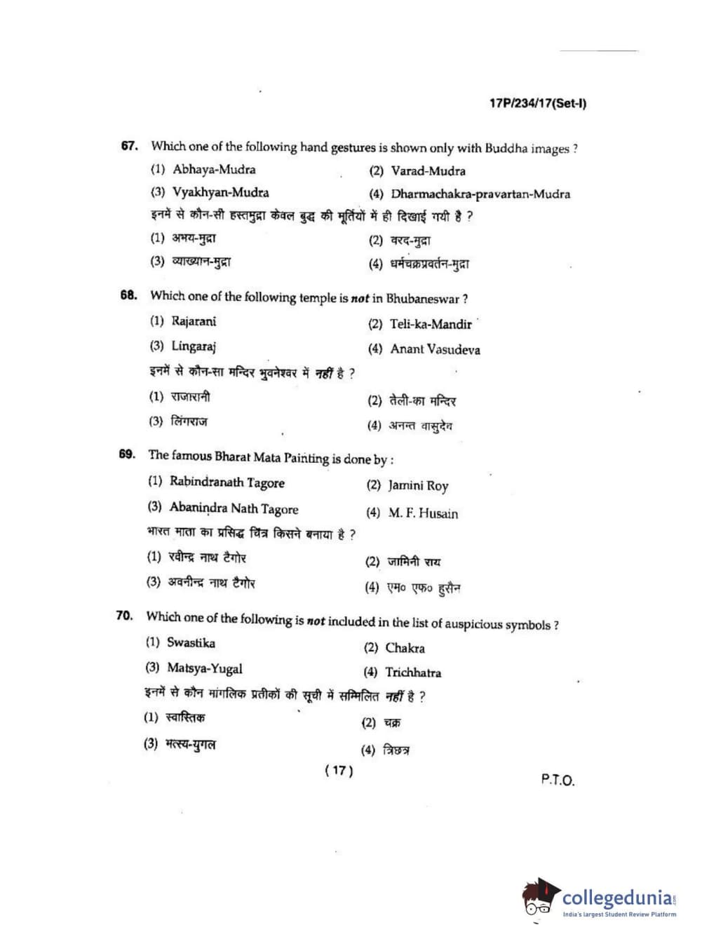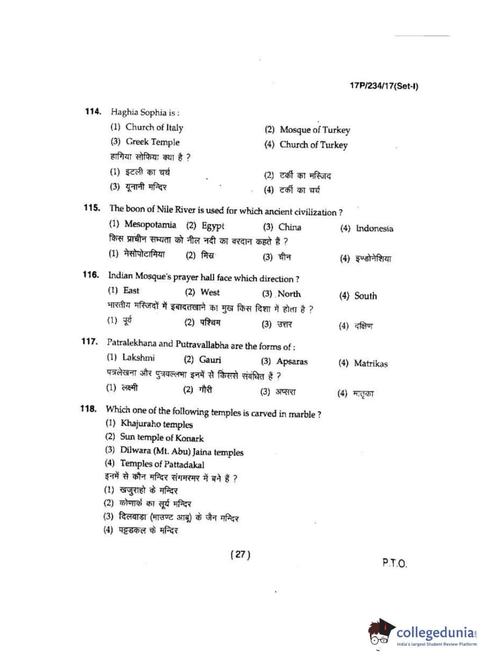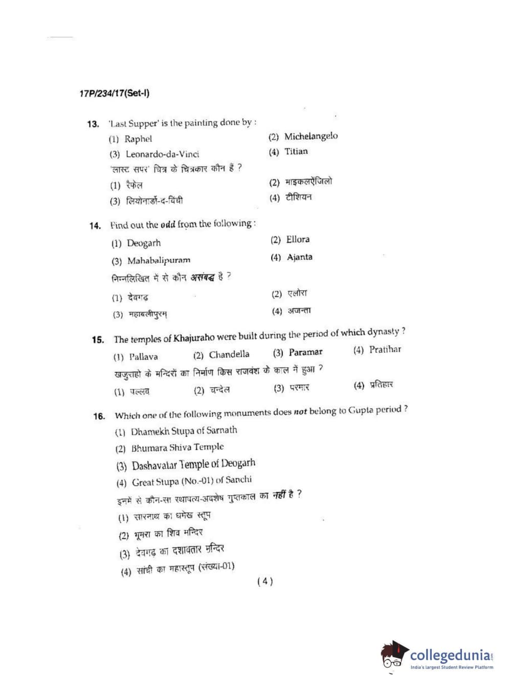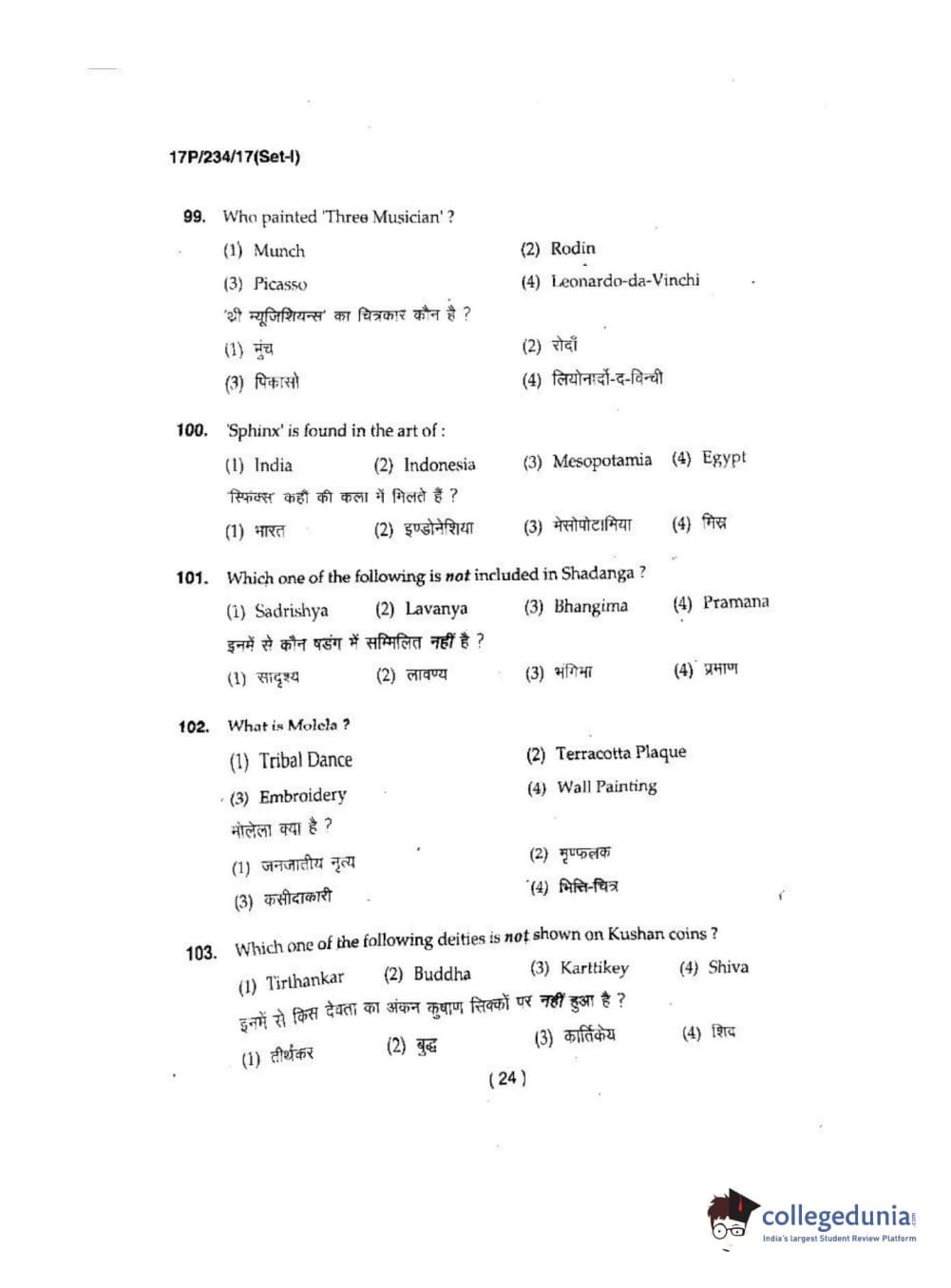 BHU PET 2017 M.A History of Arts Question Paper with Answer Key PDFs