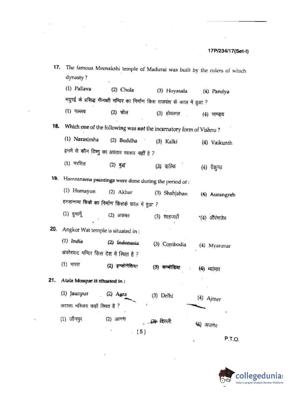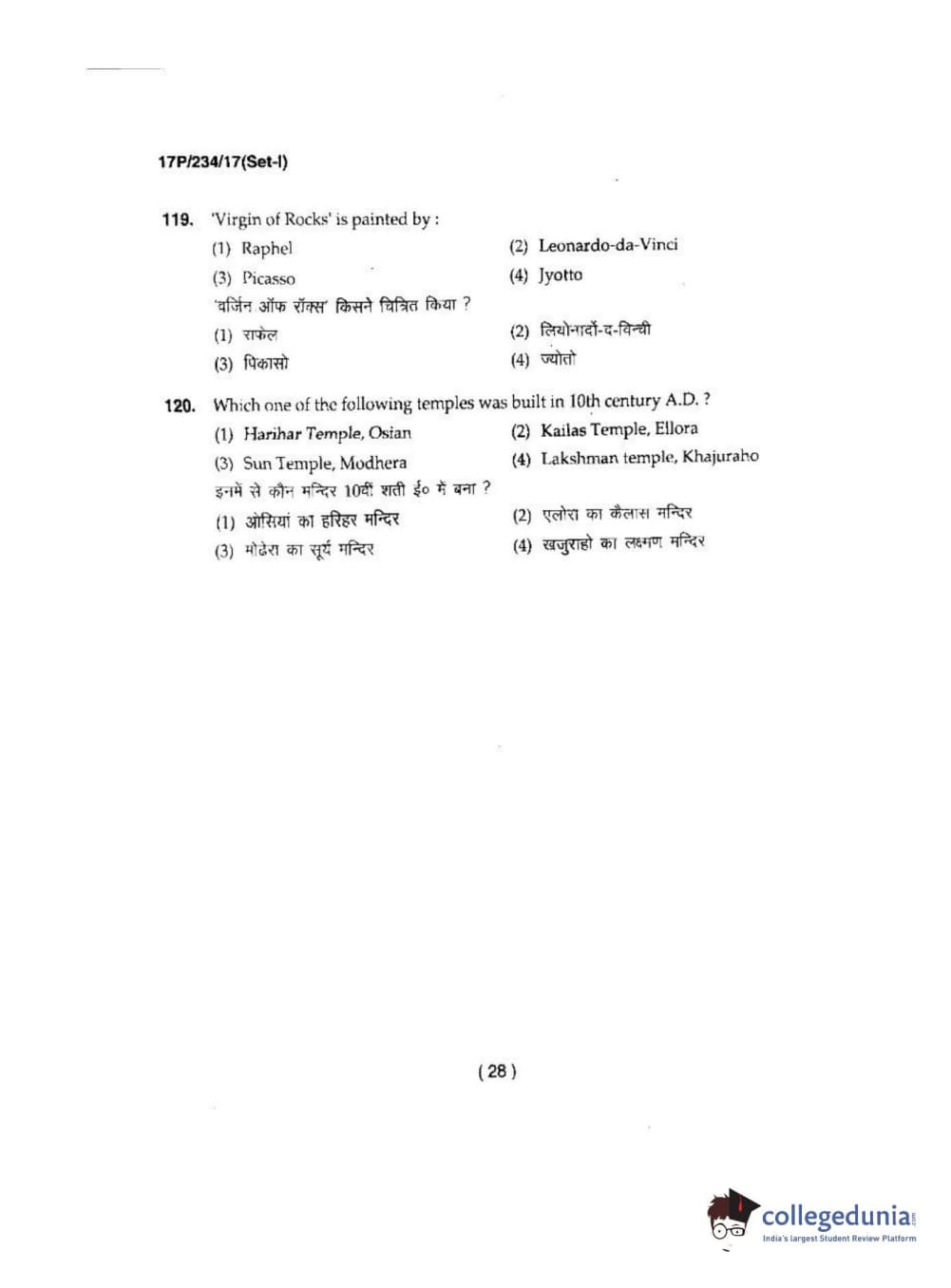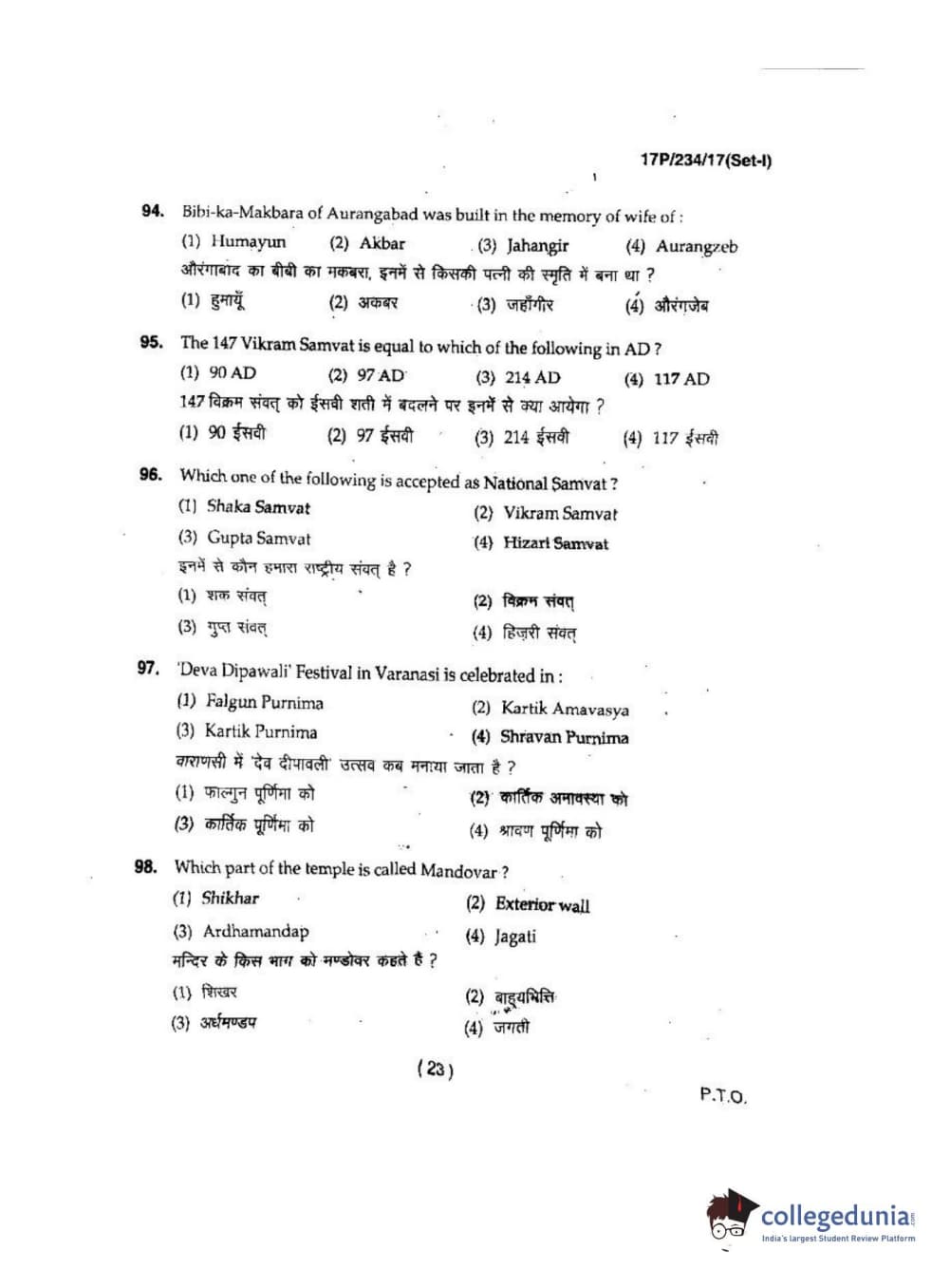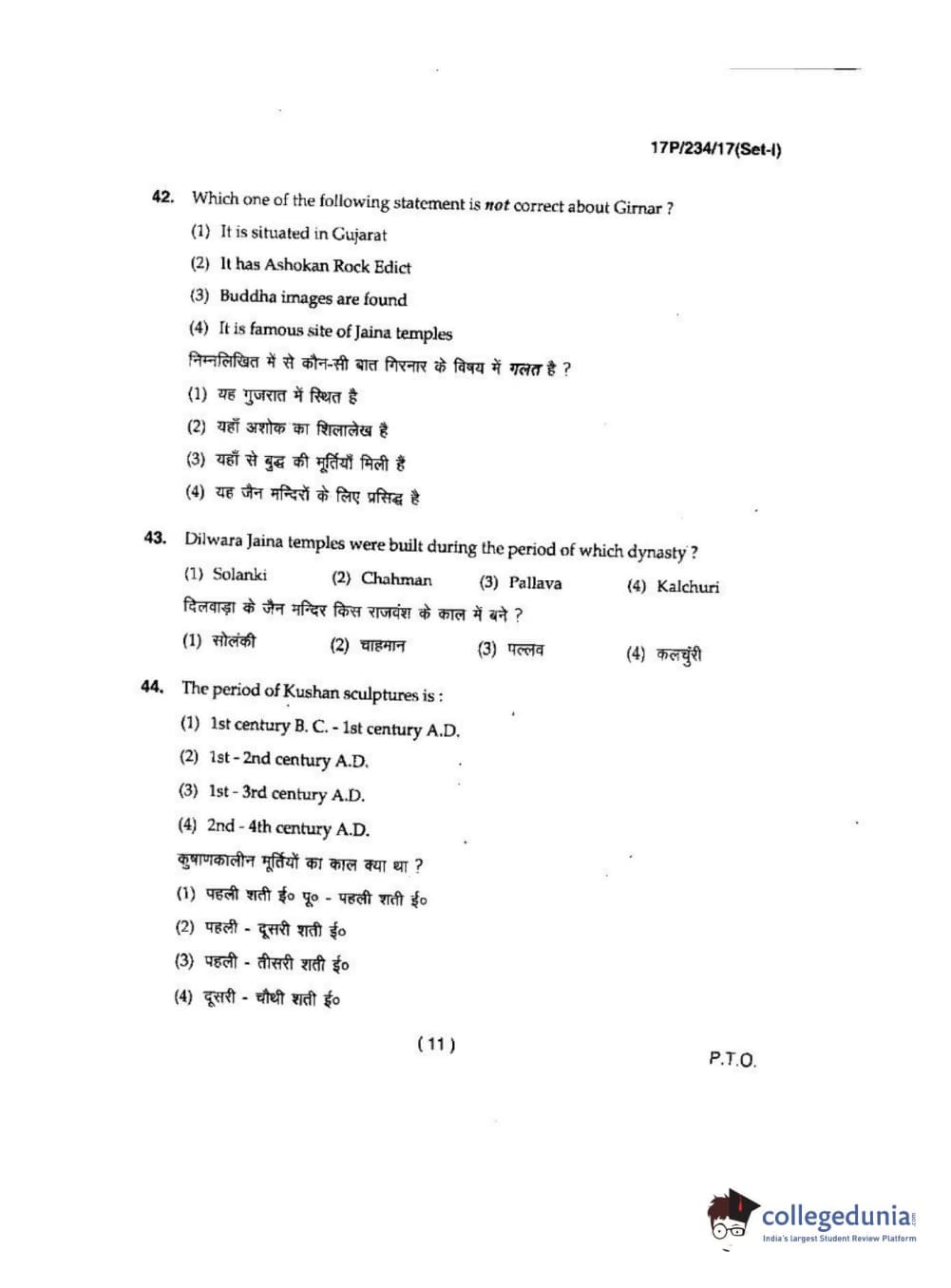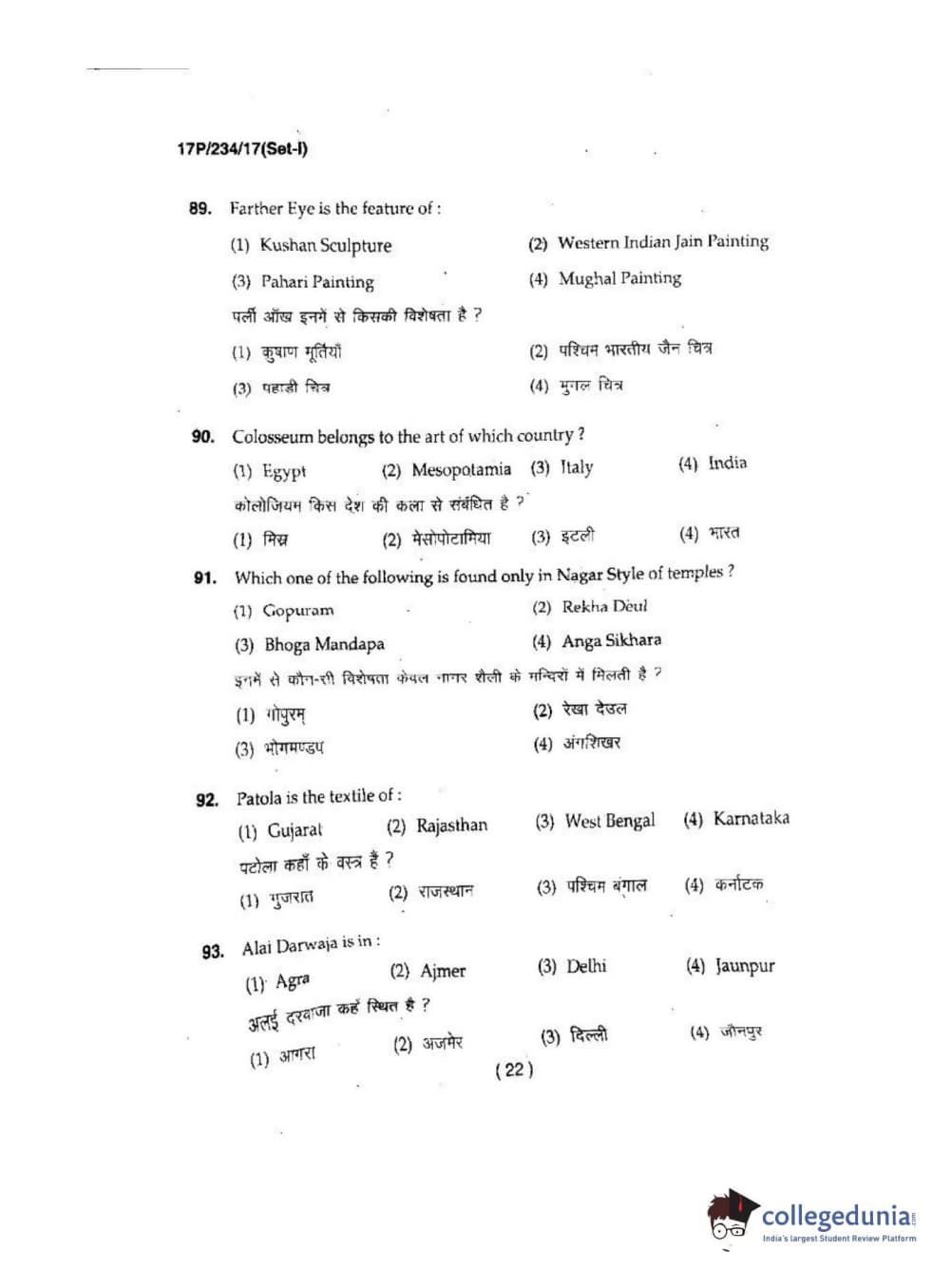 BHU PET 2017 M.A History of Arts Question Paper with Answer Key PDFs