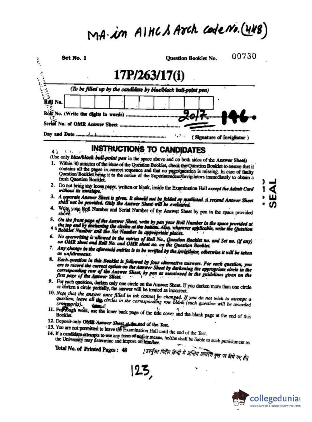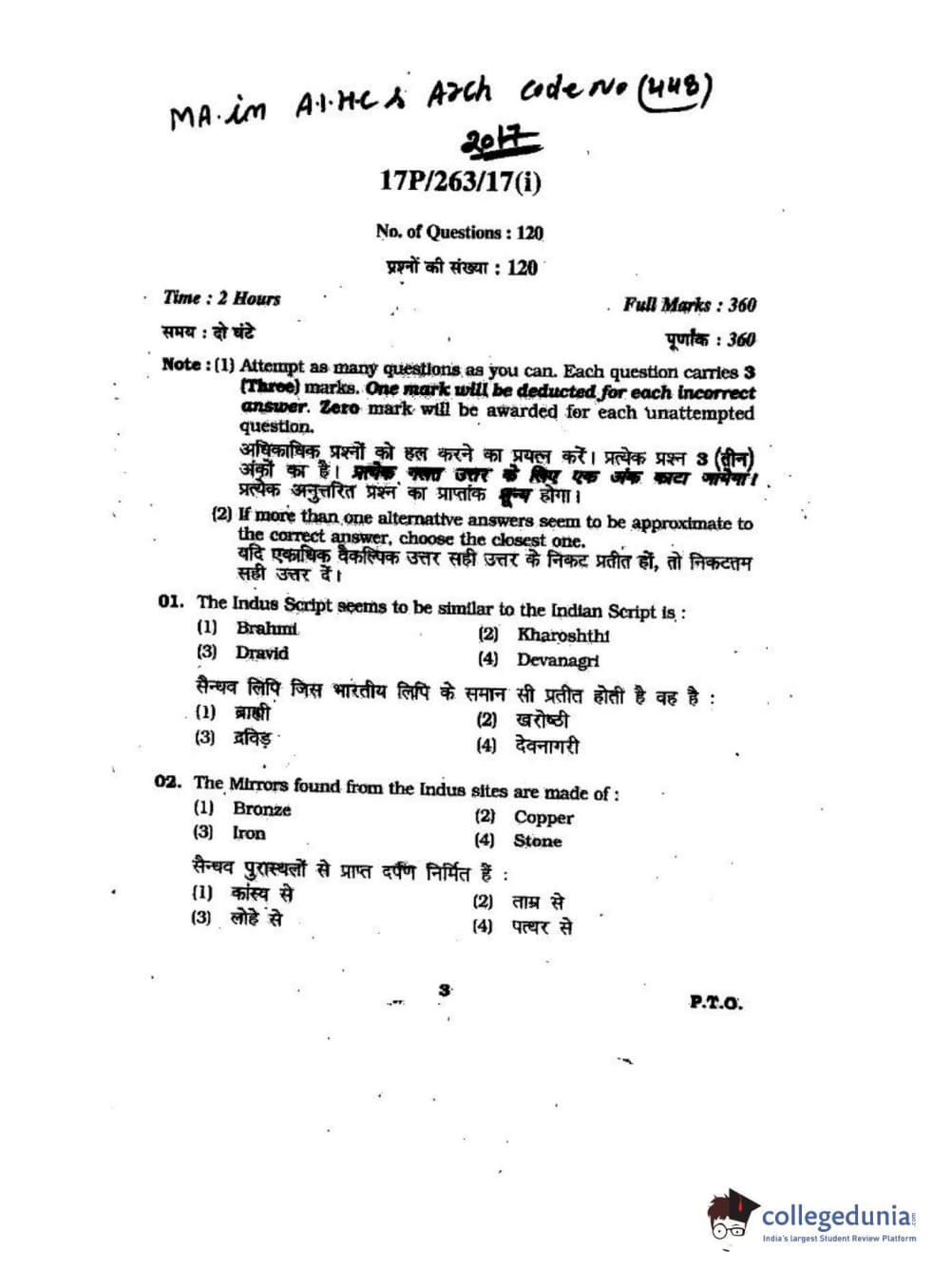 BHU PET 2017 M.A in AIHC & Arch Question paper with answer key pdf is available for download. The exam was successfully organized by Banaras Hindu University (BHU). The question paper comprised a total of 120 questions.