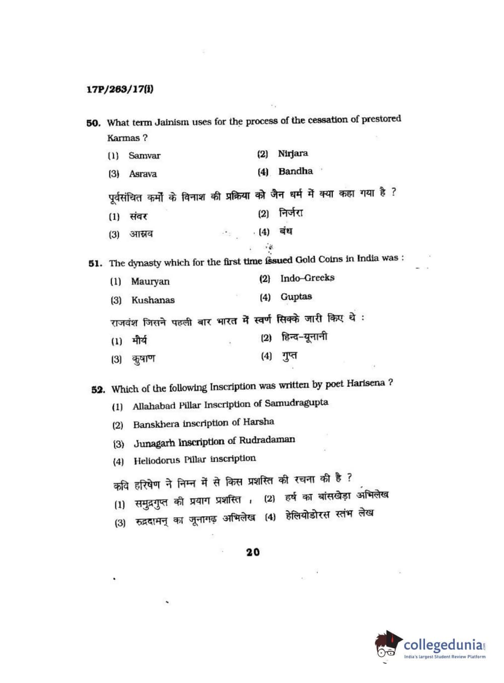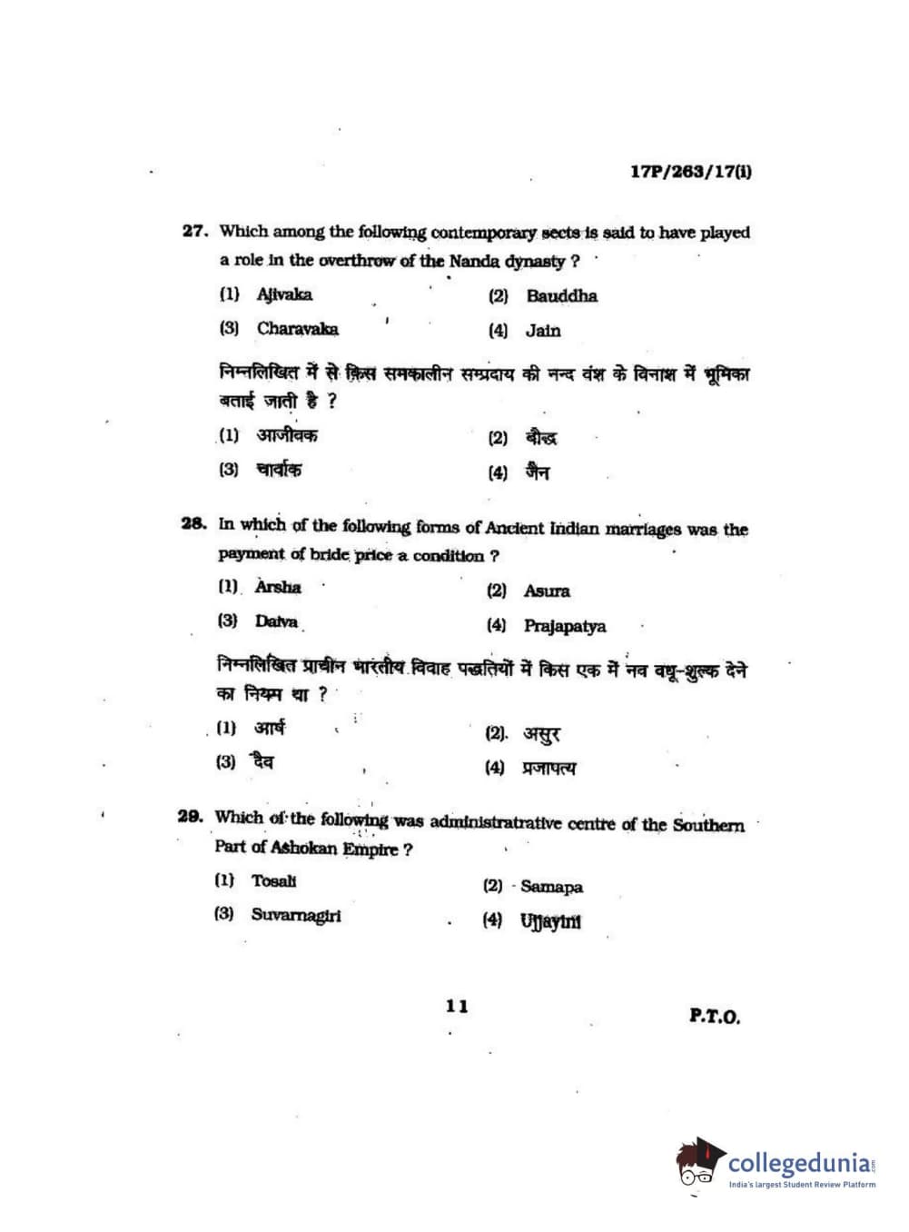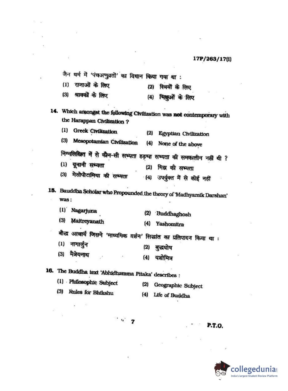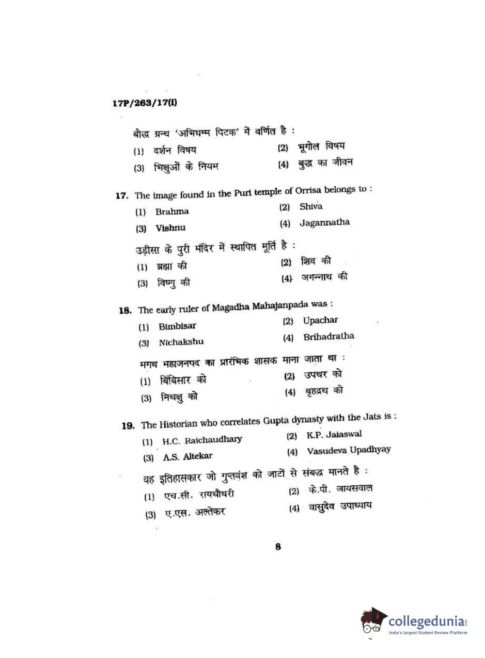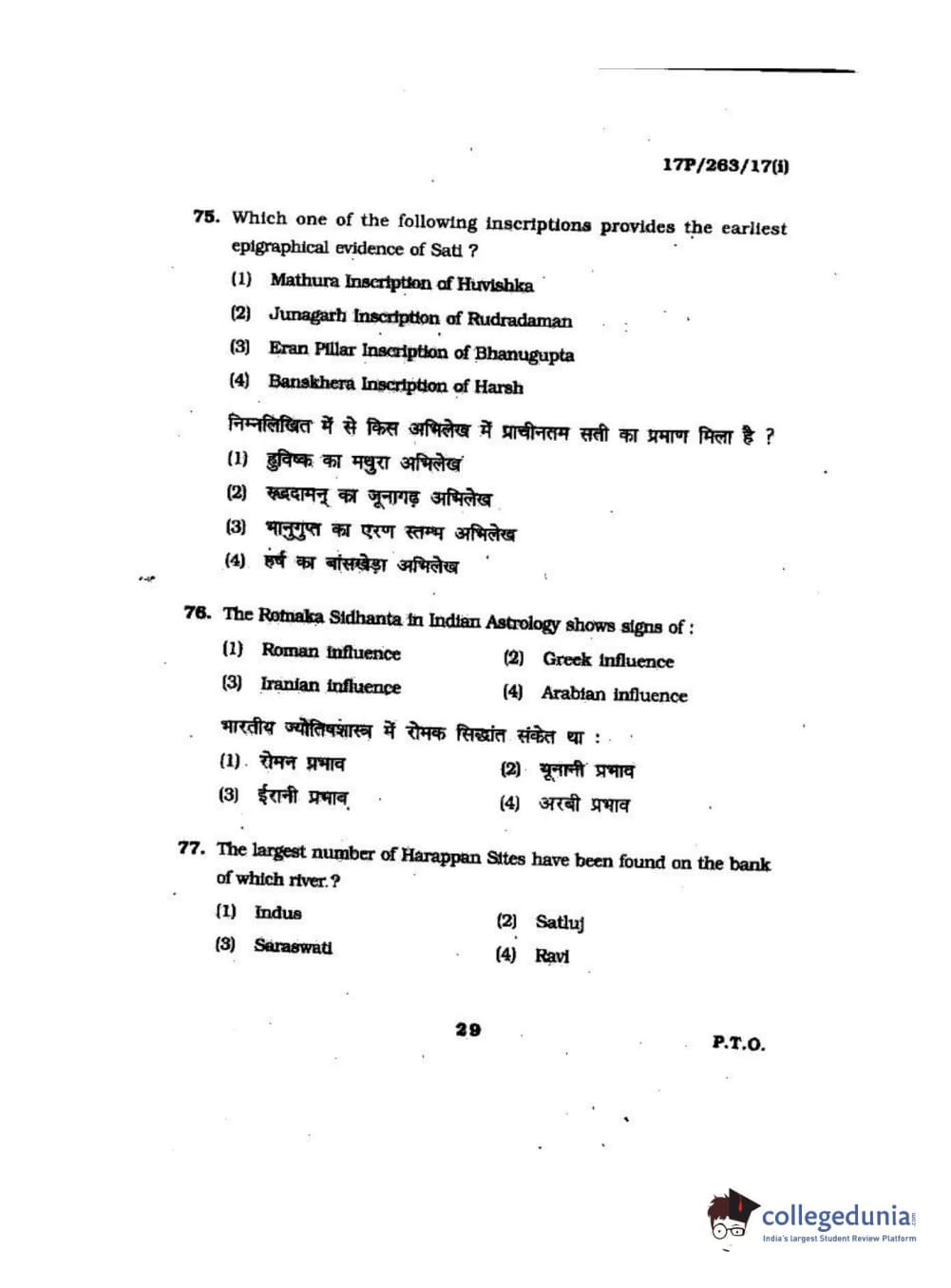 BHU PET 2017 M.A in AIHC & Arch Question Paper with Answer Key PDFs