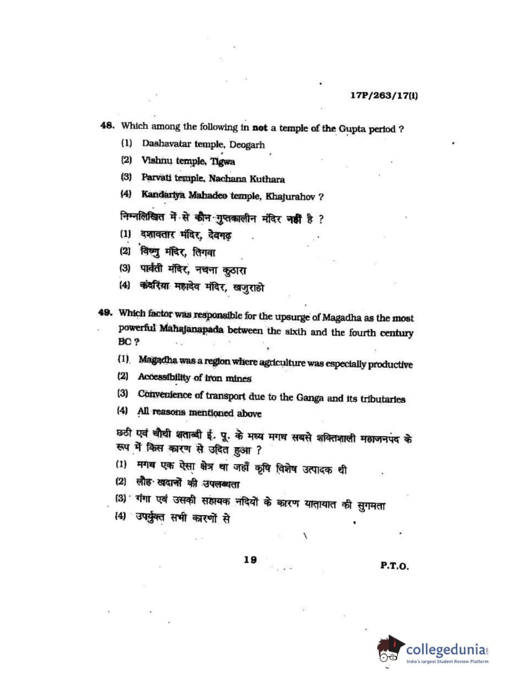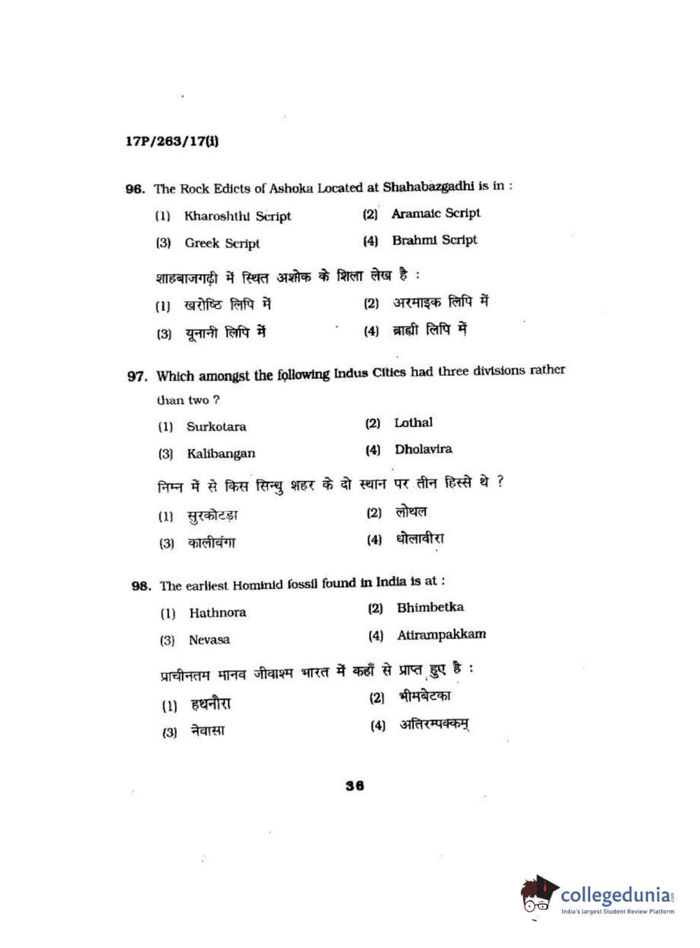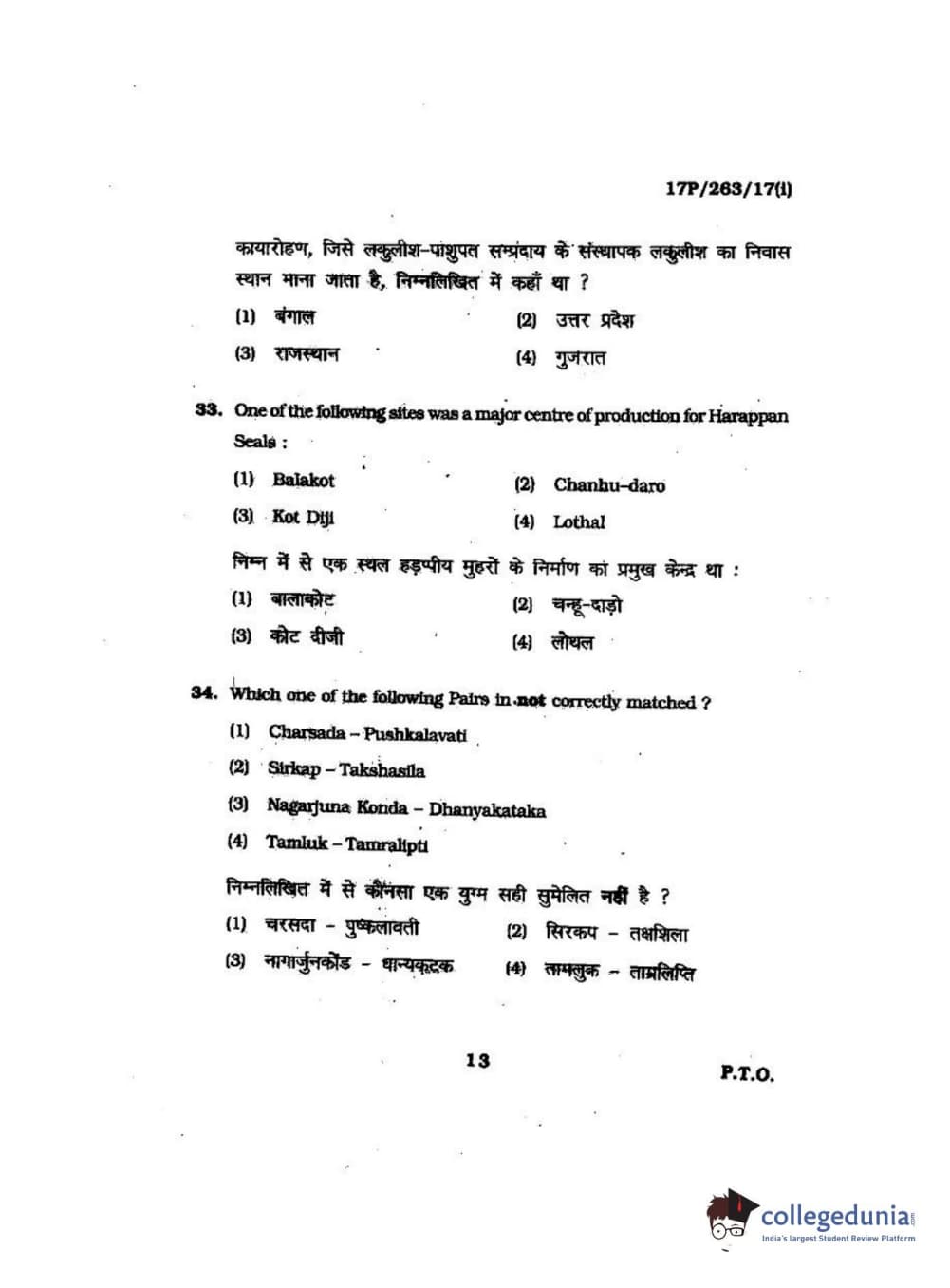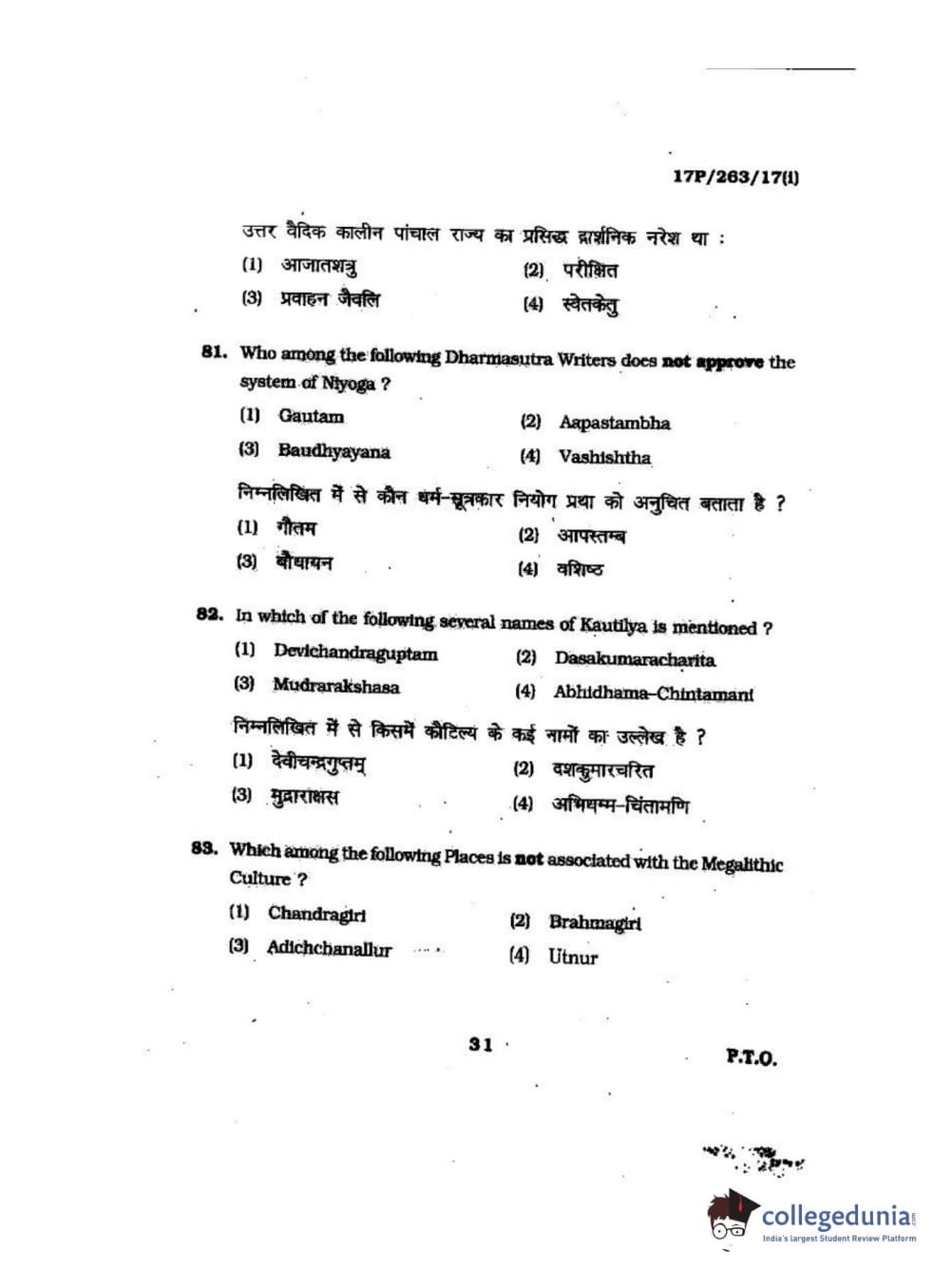BHU PET 2017 M.A in AIHC & Arch Question Paper with Answer Key PDFs