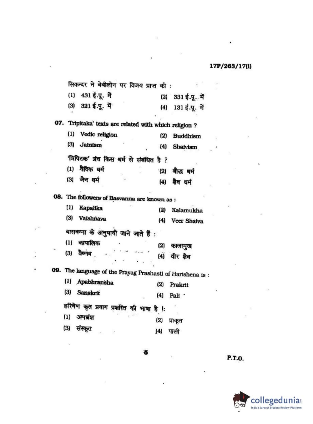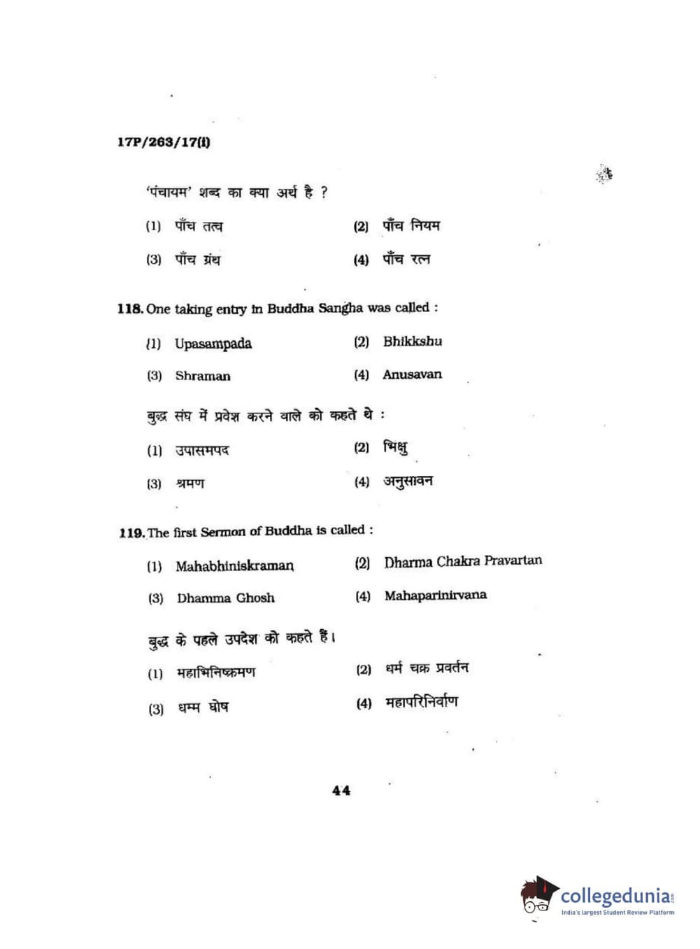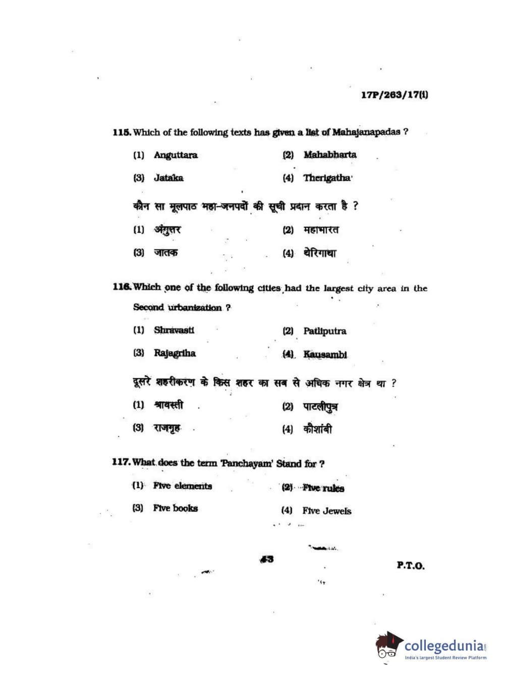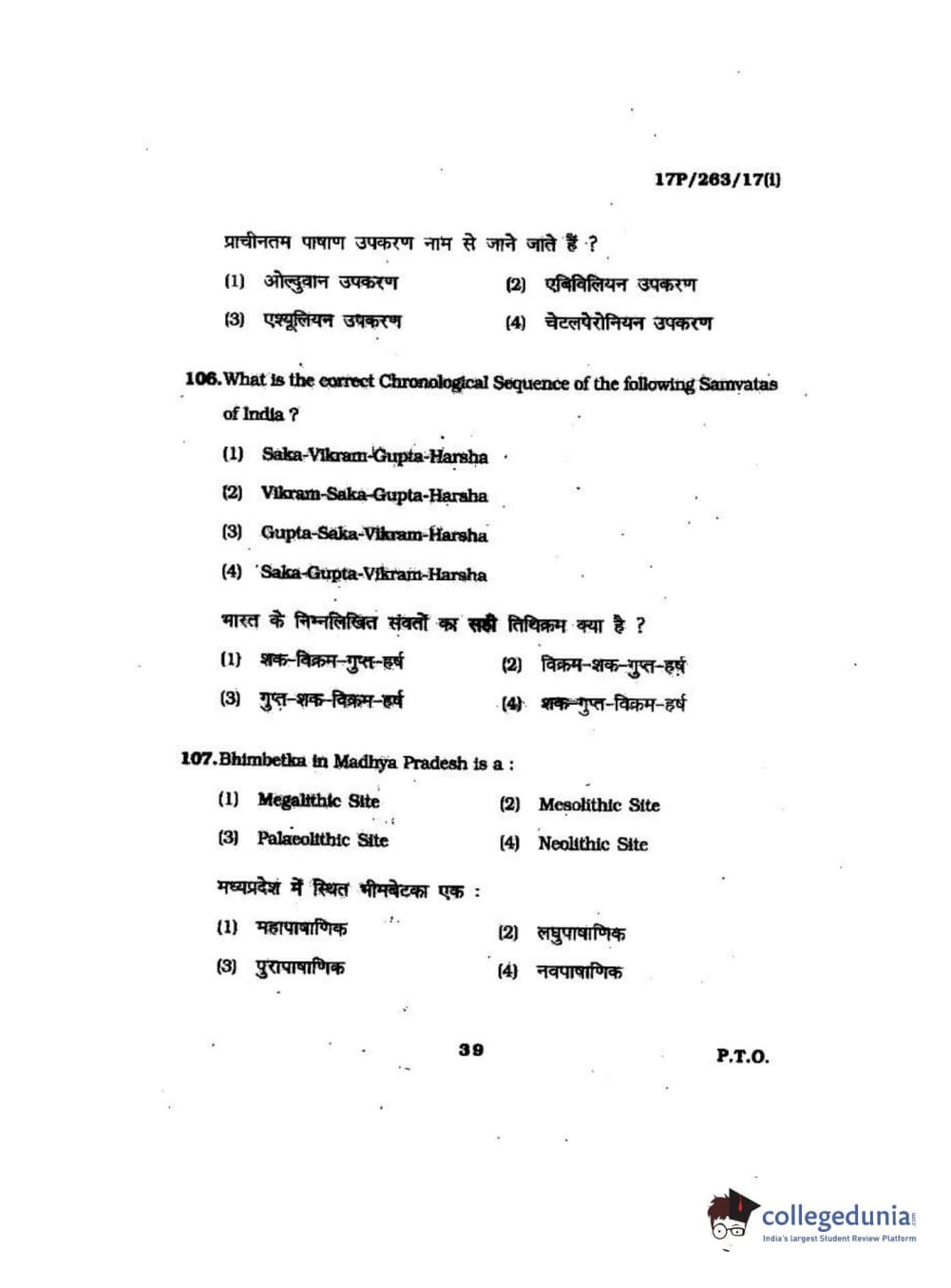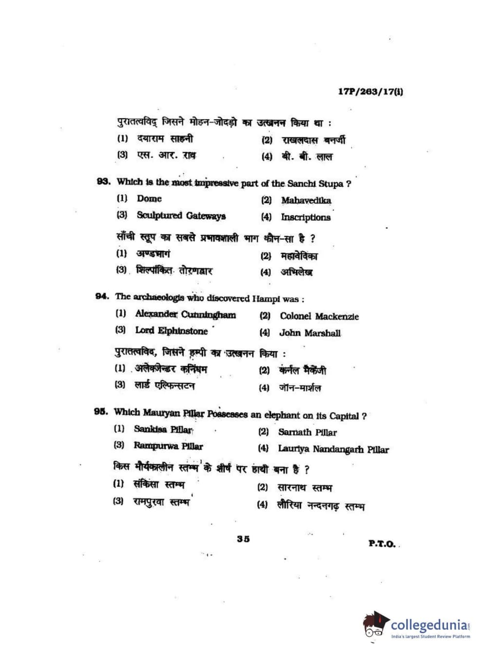 BHU PET 2017 M.A in AIHC & Arch Question Paper with Answer Key PDFs