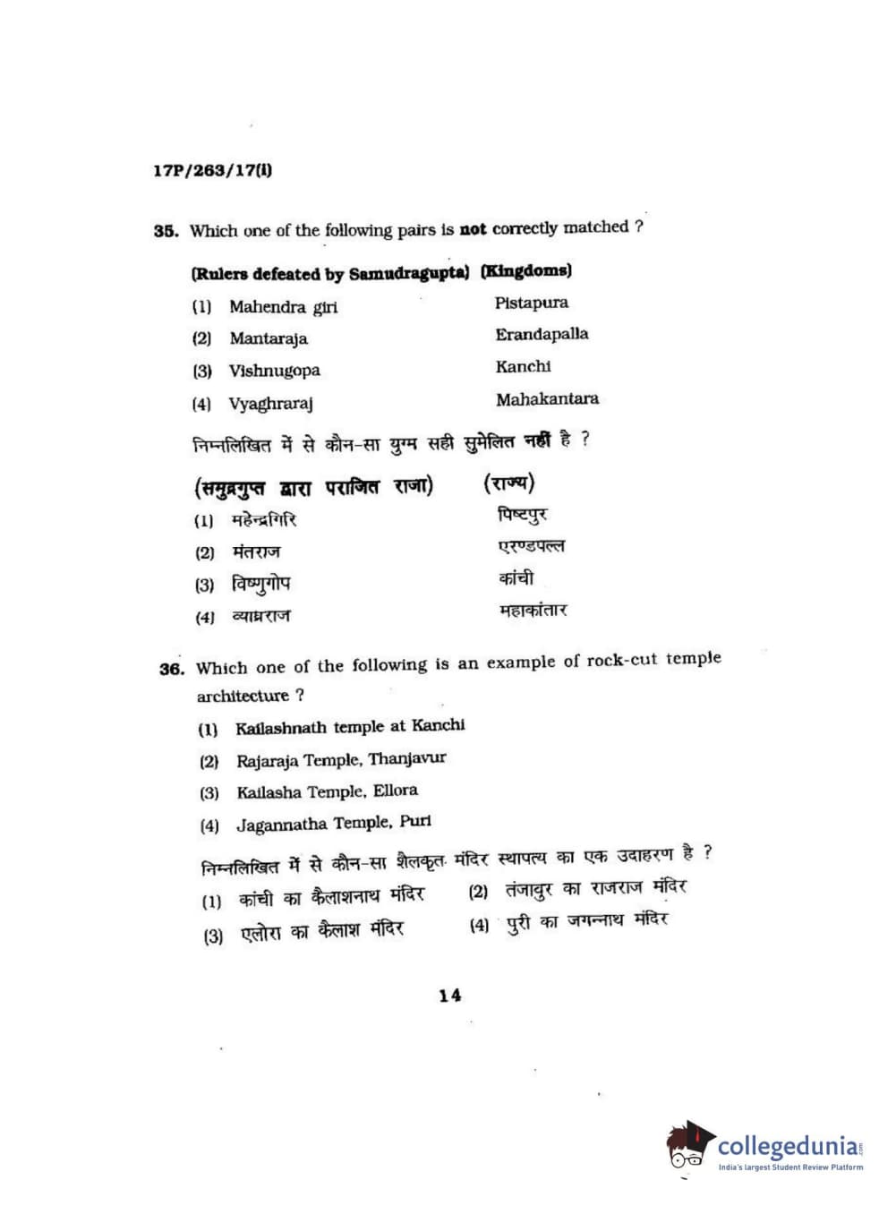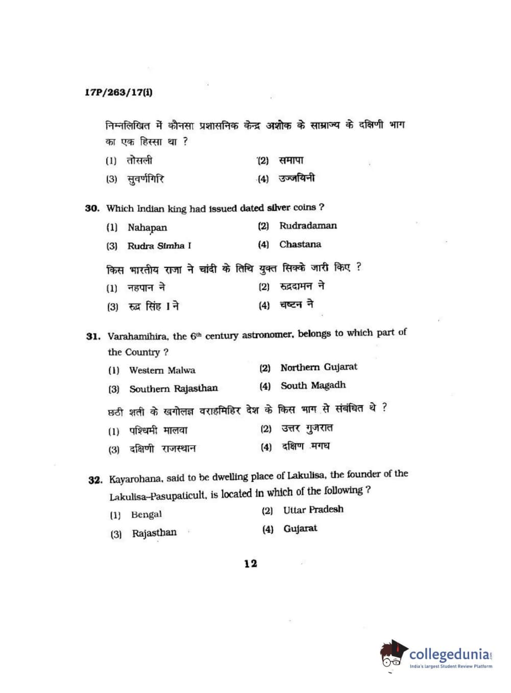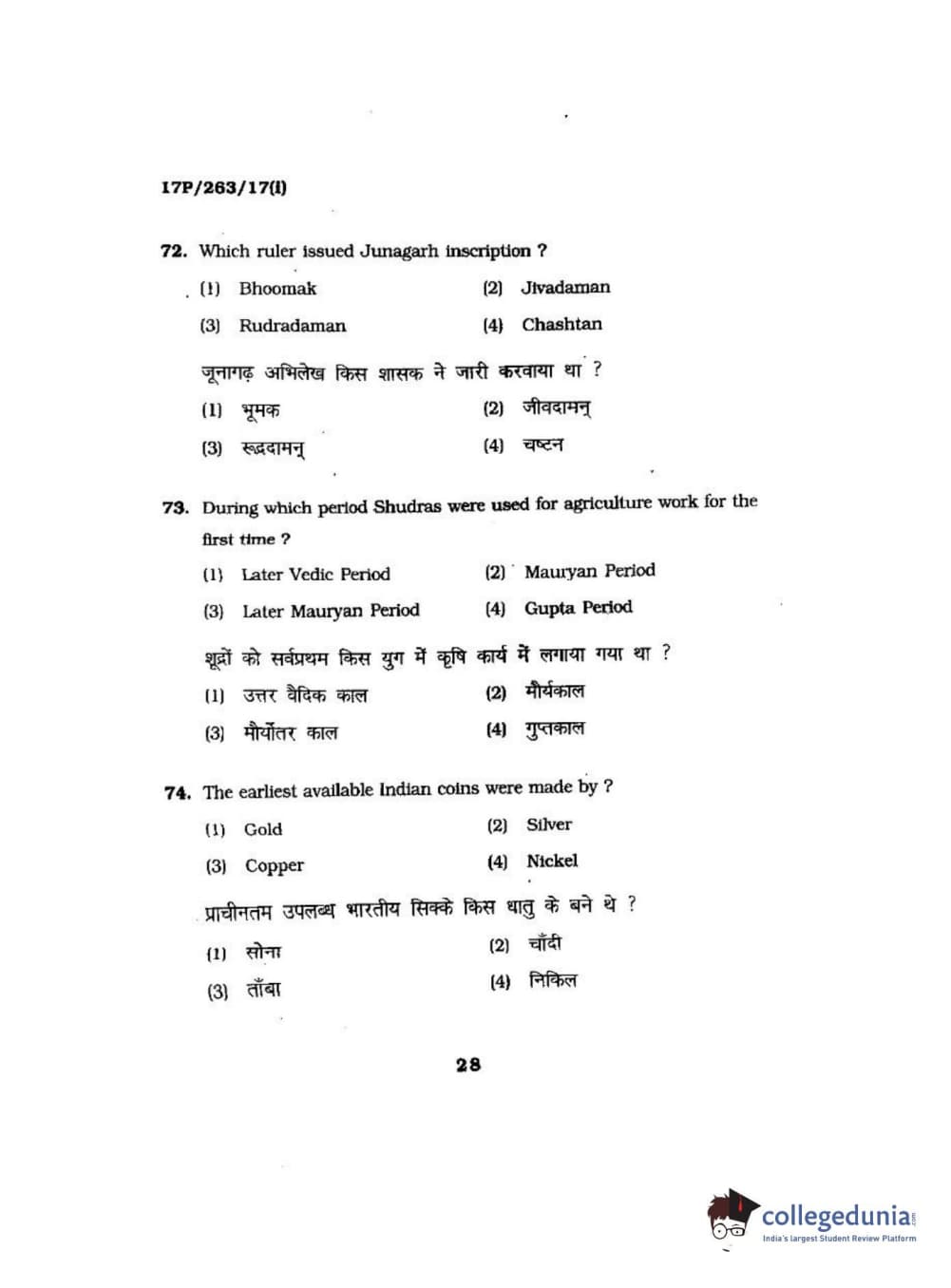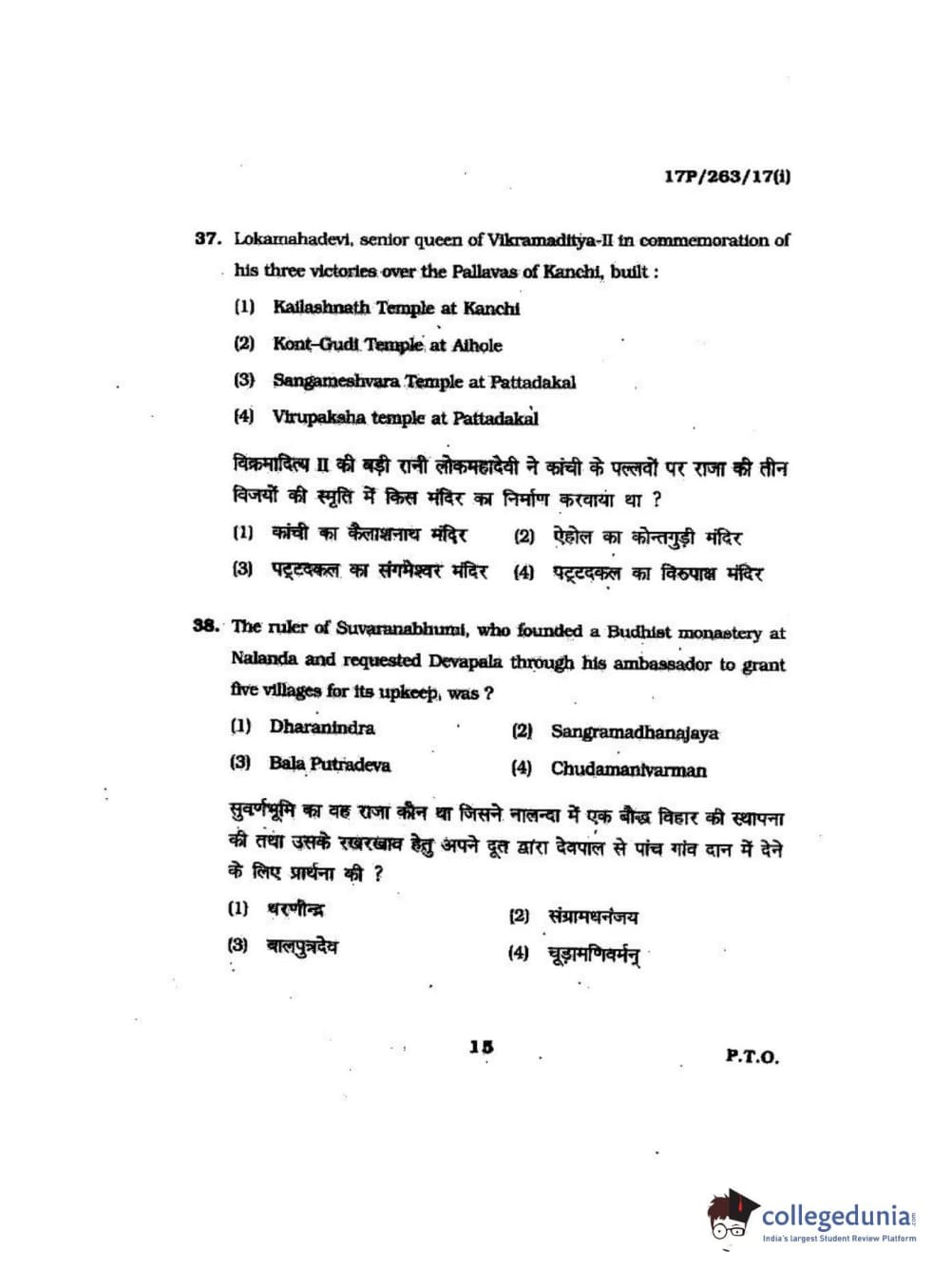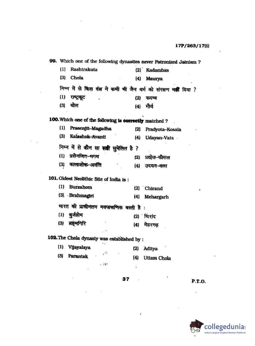 BHU PET 2017 M.A in AIHC & Arch Question Paper with Answer Key PDFs