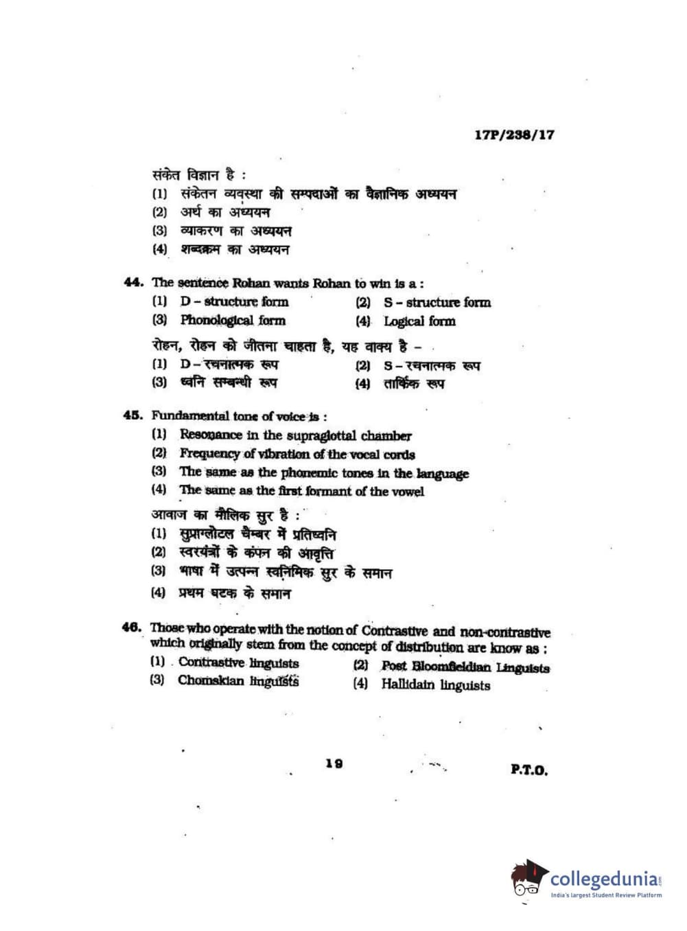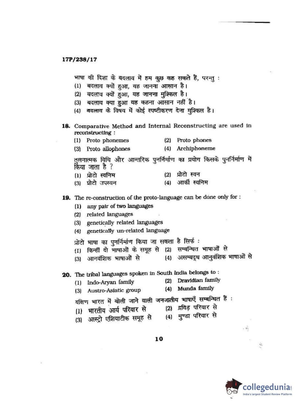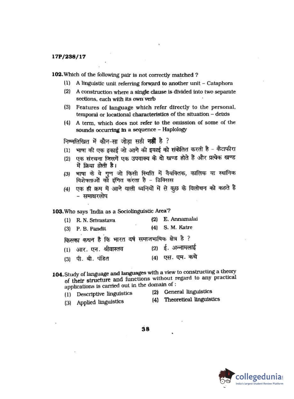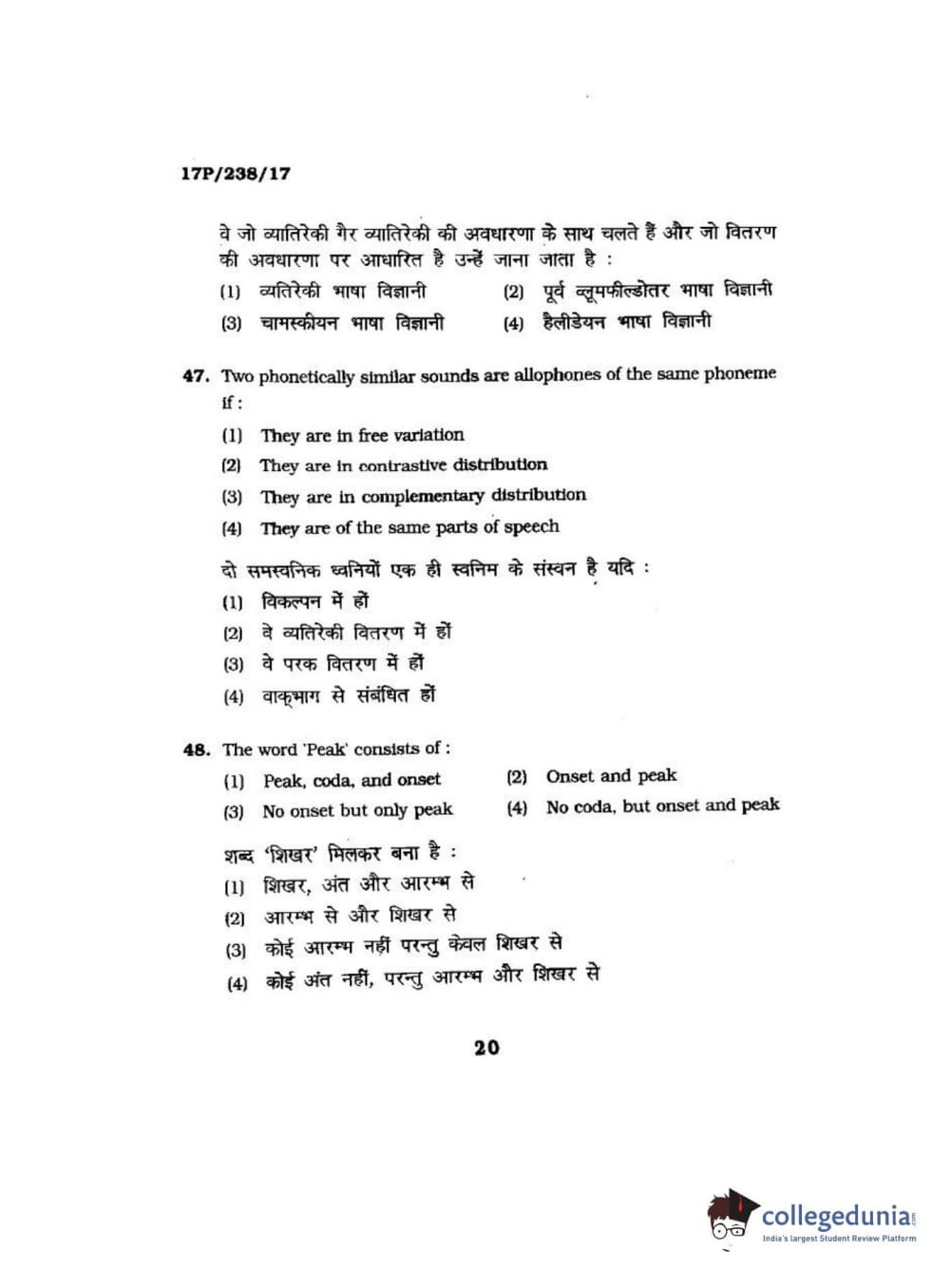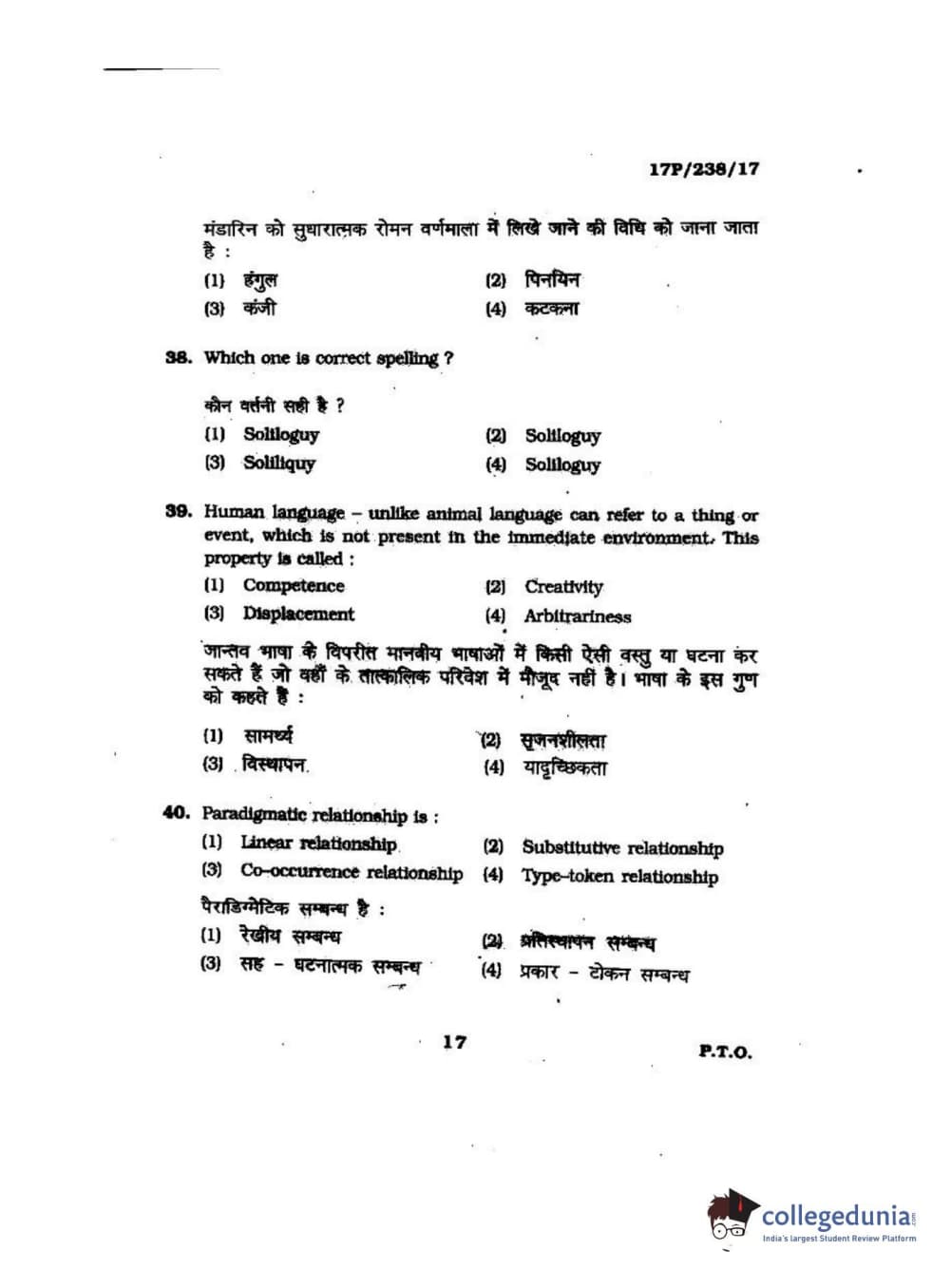BHU PET 2017 M.A Linguistics Question Paper with Answer Key PDFs