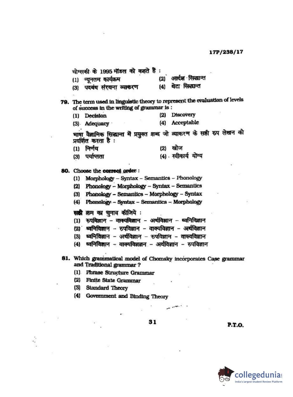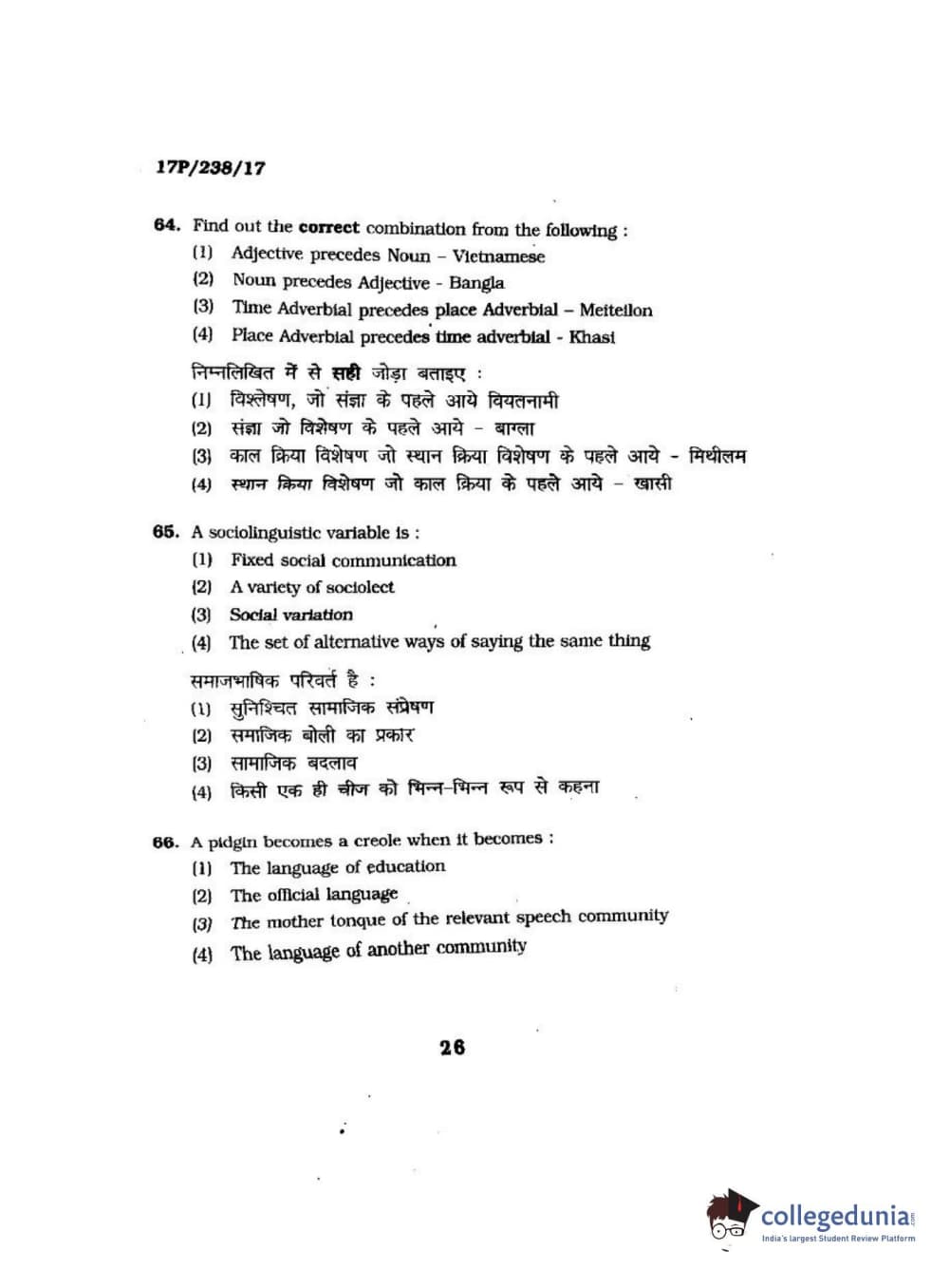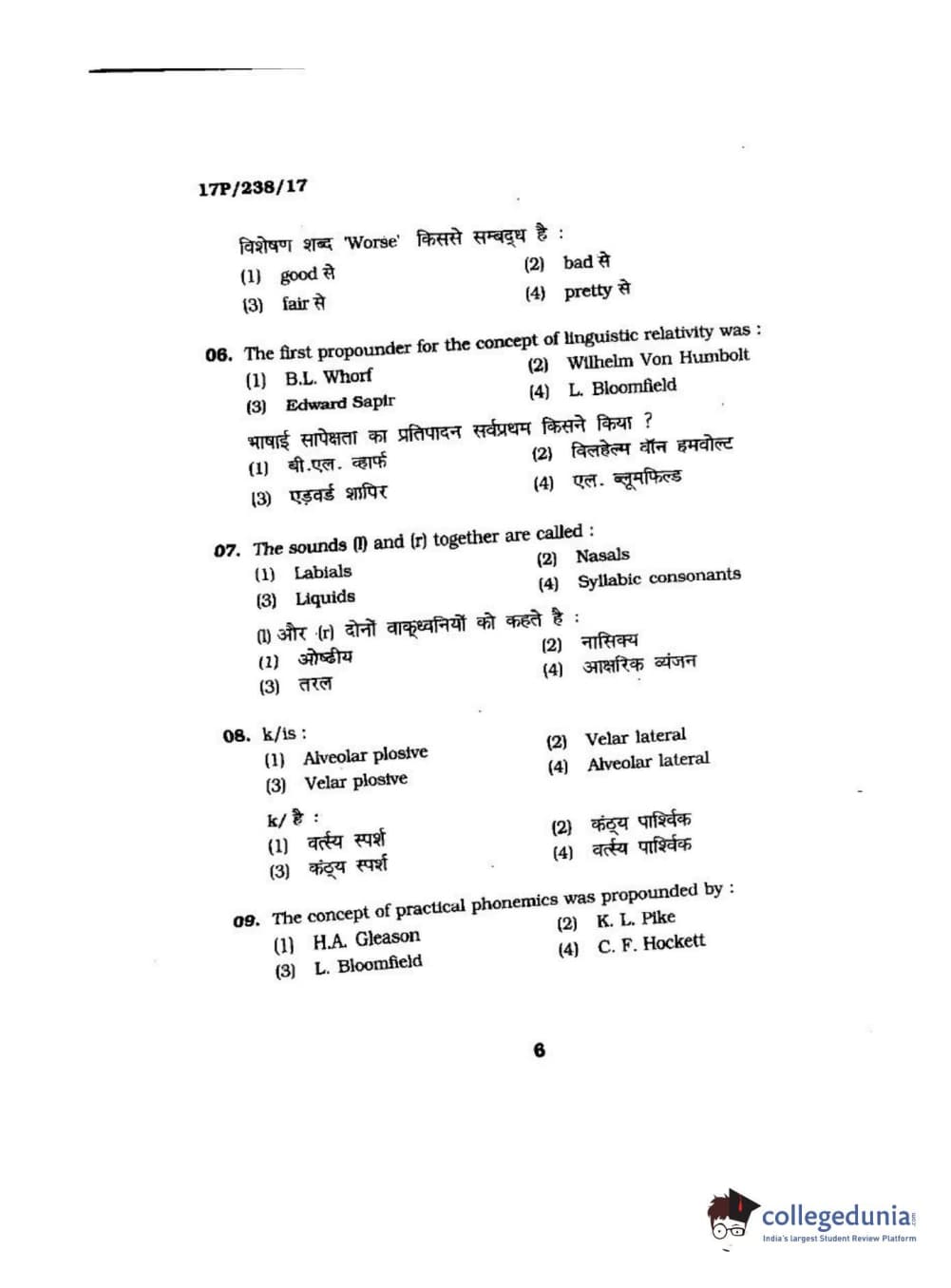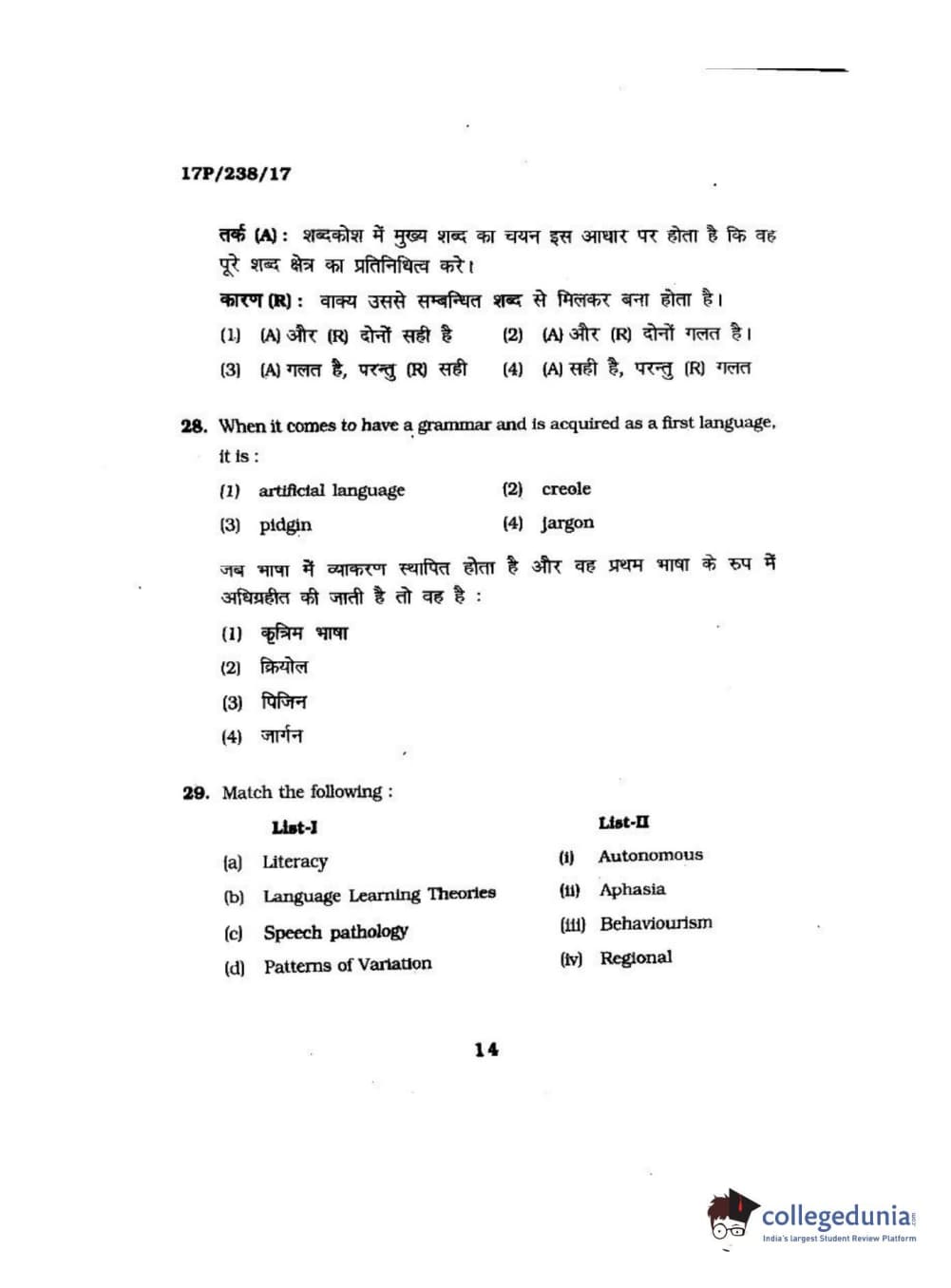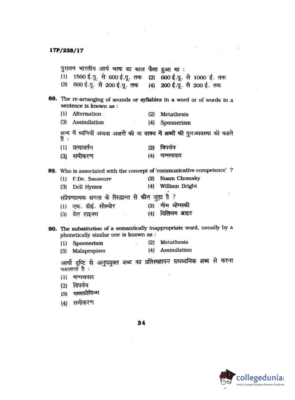 BHU PET 2017 M.A Linguistics Question Paper with Answer Key PDFs