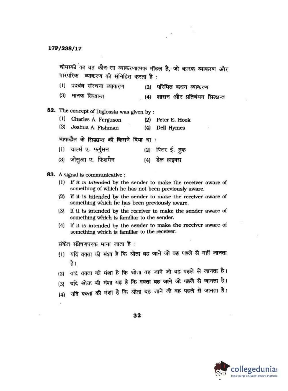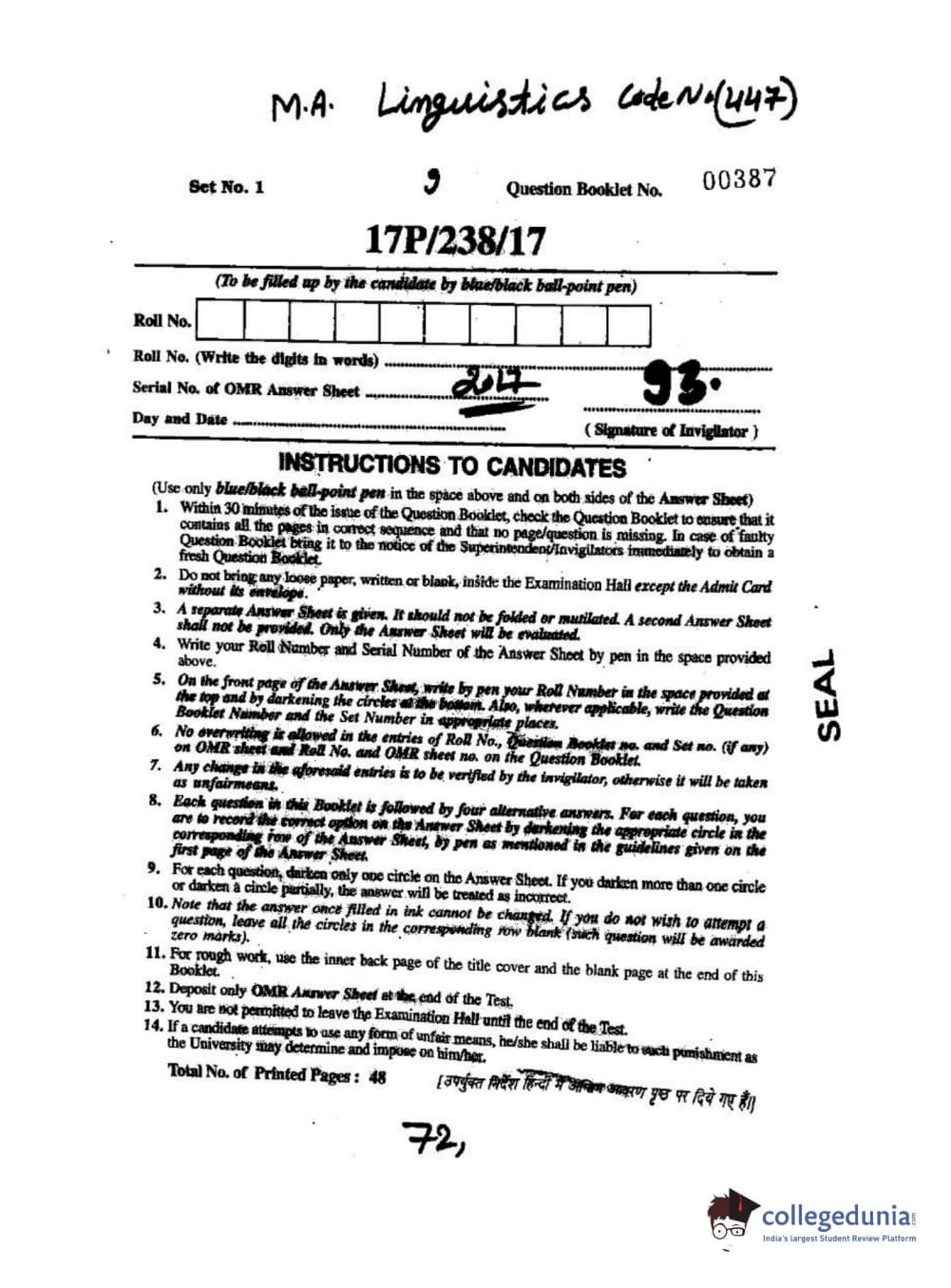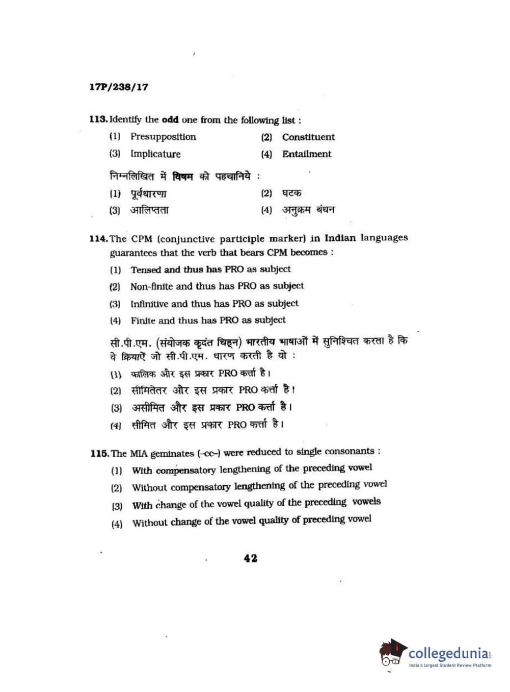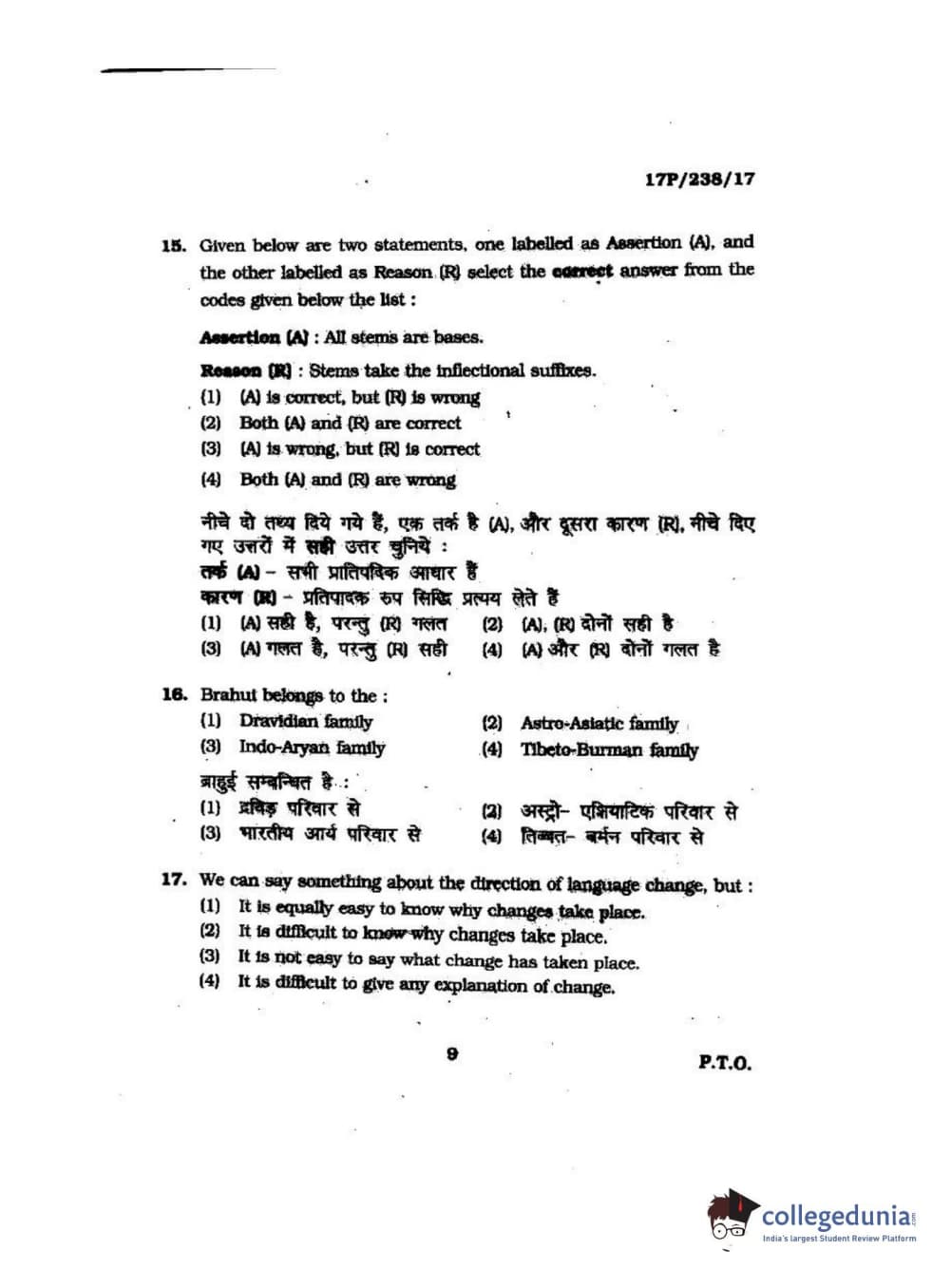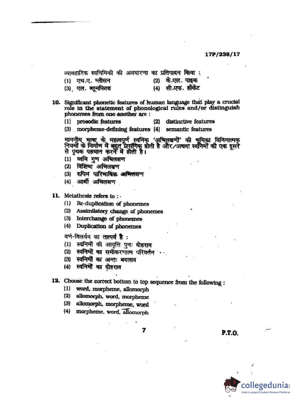 BHU PET 2017 M.A Linguistics Question Paper with Answer Key PDFs