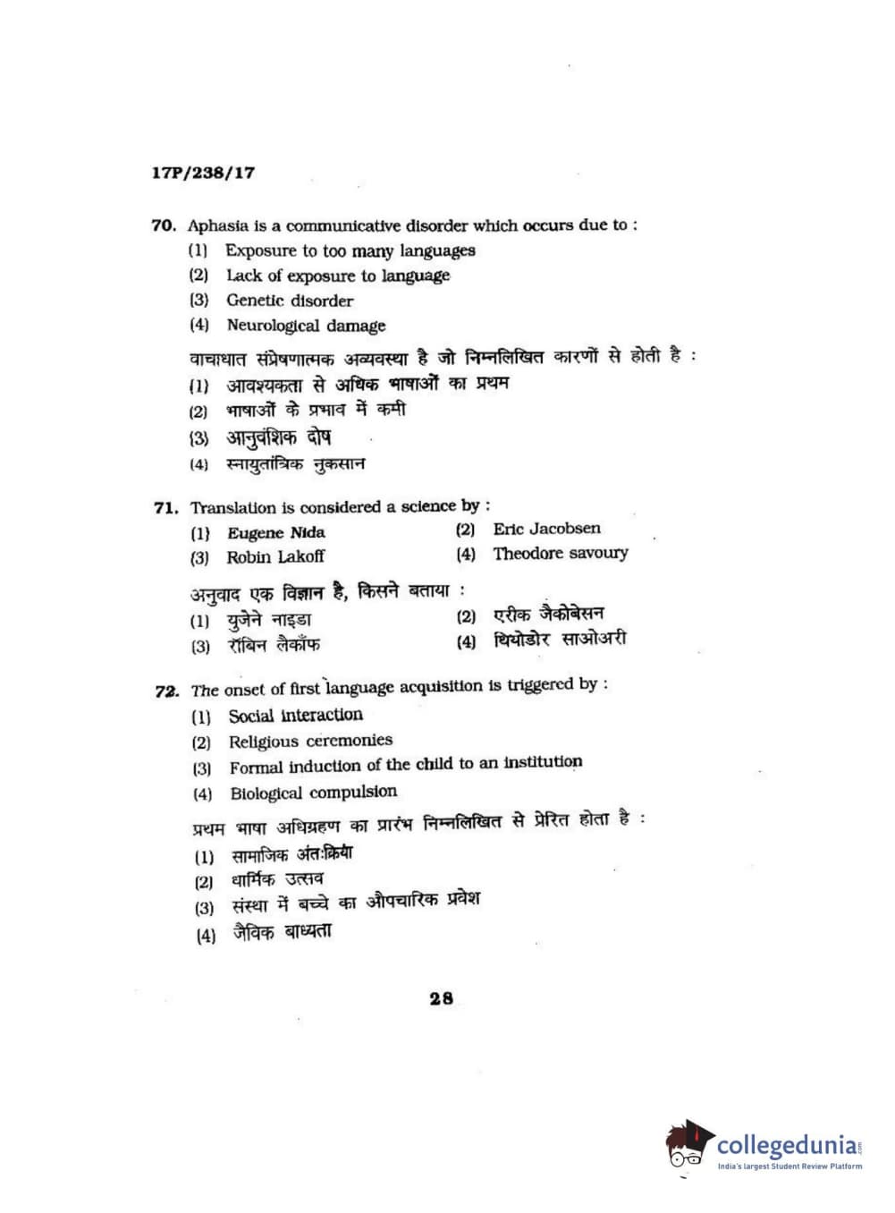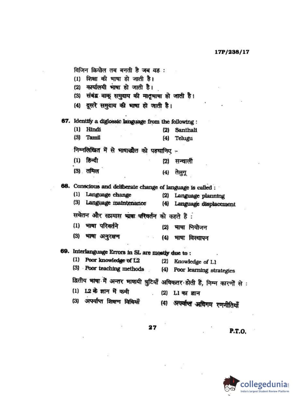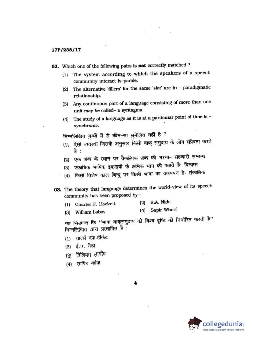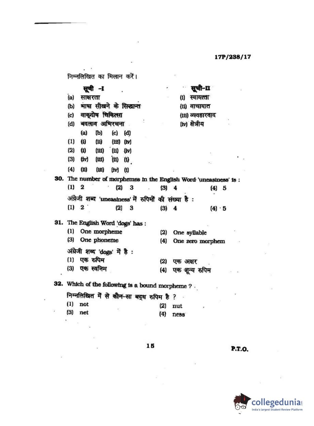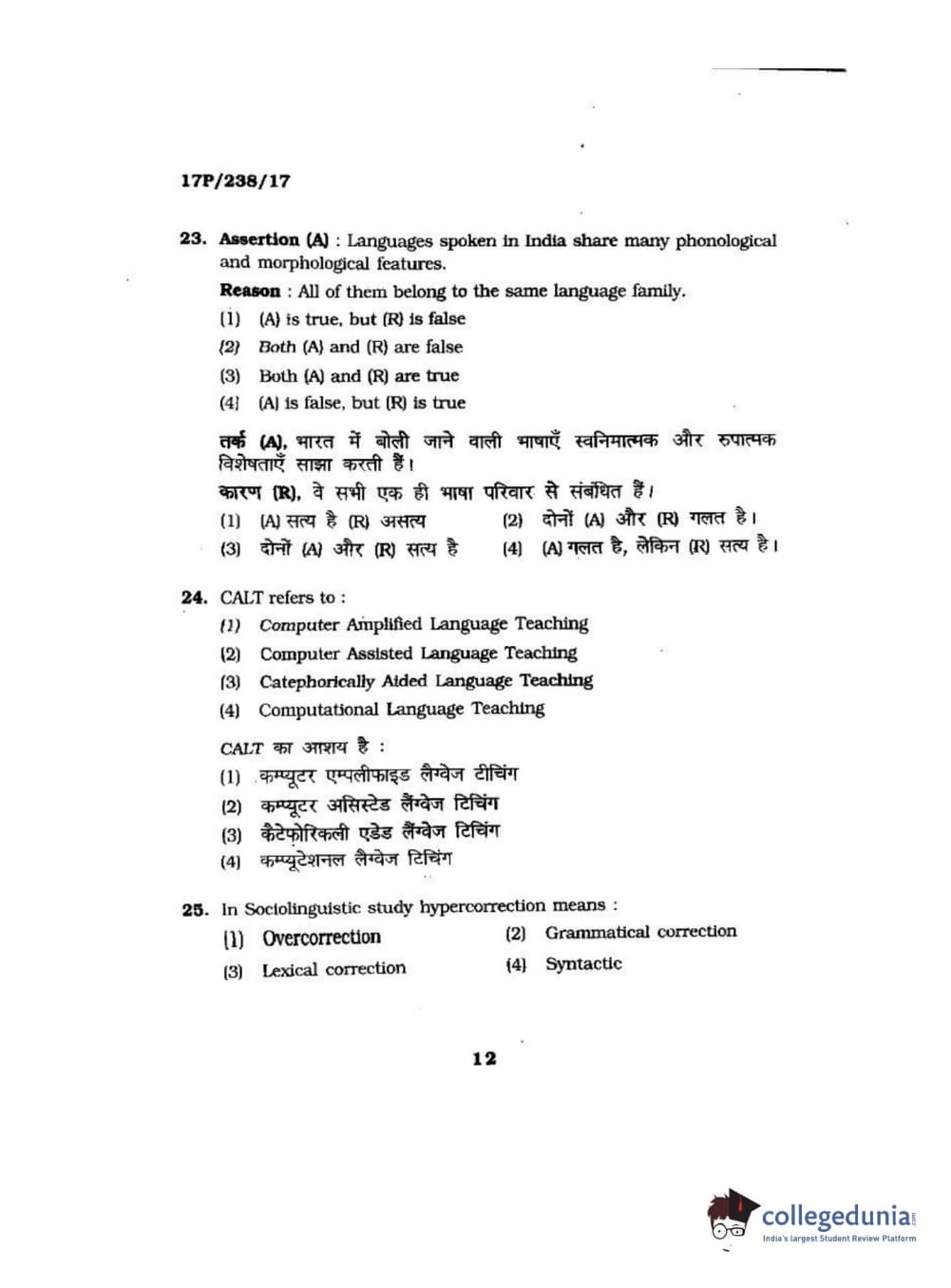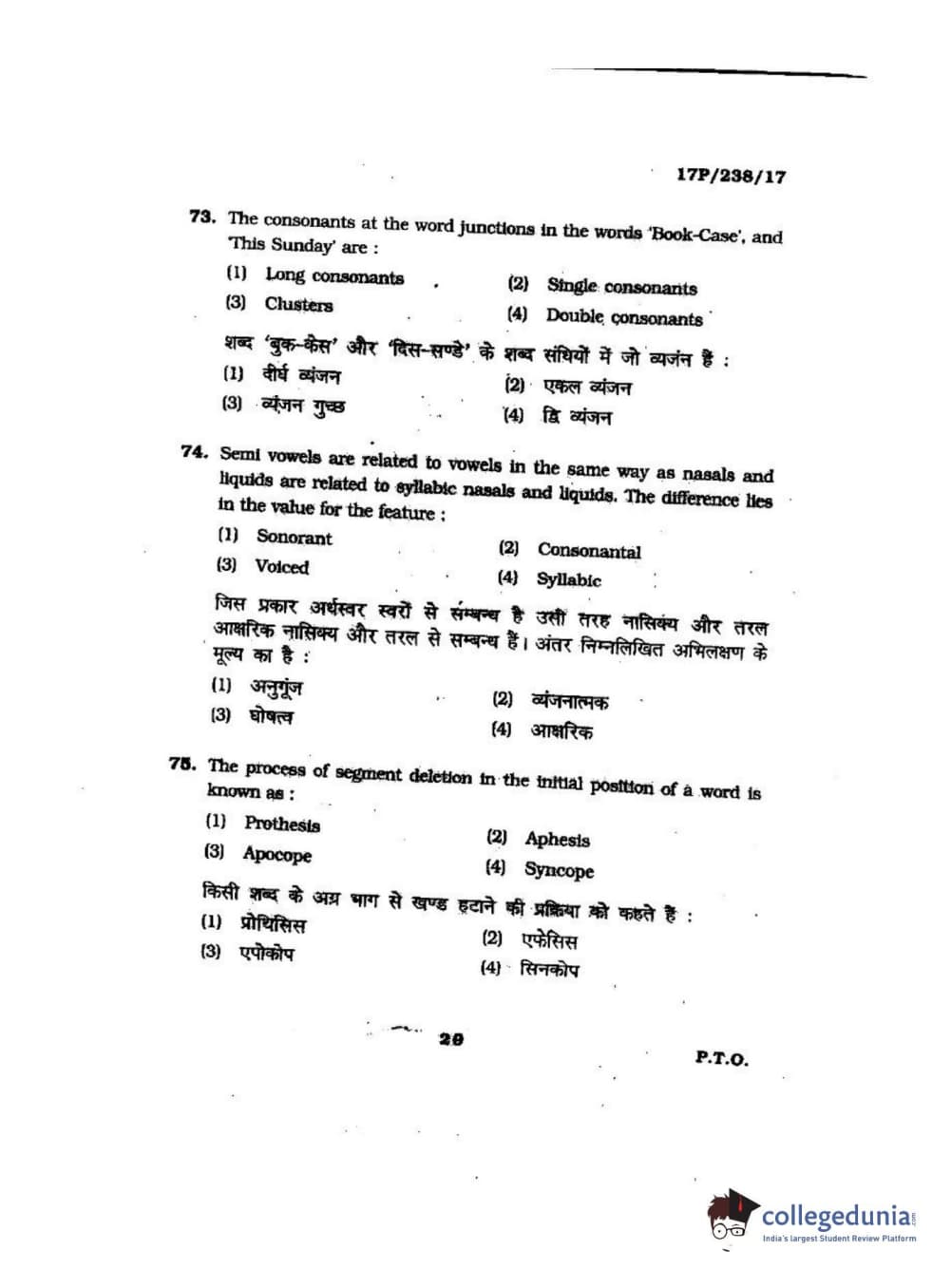 BHU PET 2017 M.A Linguistics Question Paper with Answer Key PDFs