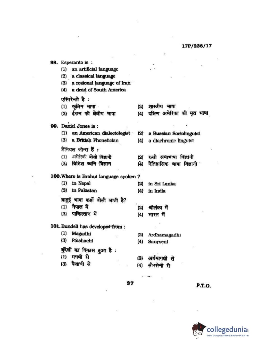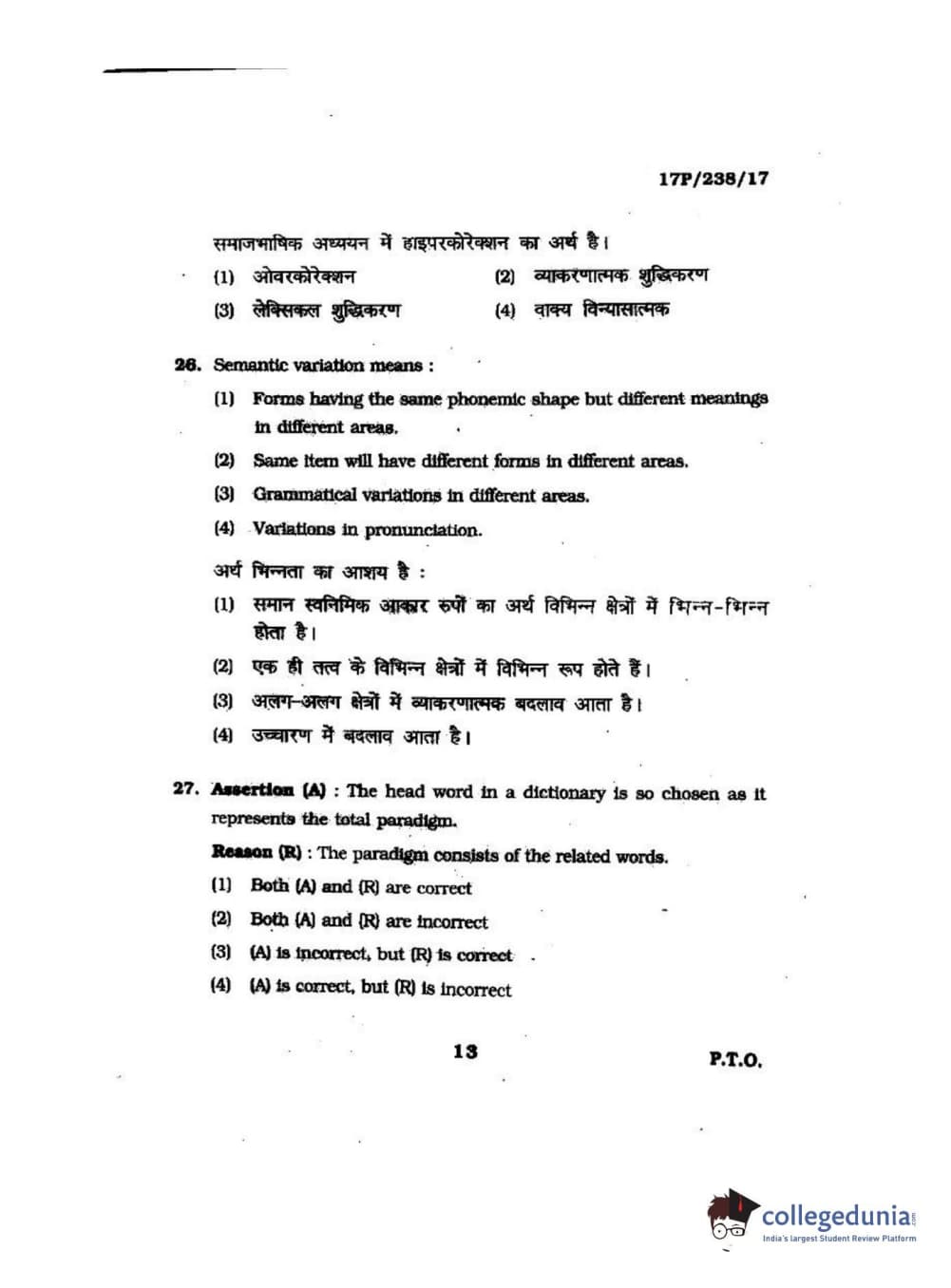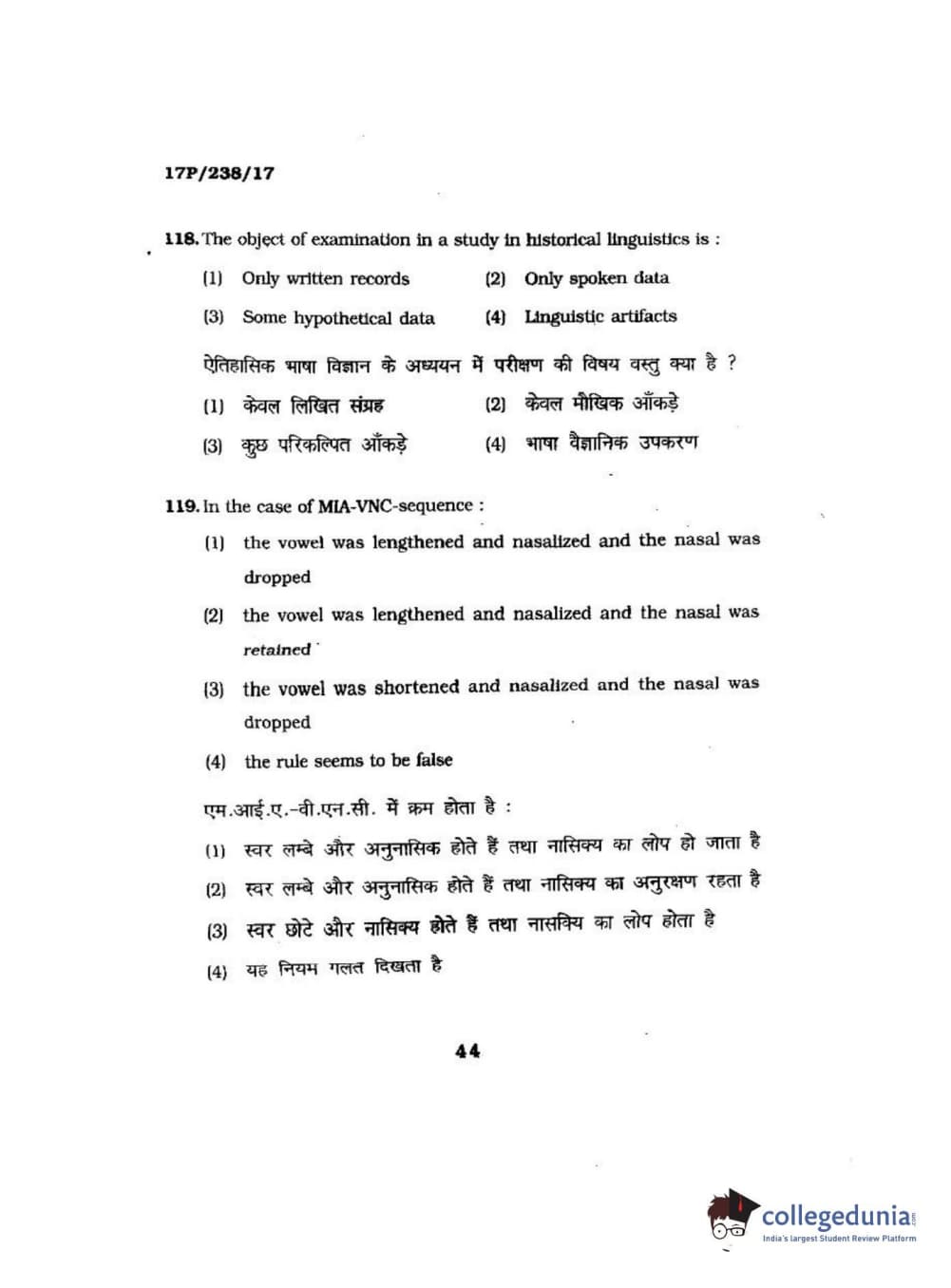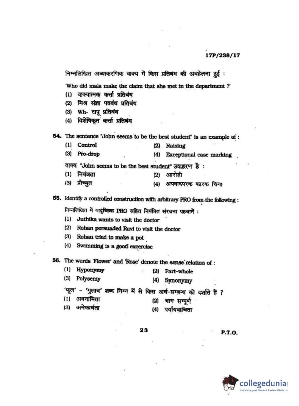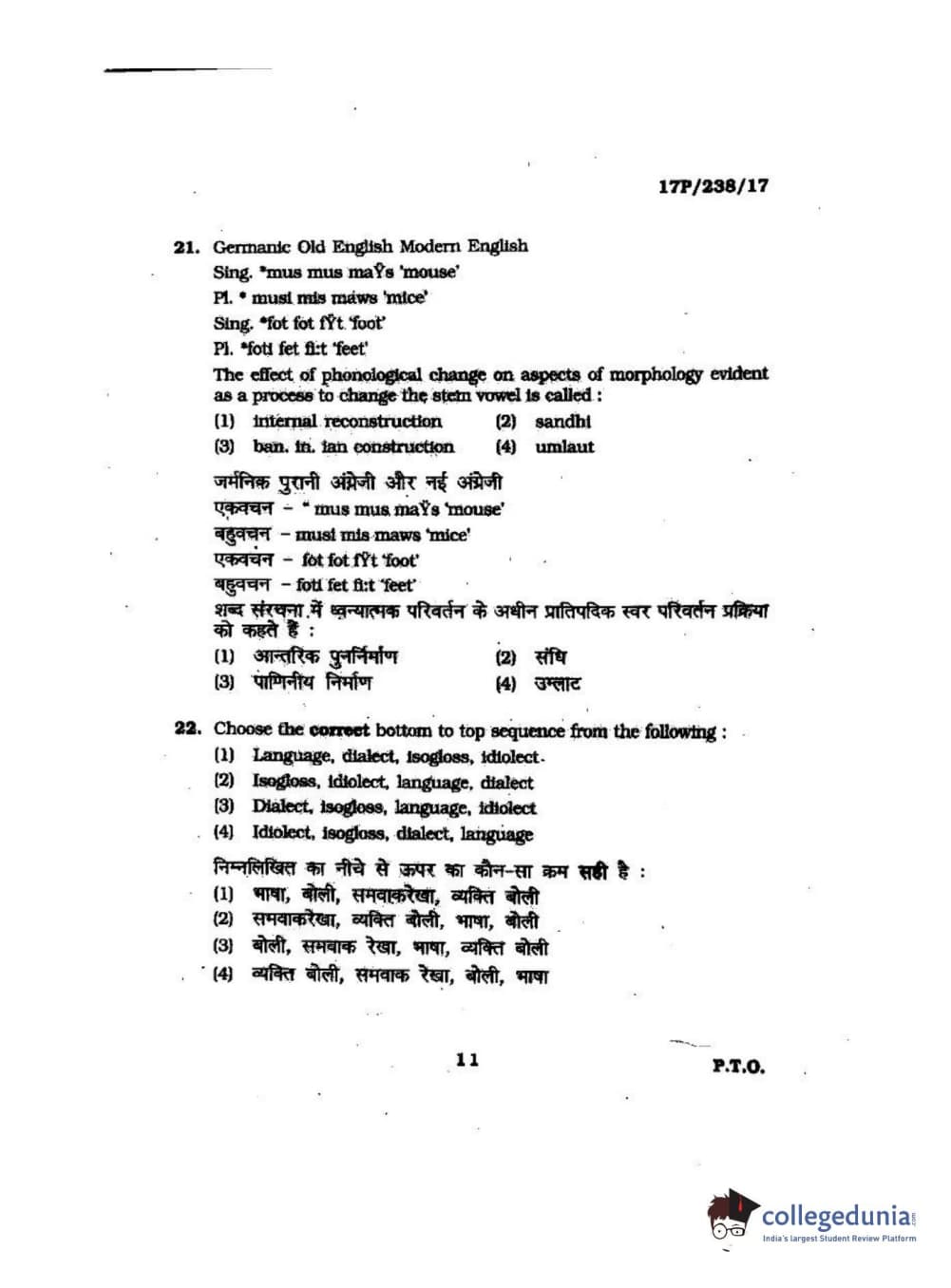 BHU PET 2017 M.A Linguistics Question Paper with Answer Key PDFs