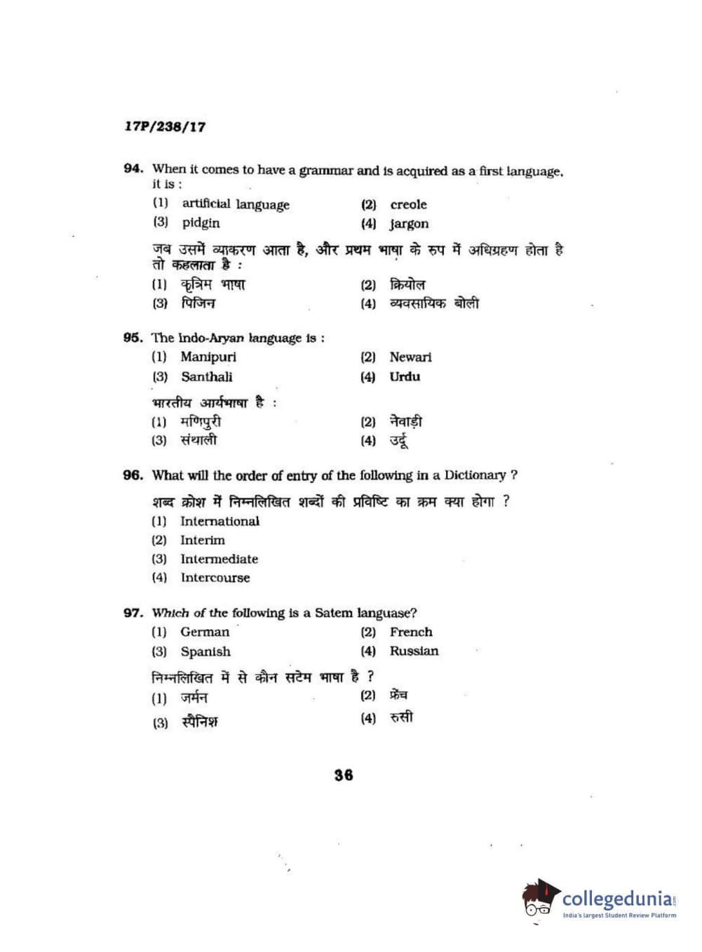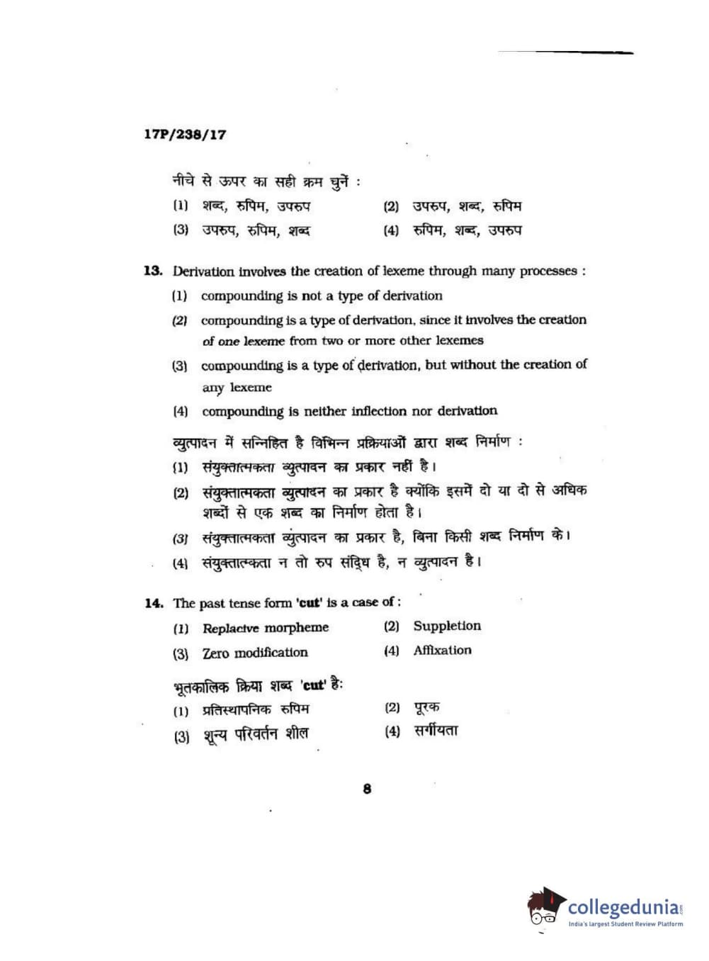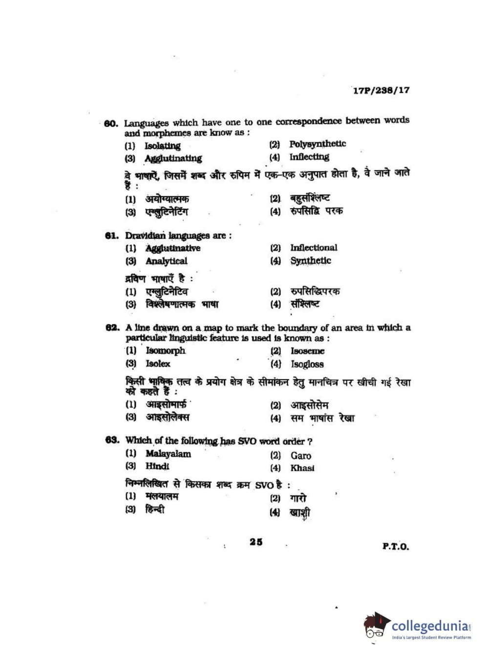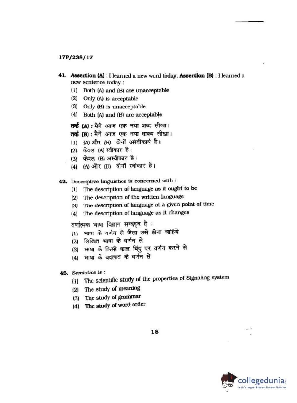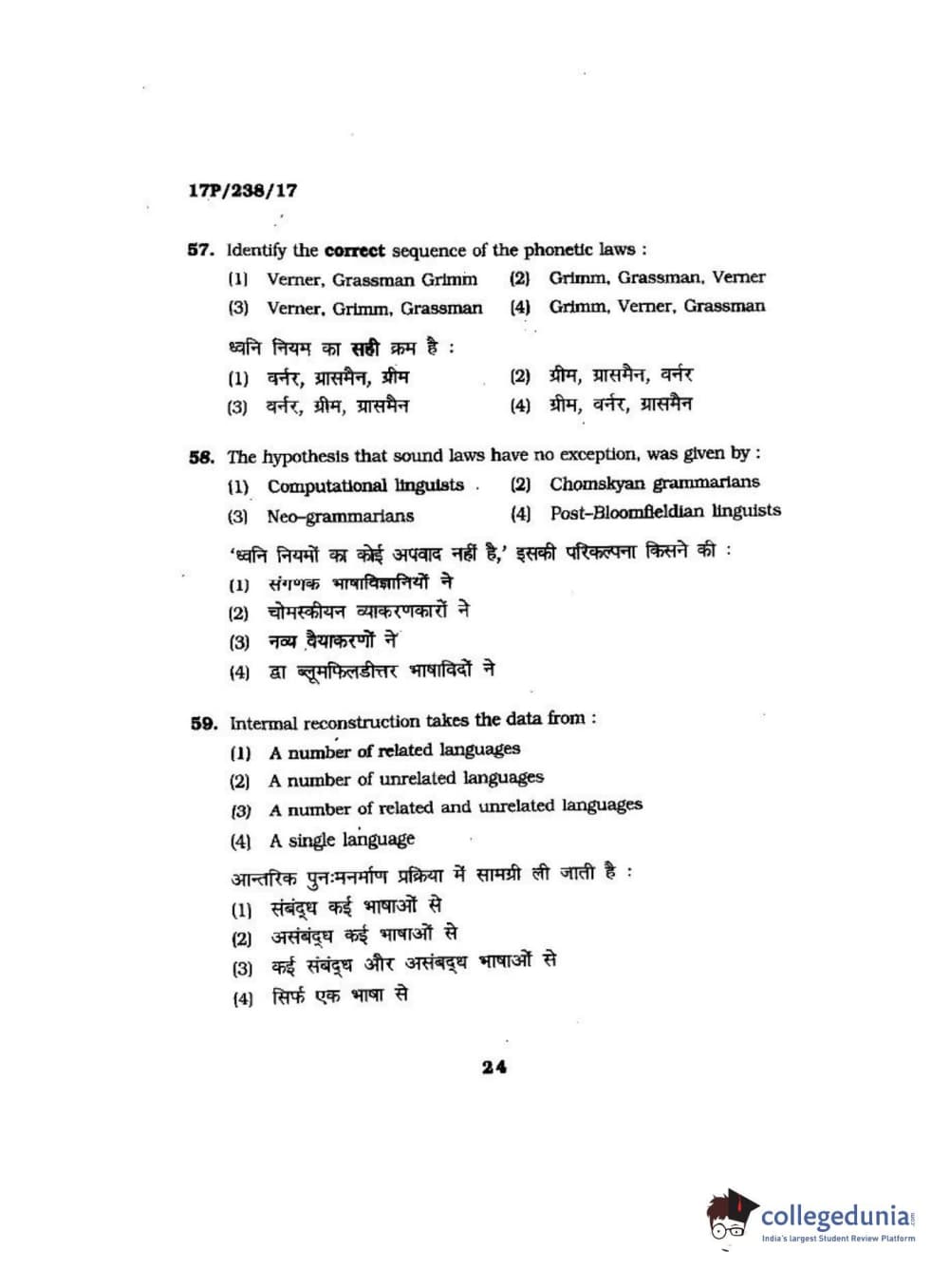 BHU PET 2017 M.A Linguistics Question Paper with Answer Key PDFs
