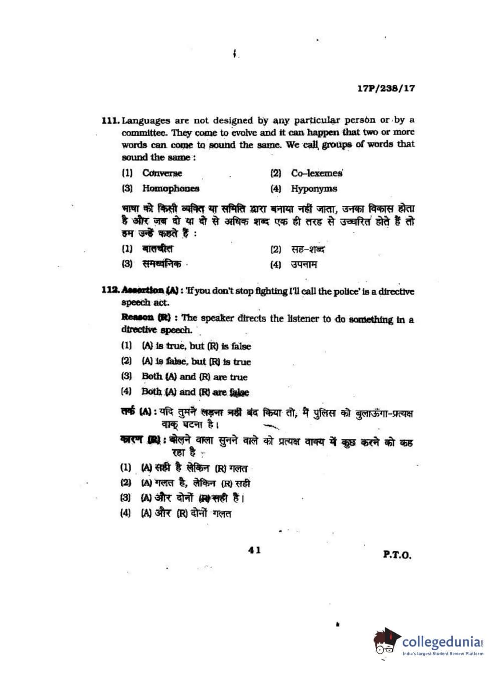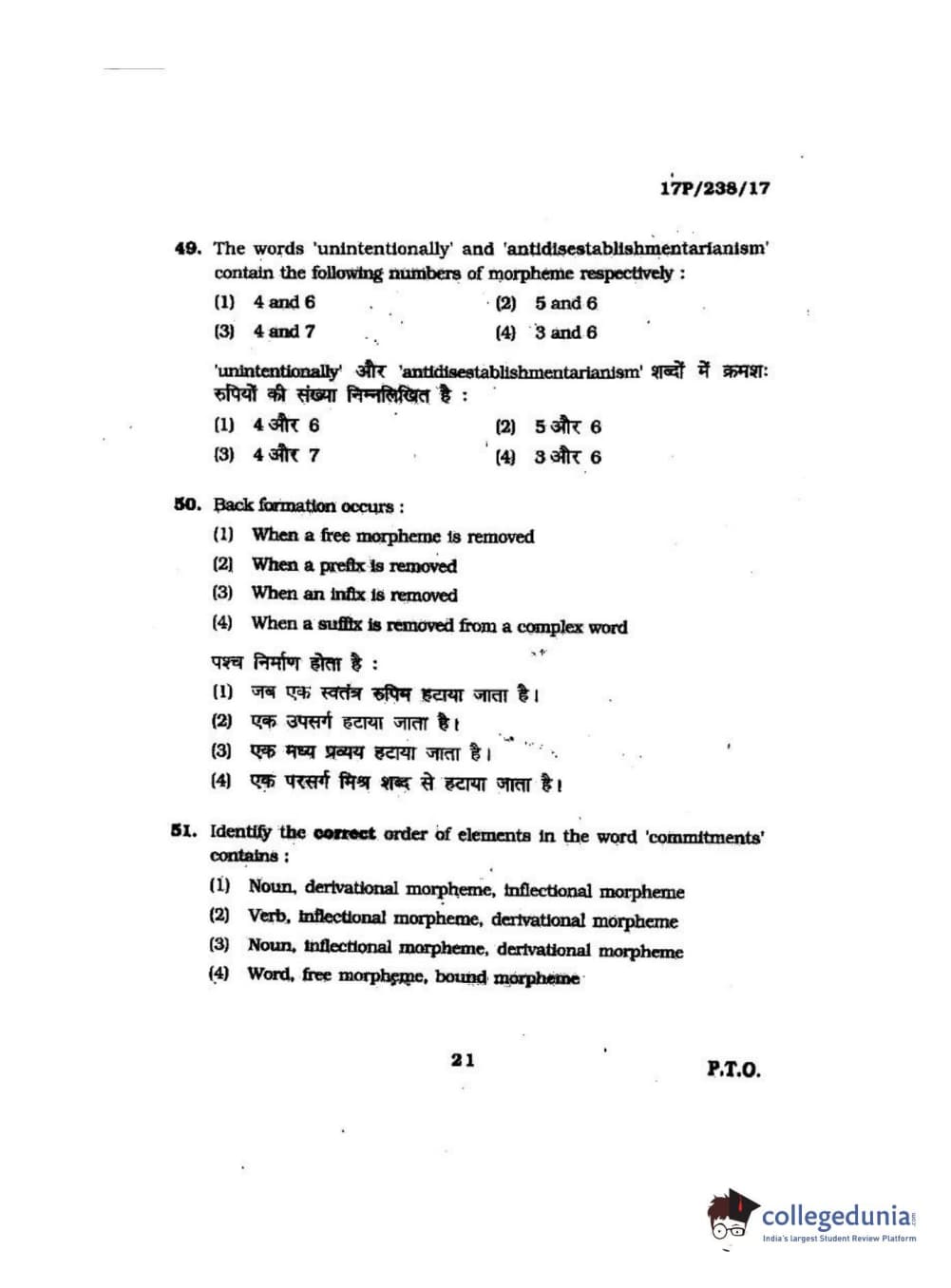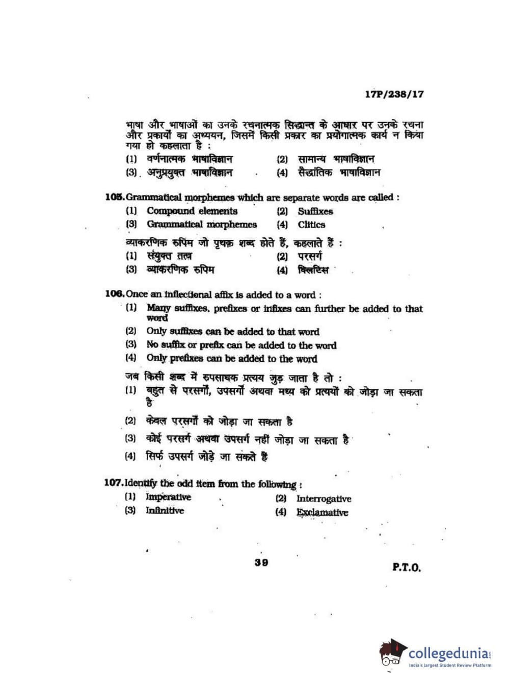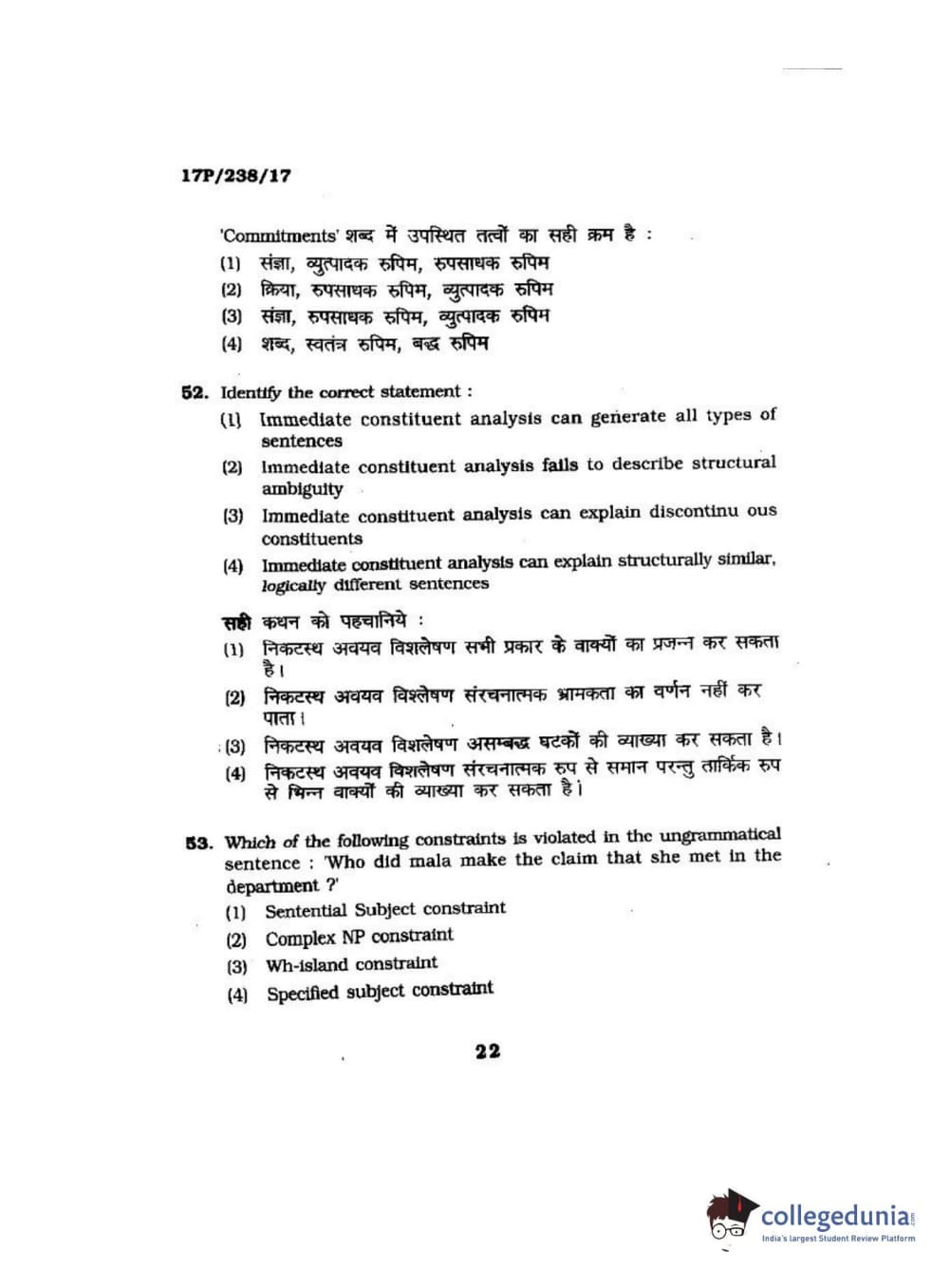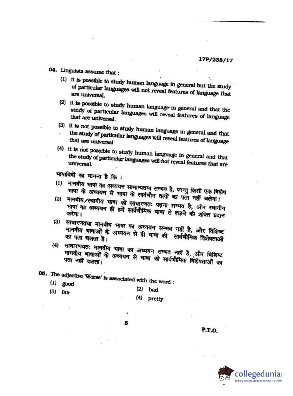 BHU PET 2017 M.A Linguistics Question Paper with Answer Key PDFs