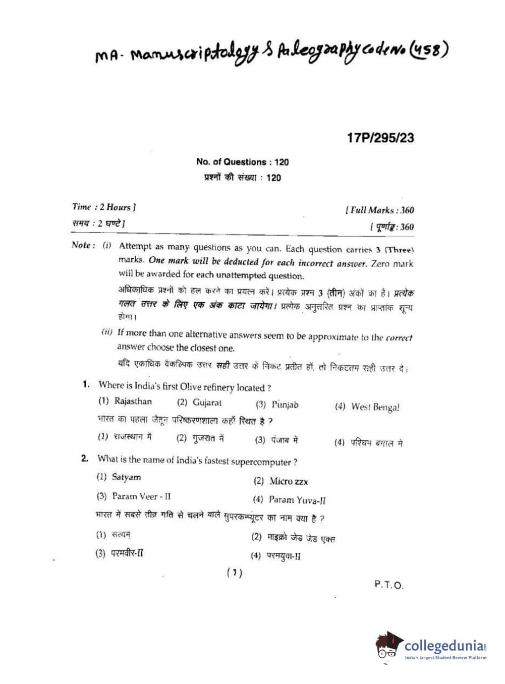 BHU PET 2017 M.A. Manuscriptolog & Paleography Question paper with answer key pdf is available for download. The exam was successfully organized by Banaras Hindu University (BHU). The question paper comprised a total of 120 questions.