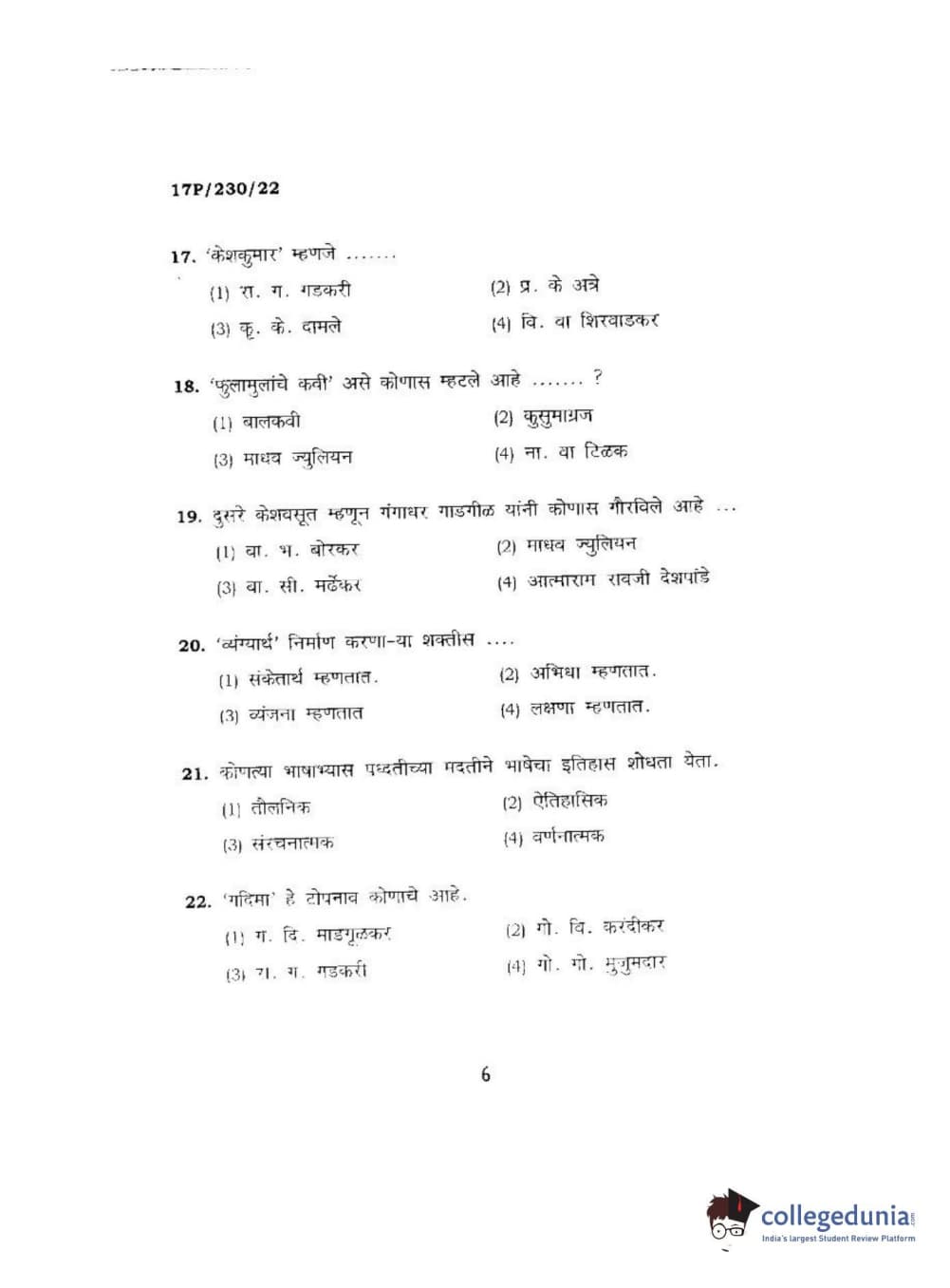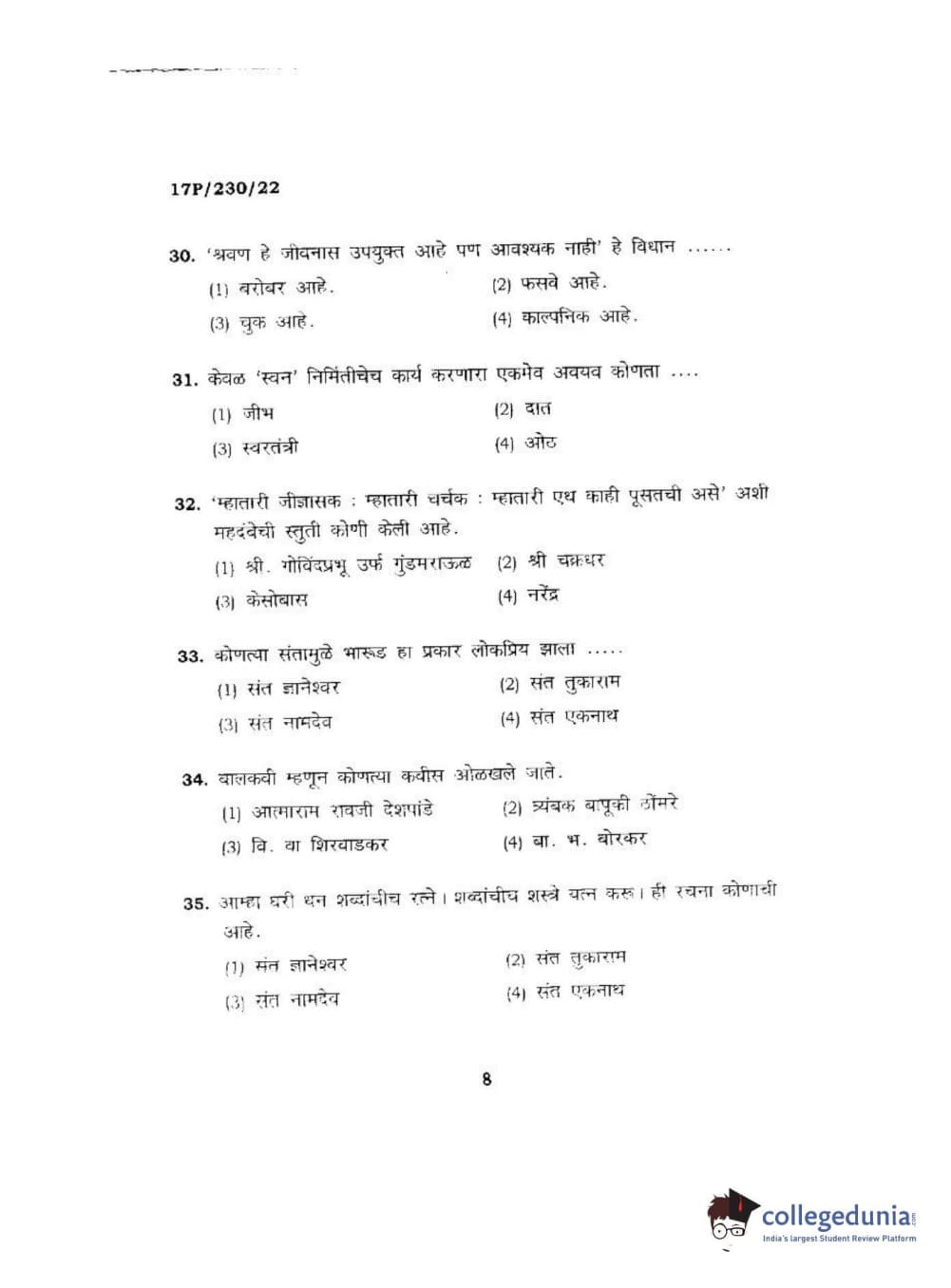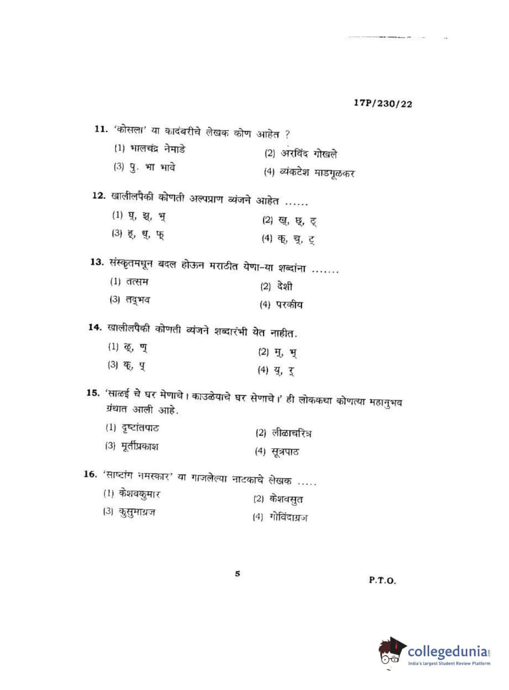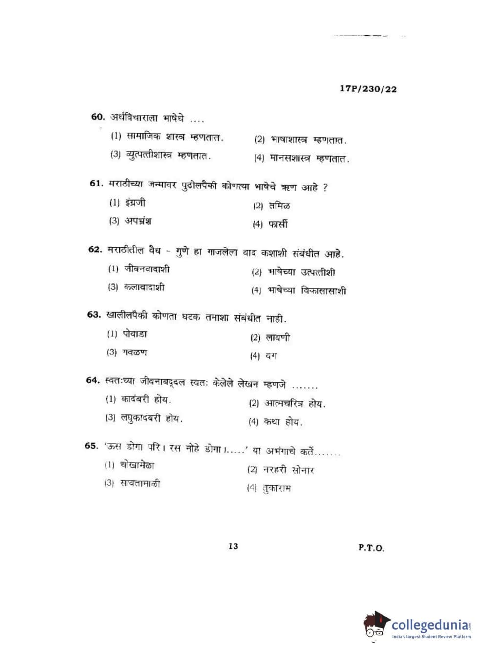 BHU PET 2017 M.A. Marathi Question Paper with Answer Key PDFs