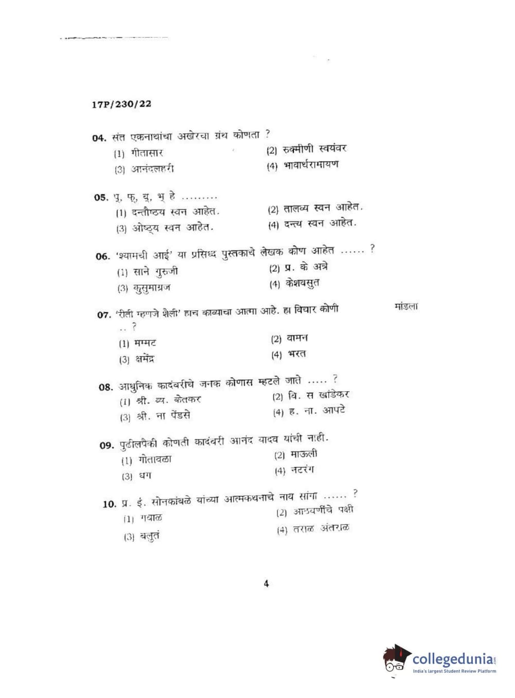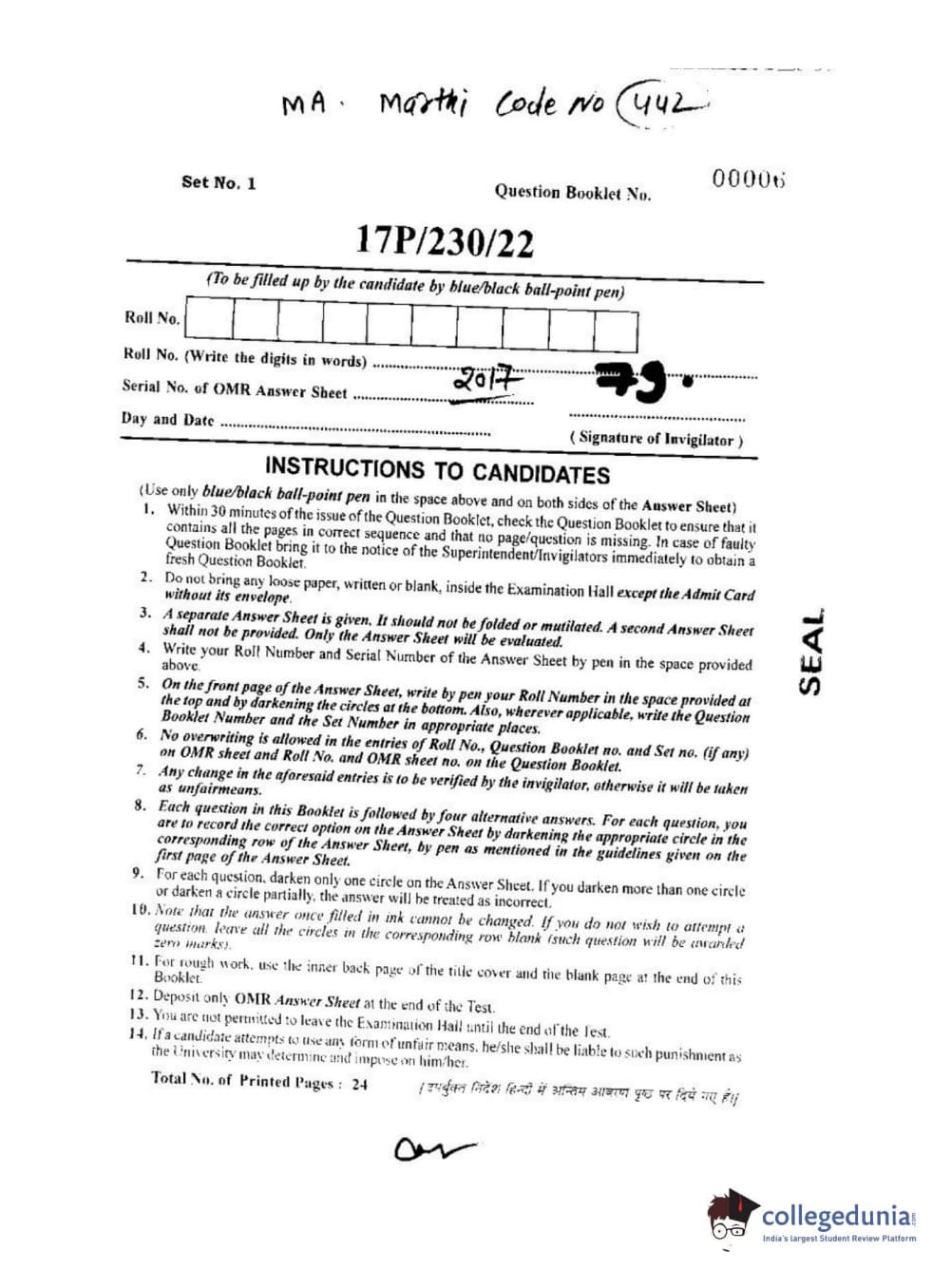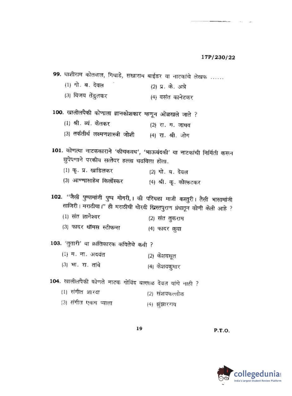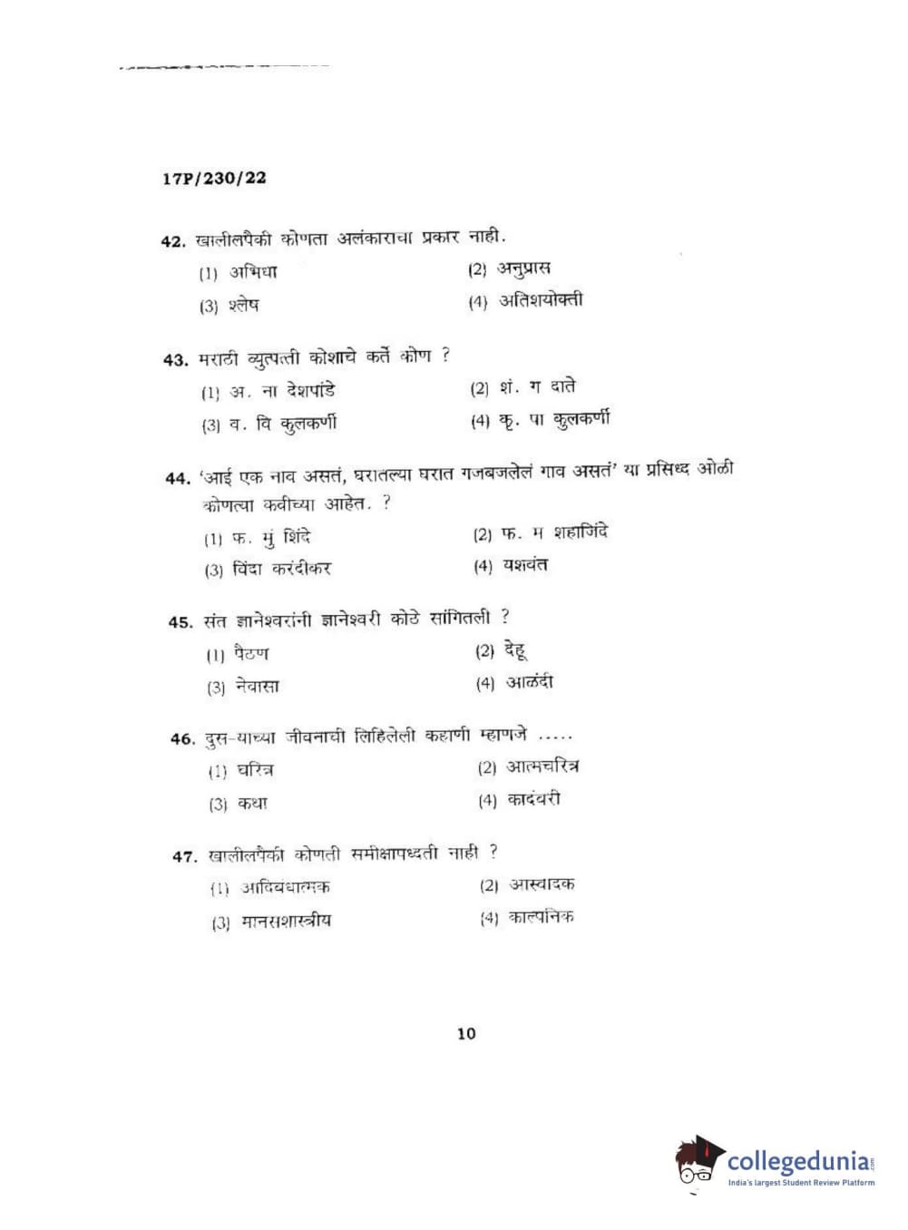 BHU PET 2017 M.A. Marathi Question Paper with Answer Key PDFs