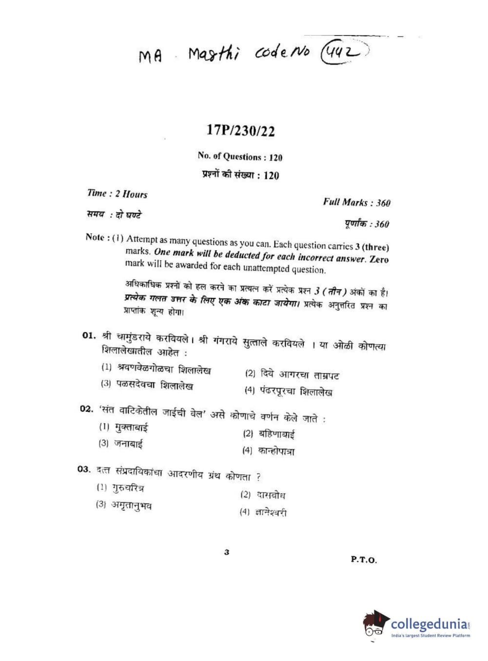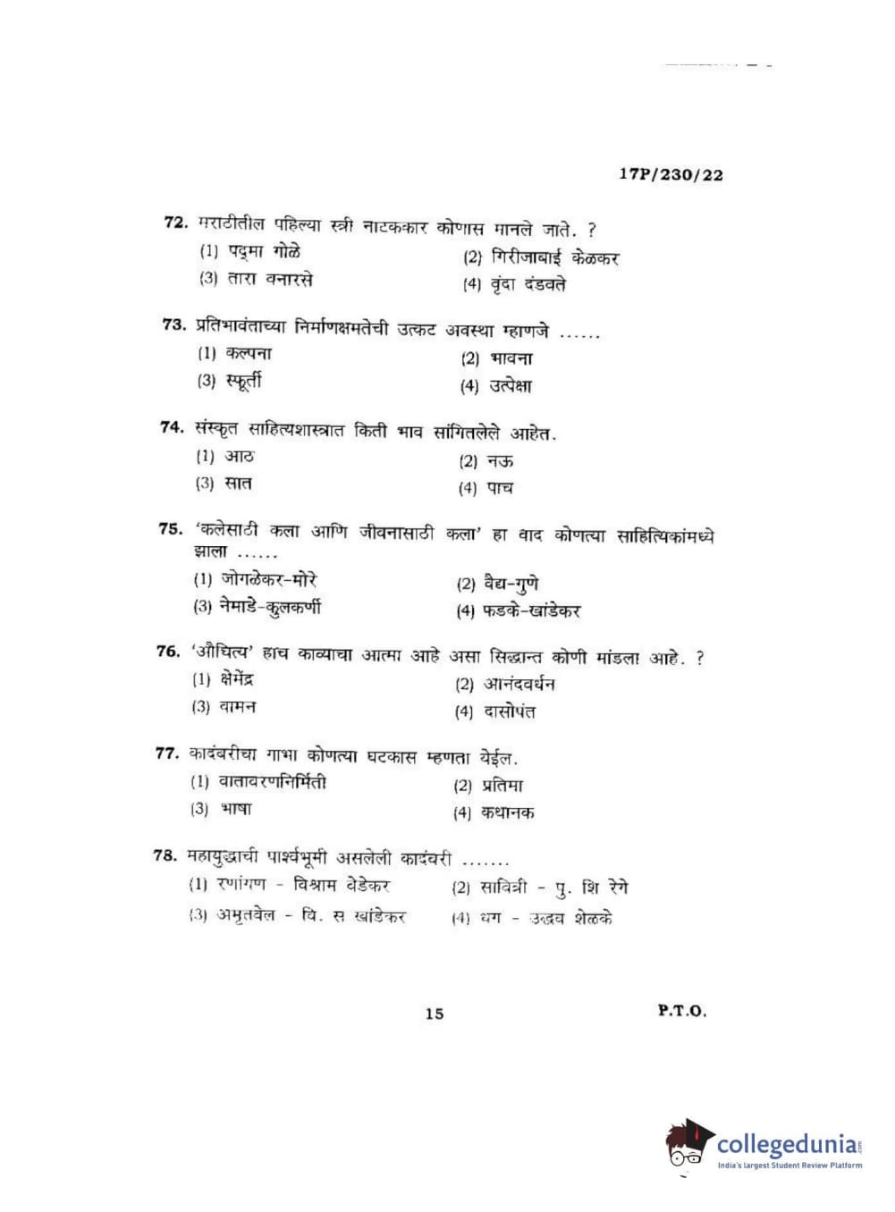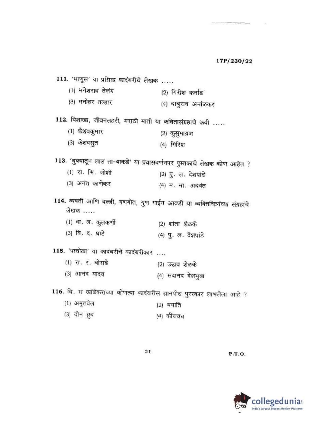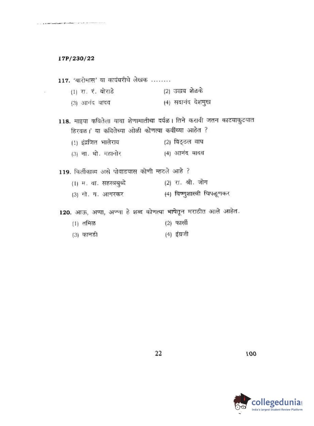 BHU PET 2017 M.A. Marathi Question paper with answer key pdf is available for download. The exam was successfully organized by Banaras Hindu University (BHU). The question paper comprised a total of 120 questions.