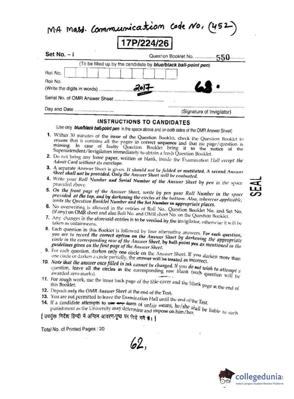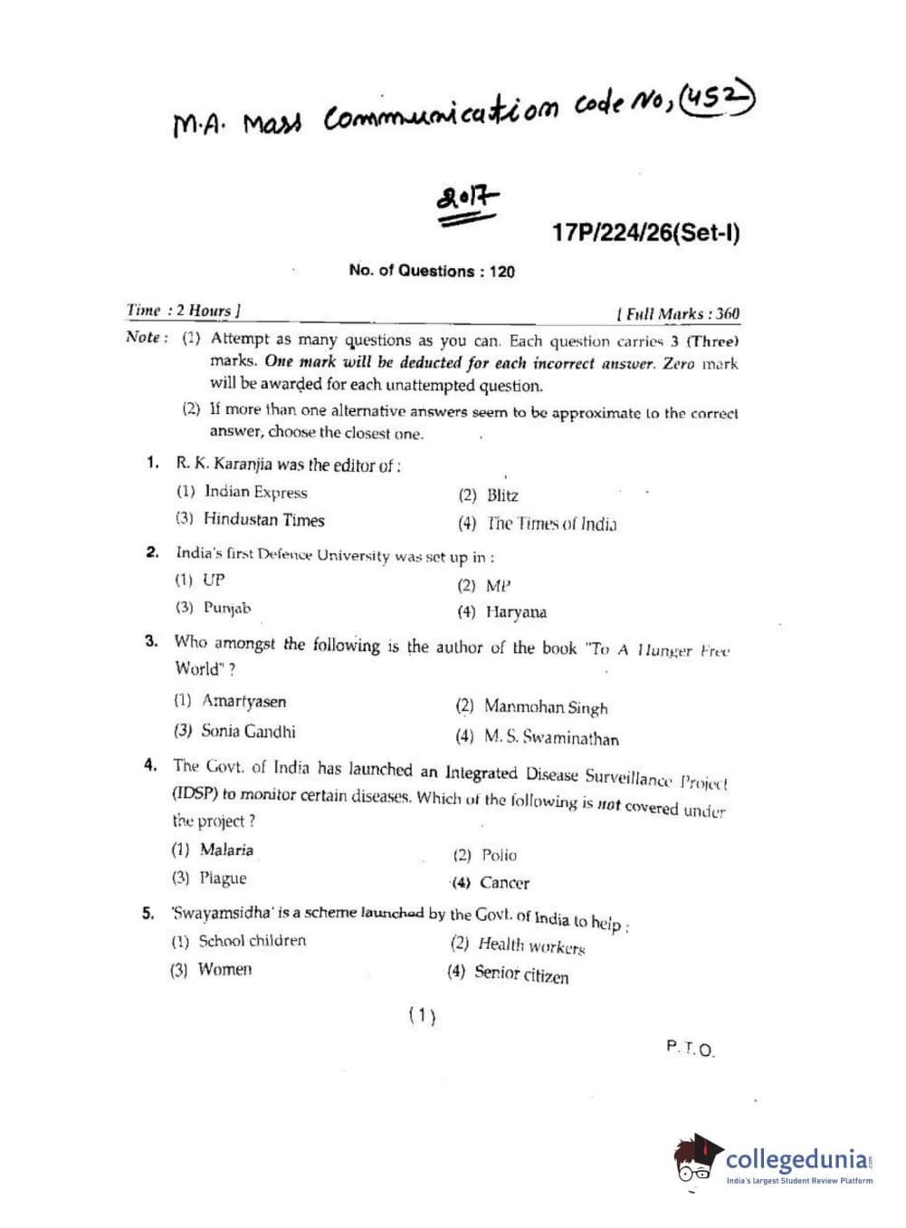 | BHU PET 2017 M.A. Mass Communication Question Paper PDF | BHU PET 2017 M.A. Mass Communication Answer Key PDF |