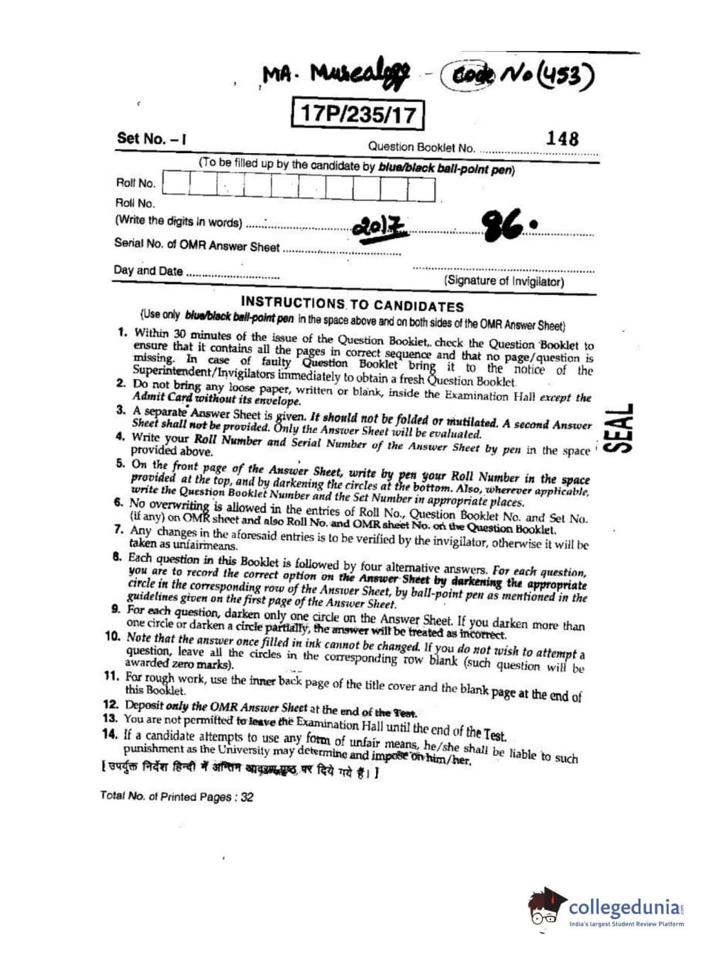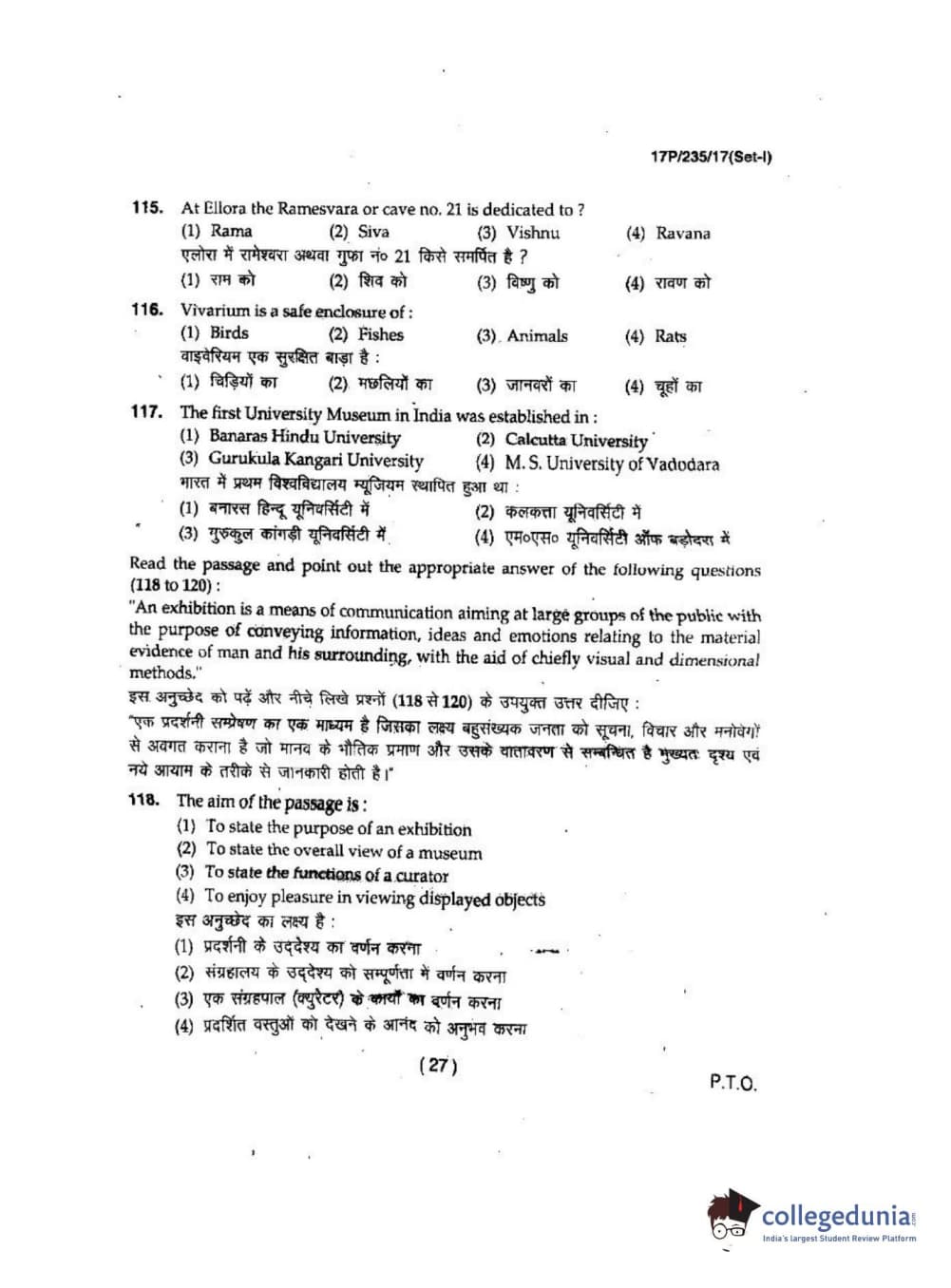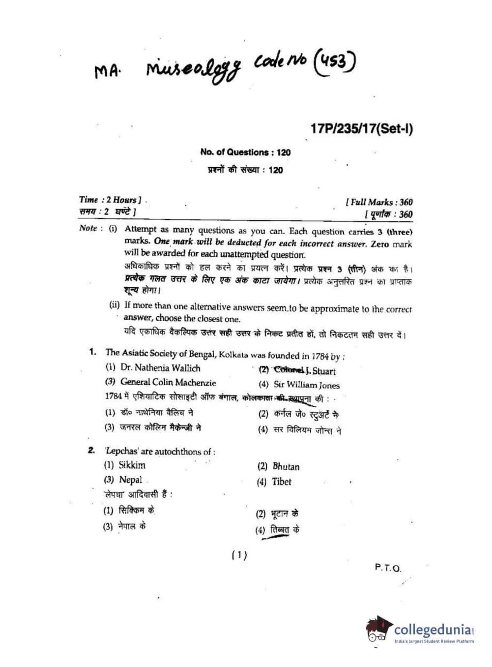 BHU PET 2017 M.A Museology Question paper with answer key pdf is available for download. The exam was successfully organized by Banaras Hindu University (BHU). The question paper comprised a total of 120 questions.