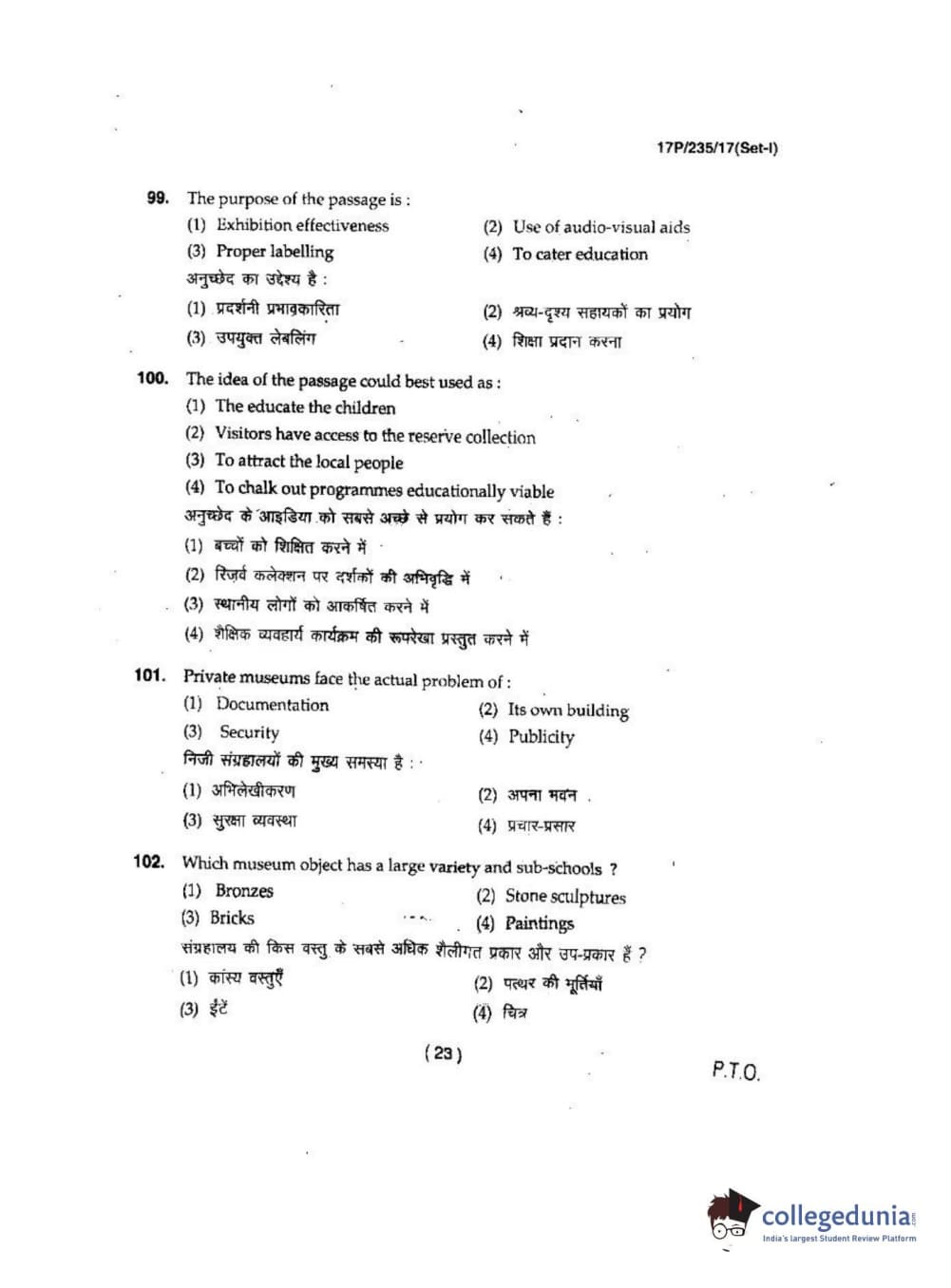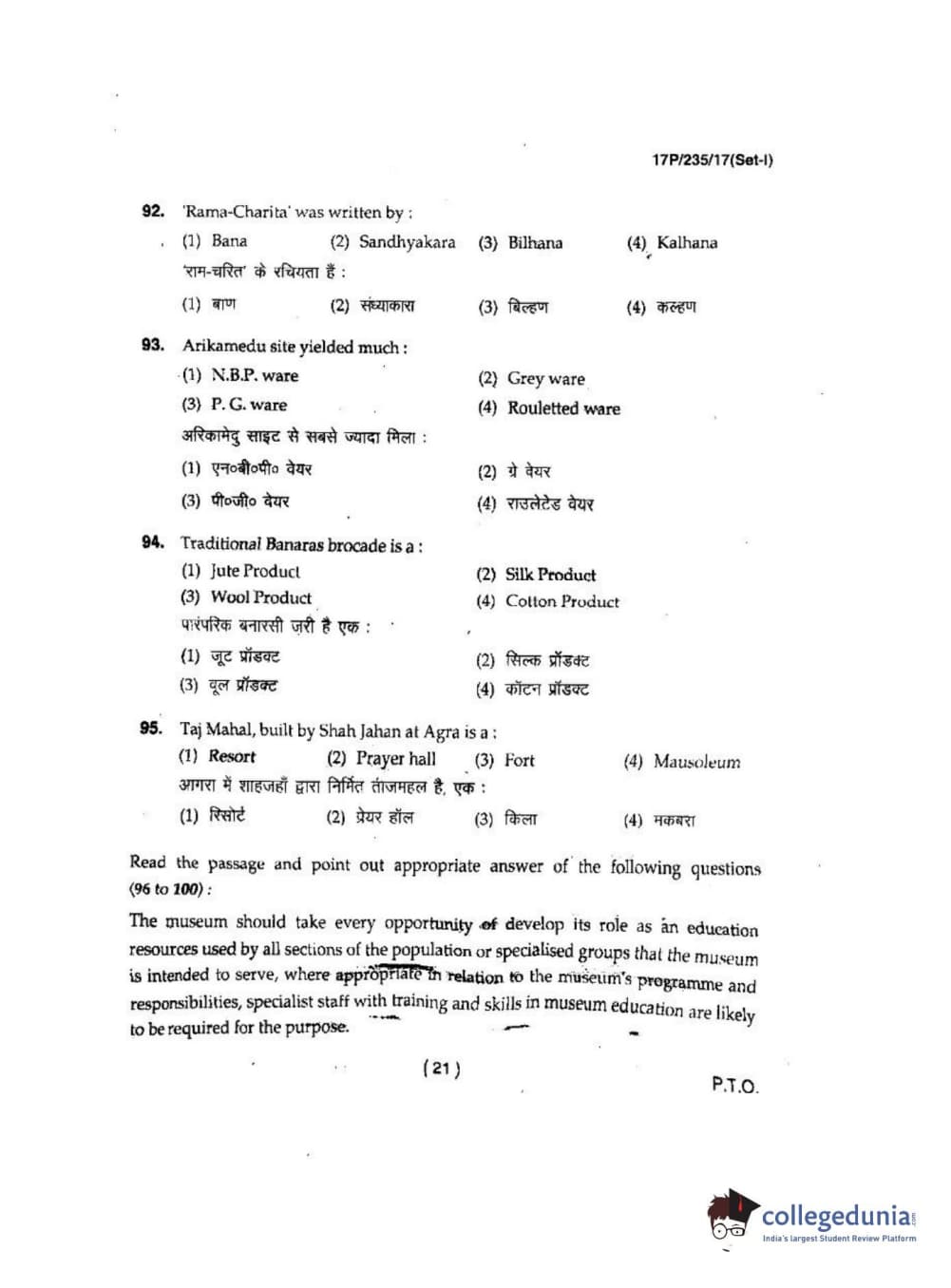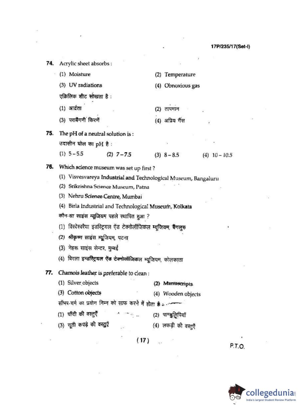 BHU PET 2017 M.A Museology Question paper with answer key pdf is available for download. The exam was successfully organized by Banaras Hindu University (BHU). The question paper comprised a total of 120 questions.