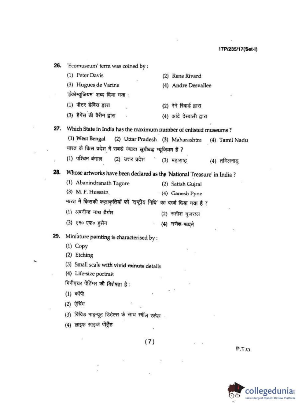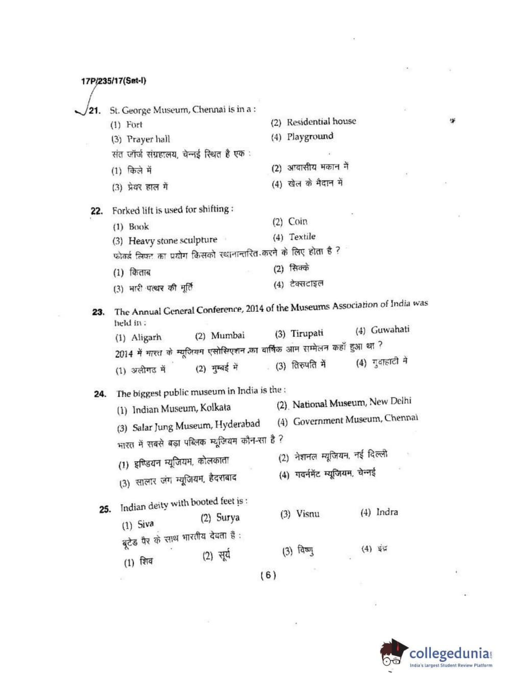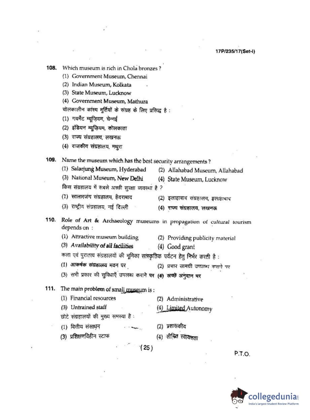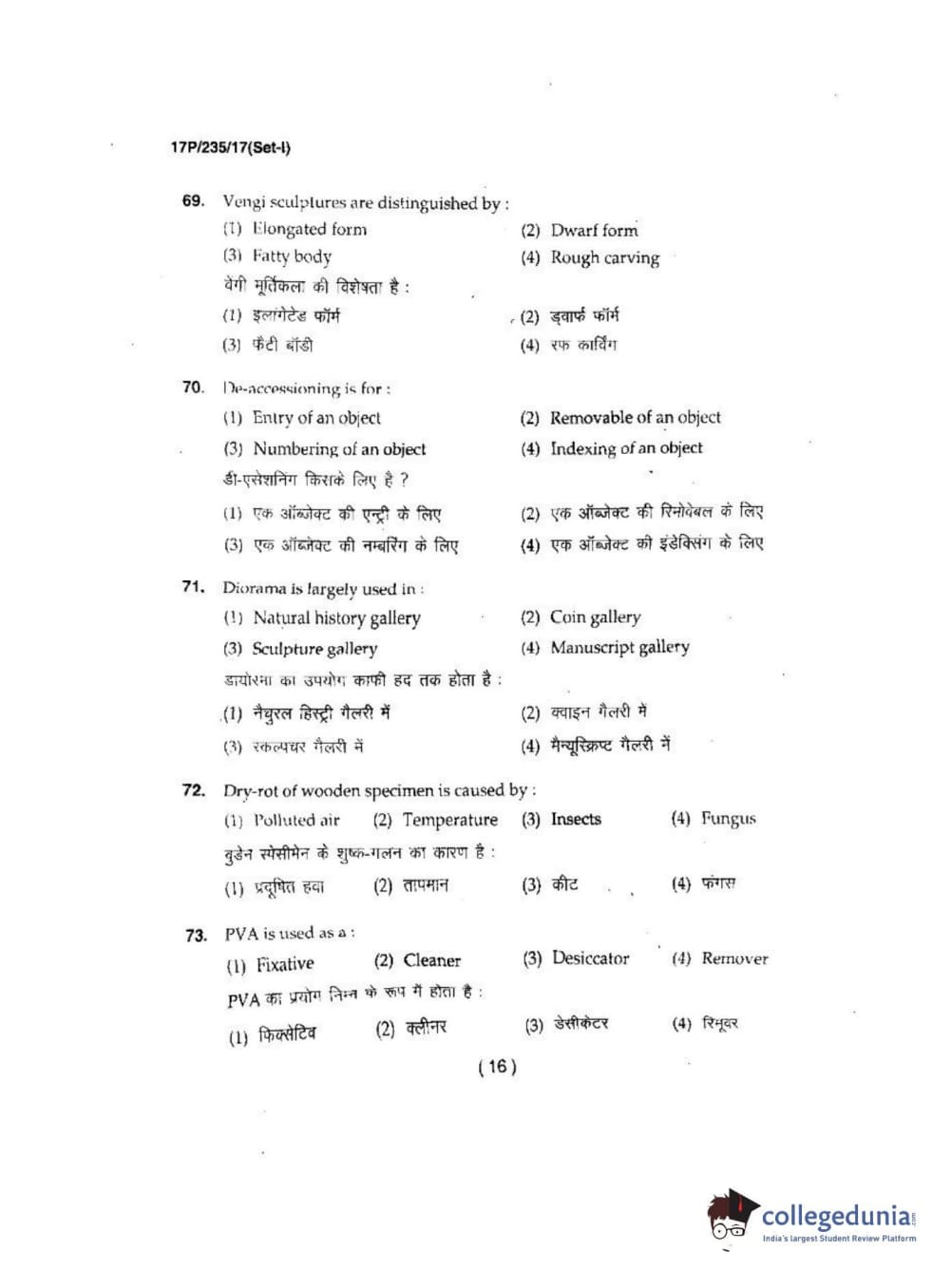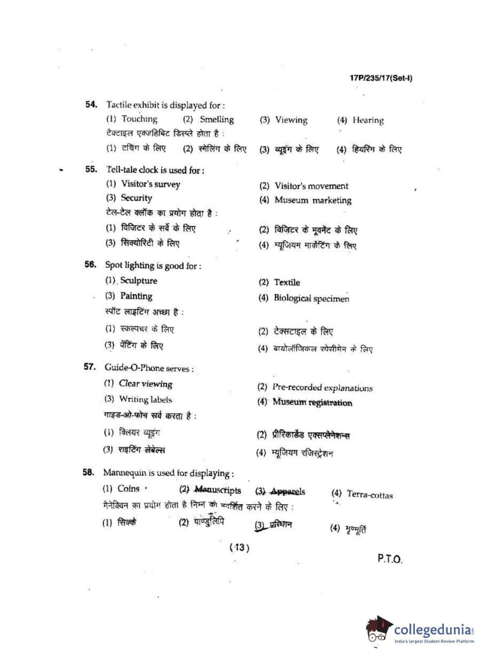 BHU PET 2017 M.A Museology Question Paper with Answer Key PDFs