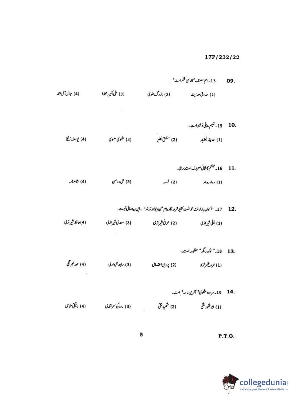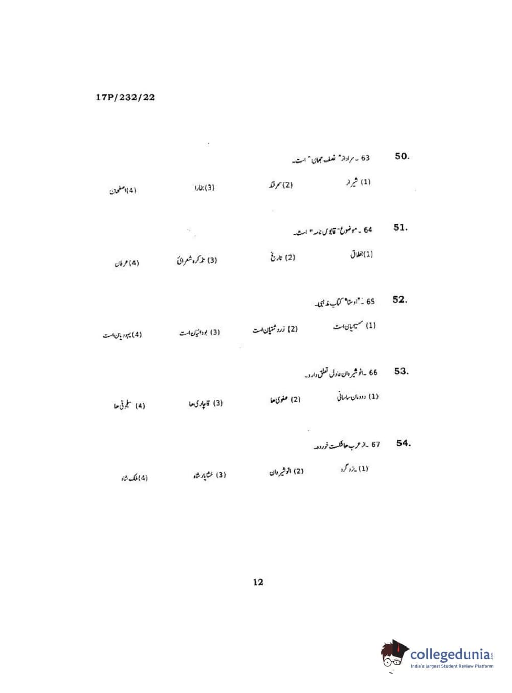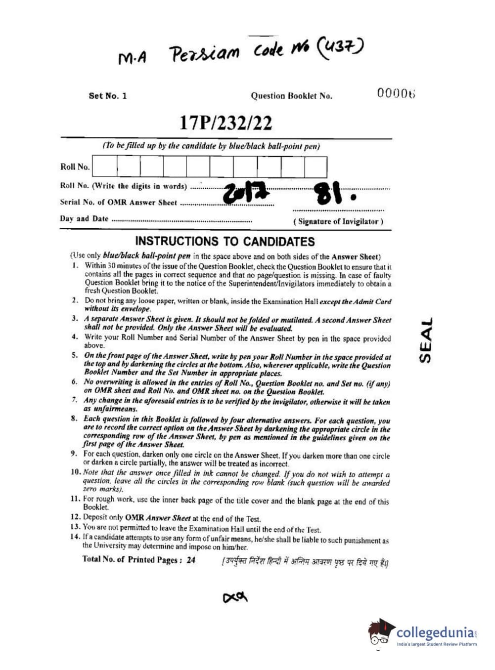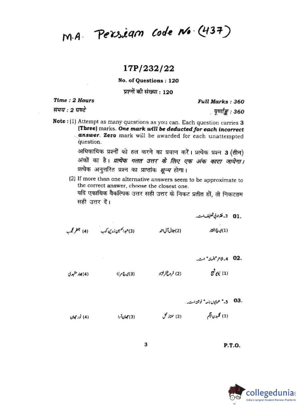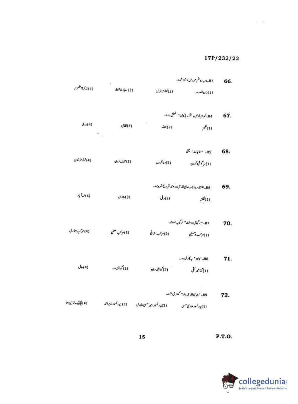BHU PET 2017 M.A. Persian Question Paper with Answer Key PDFs