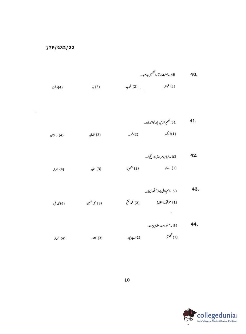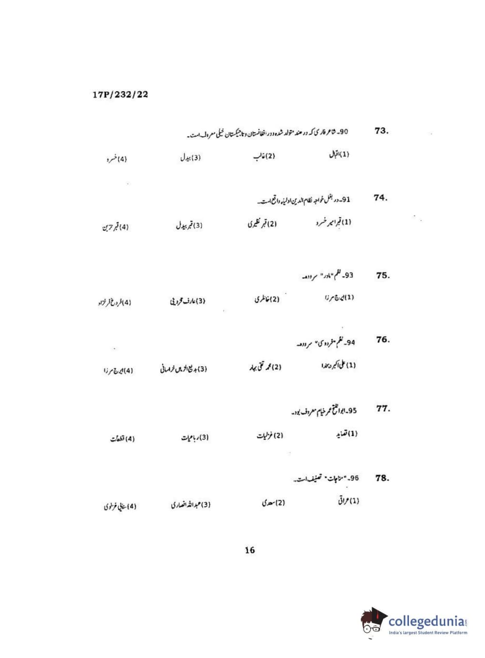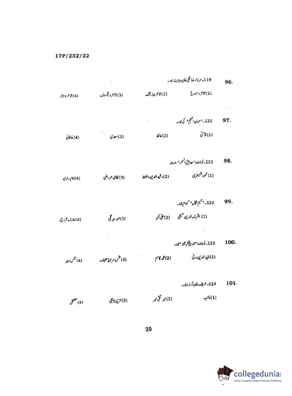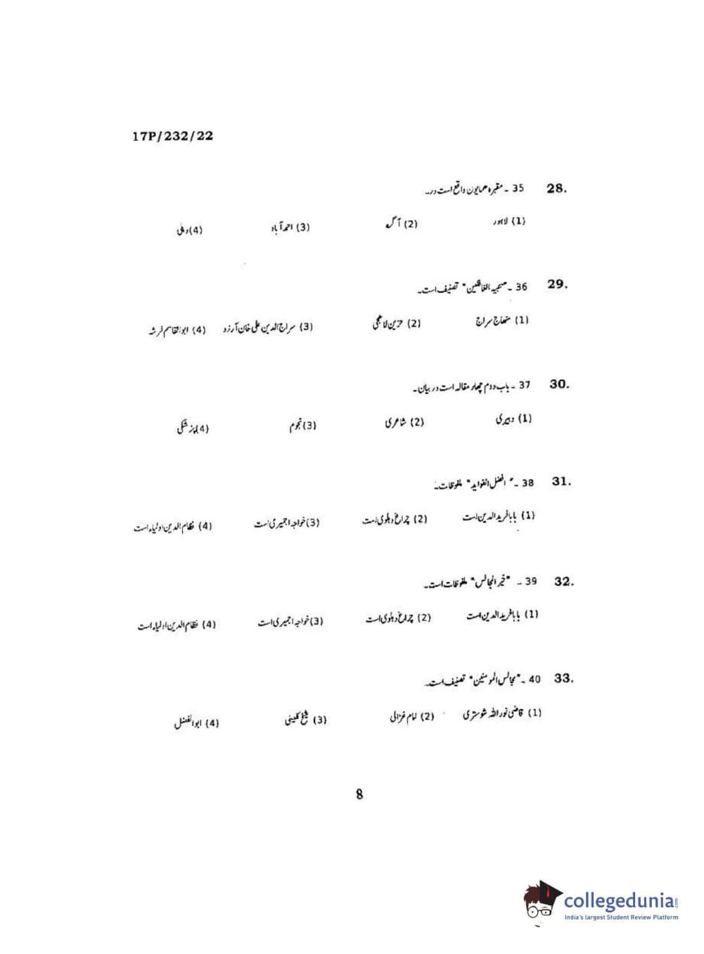 BHU PET 2017 M.A. Persian Question Paper with Answer Key PDFs