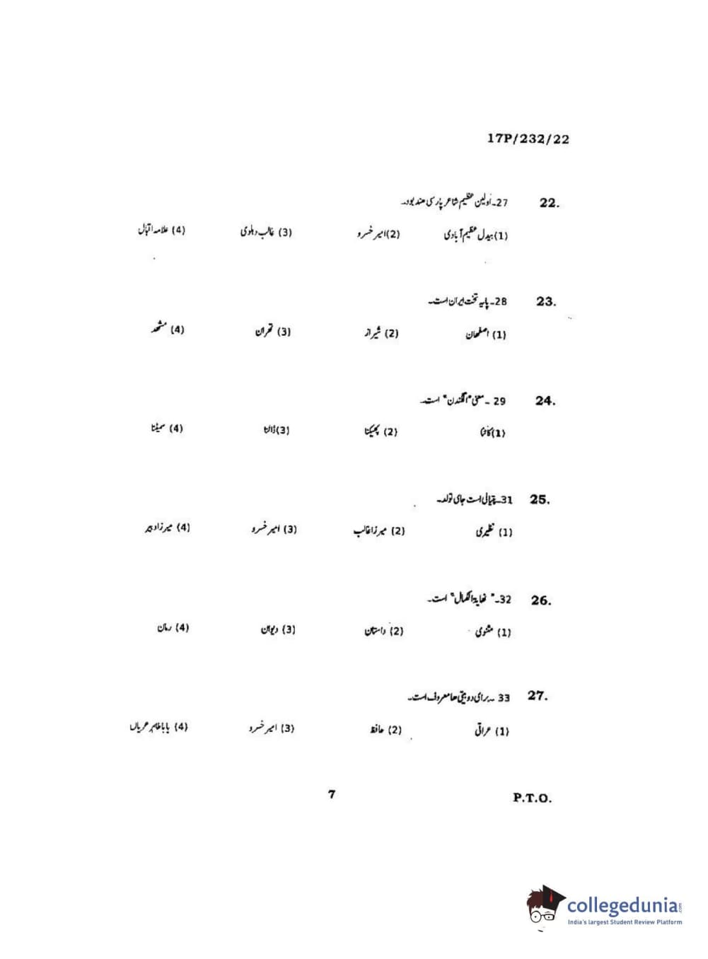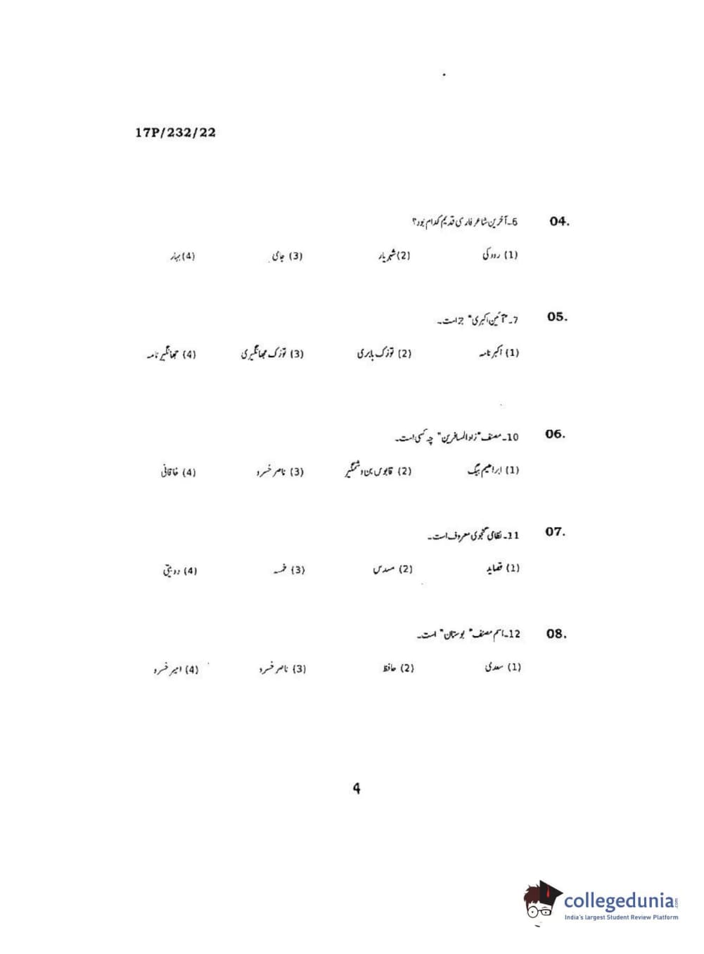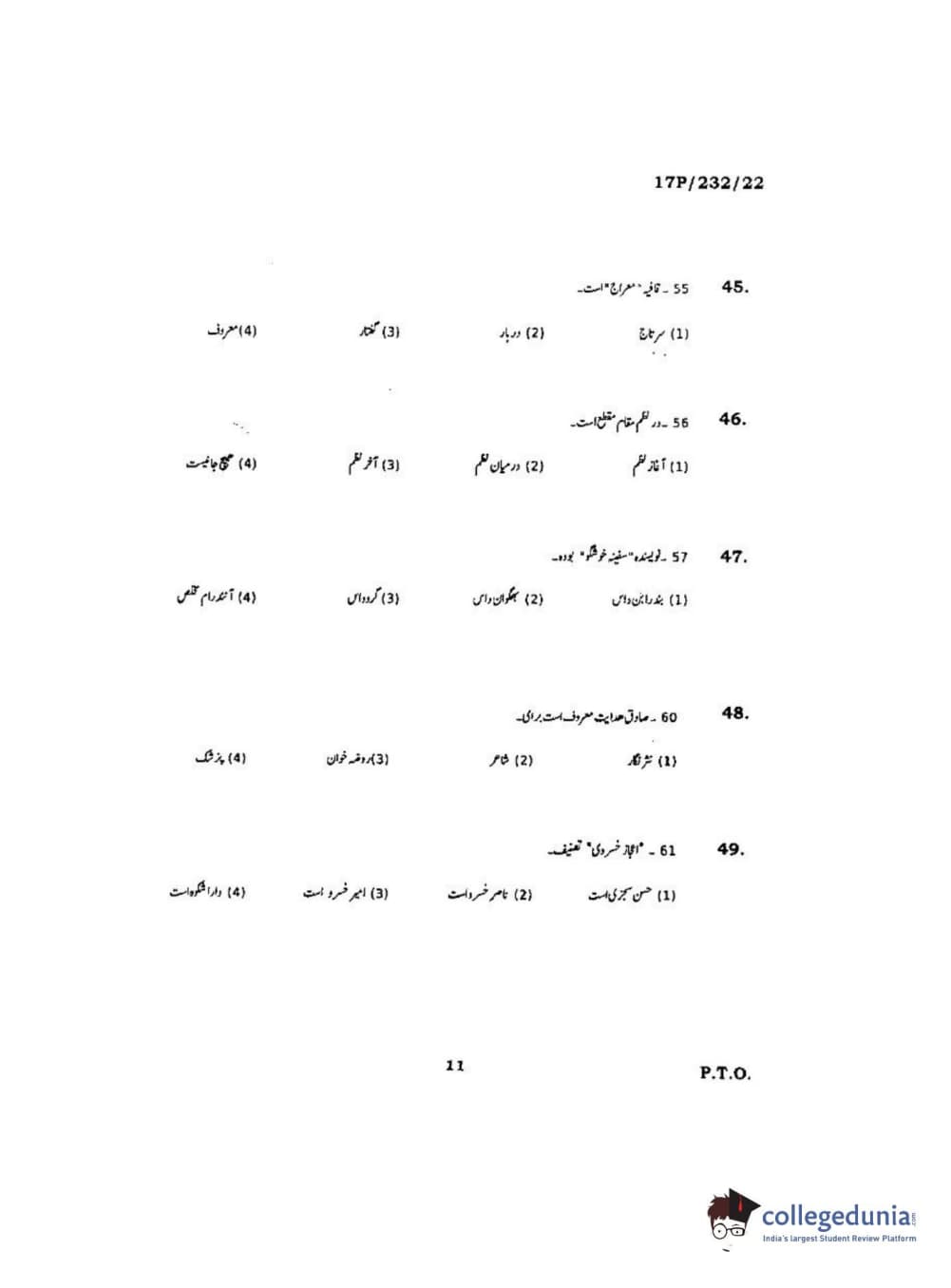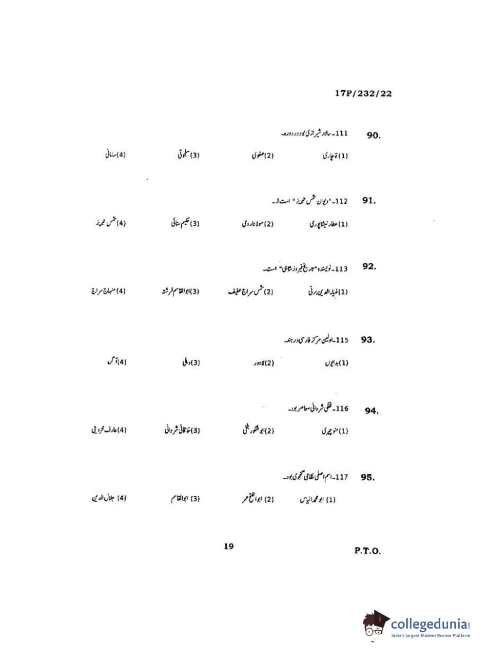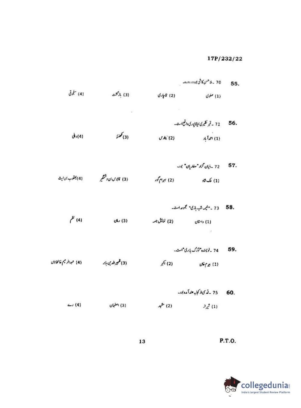 BHU PET 2017 M.A. Persian Question Paper with Answer Key PDFs