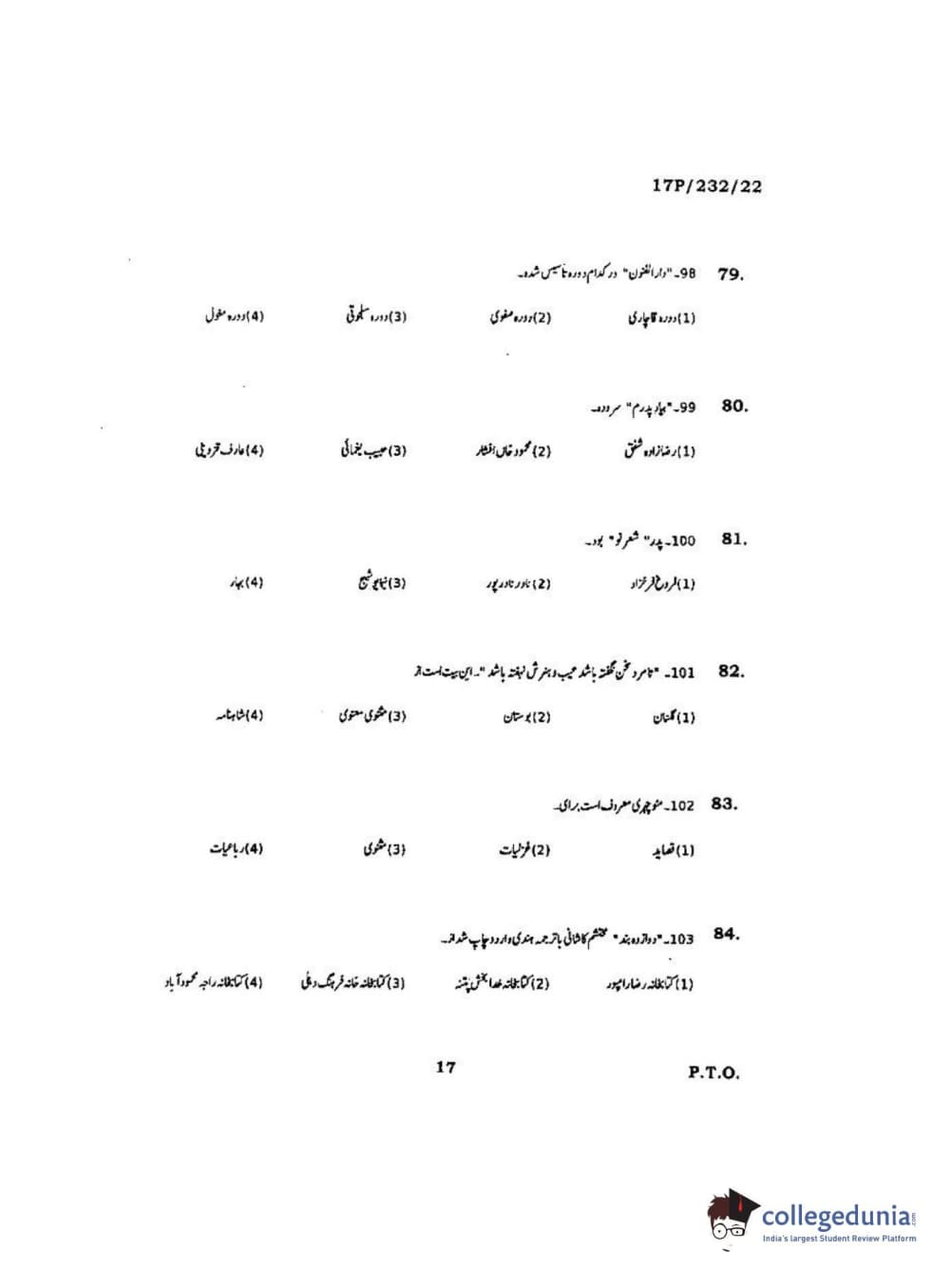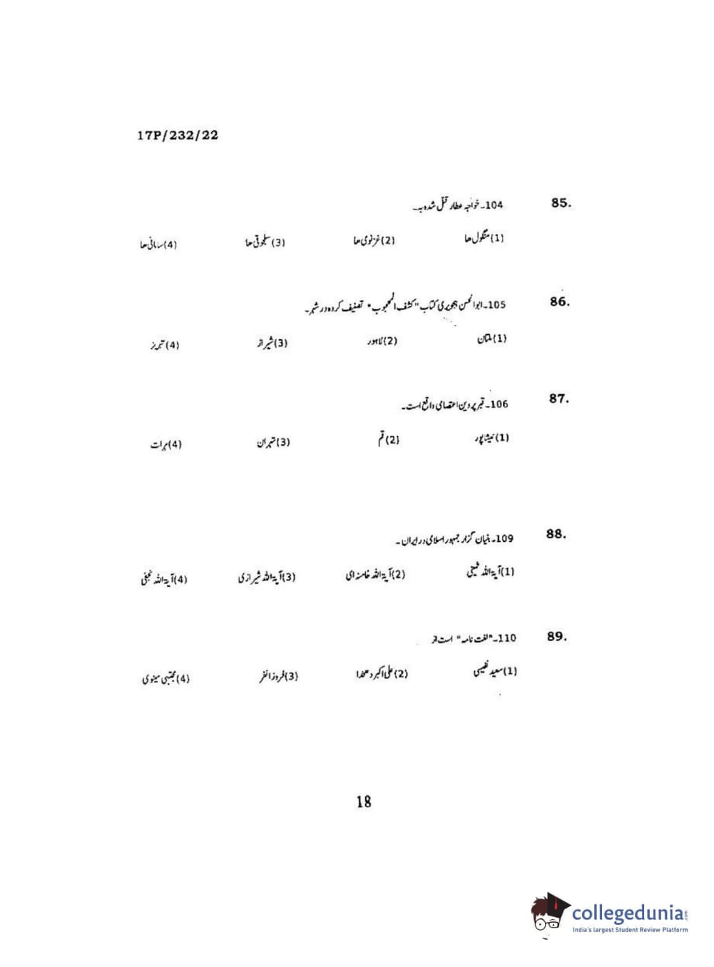 | BHU PET 2017 M.A. Persian Question Paper PDF | BHU PET 2017 M.A. Persian Answer Key PDF |