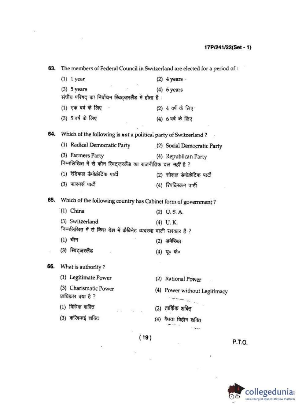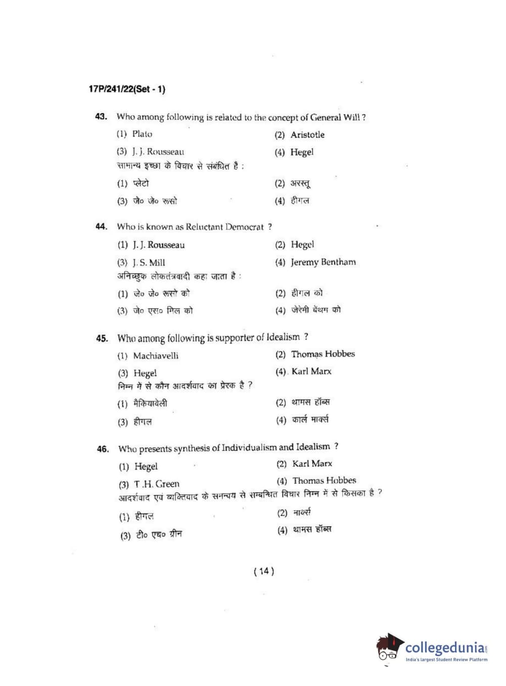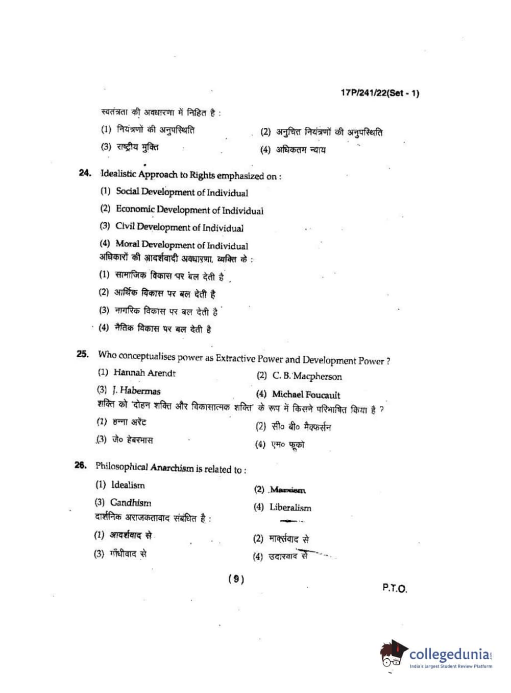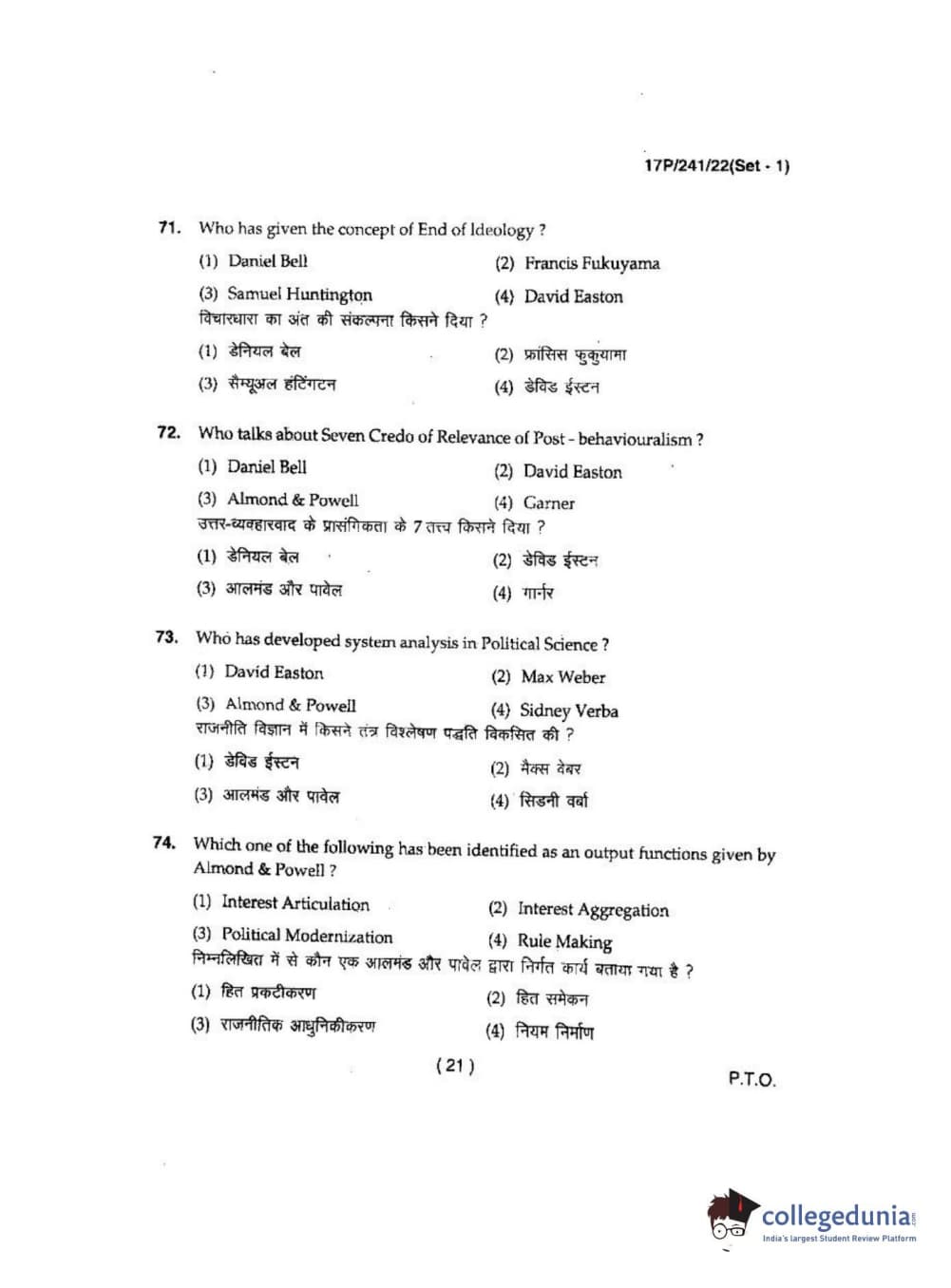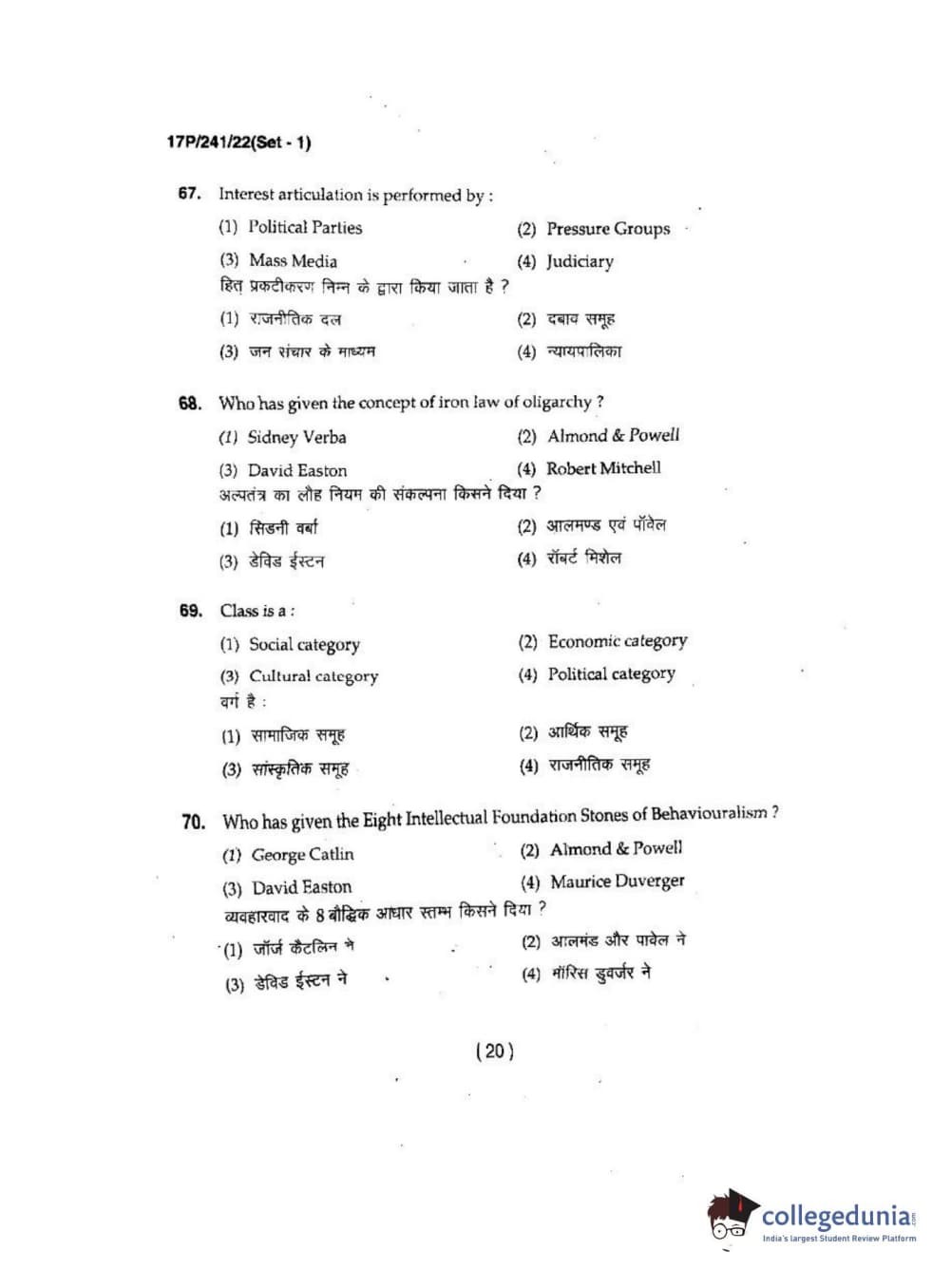 BHU PET 2017 M.A Political Science Question Paper with Answer Key PDFs