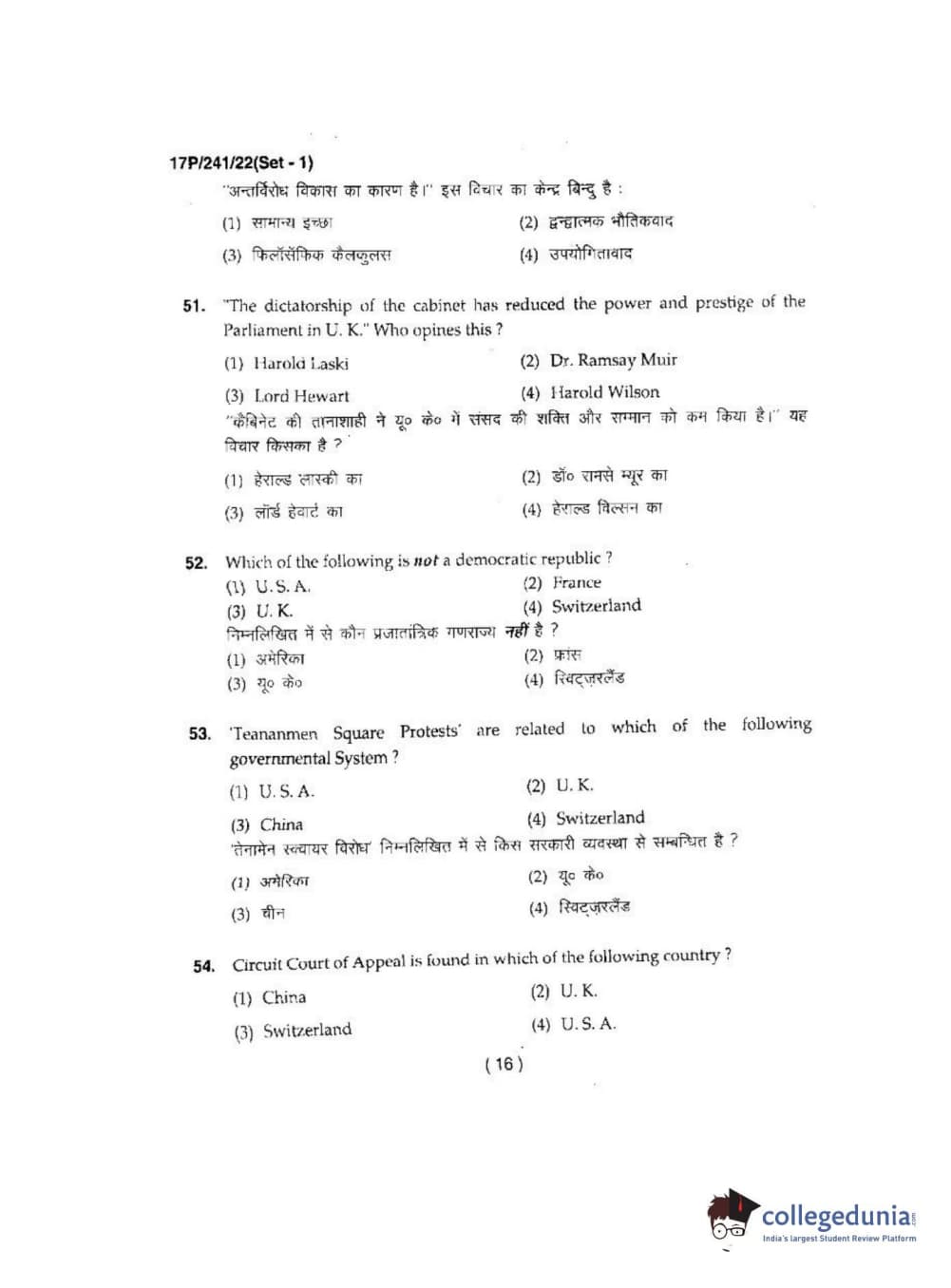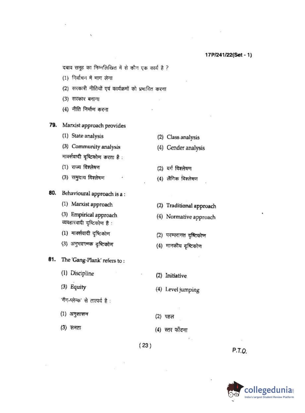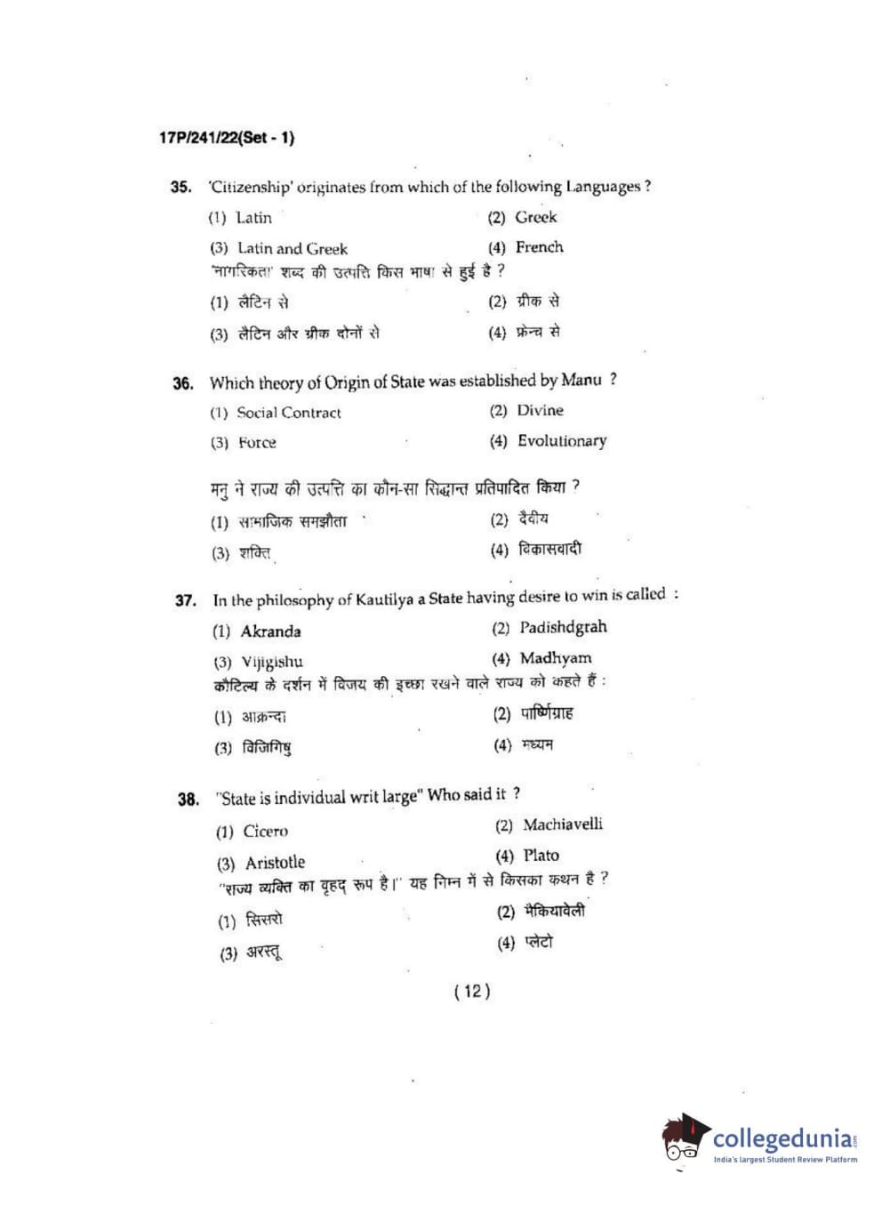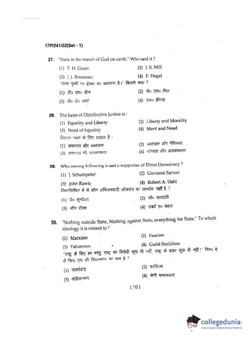 BHU PET 2017 M.A Political Science Question Paper with Answer Key PDFs