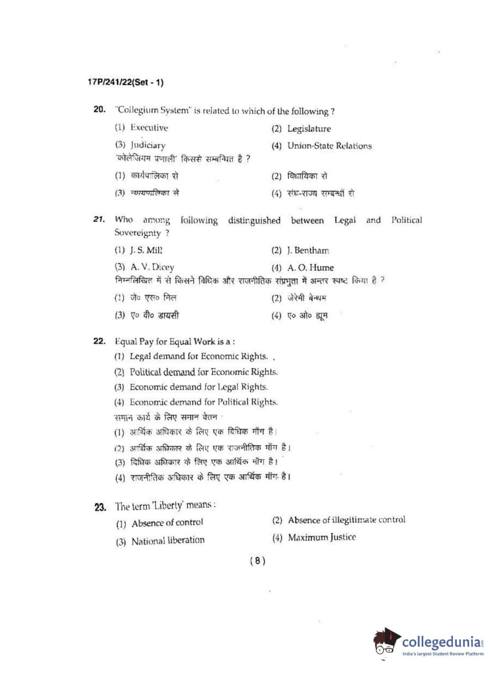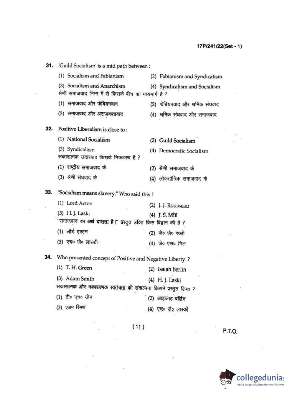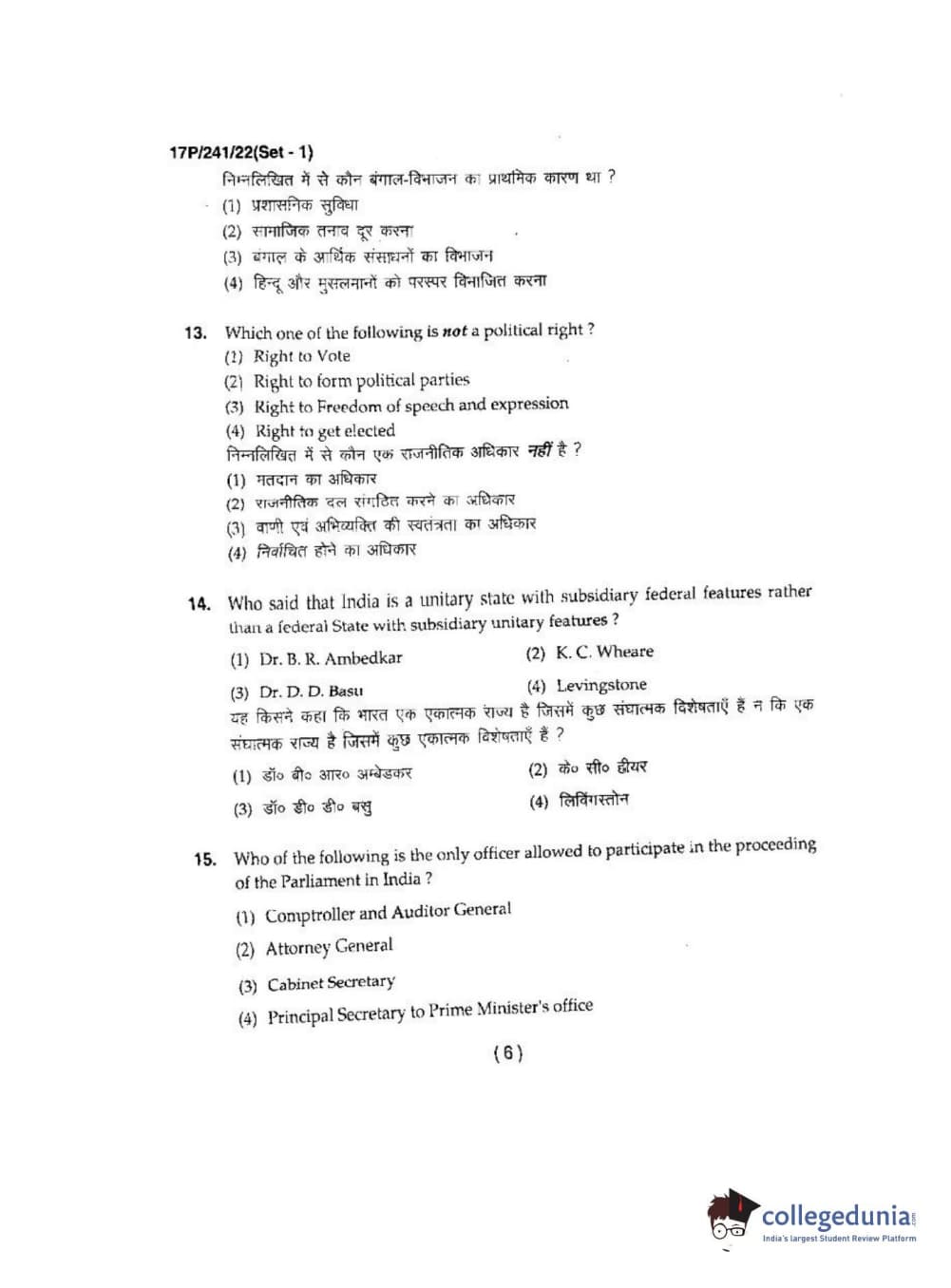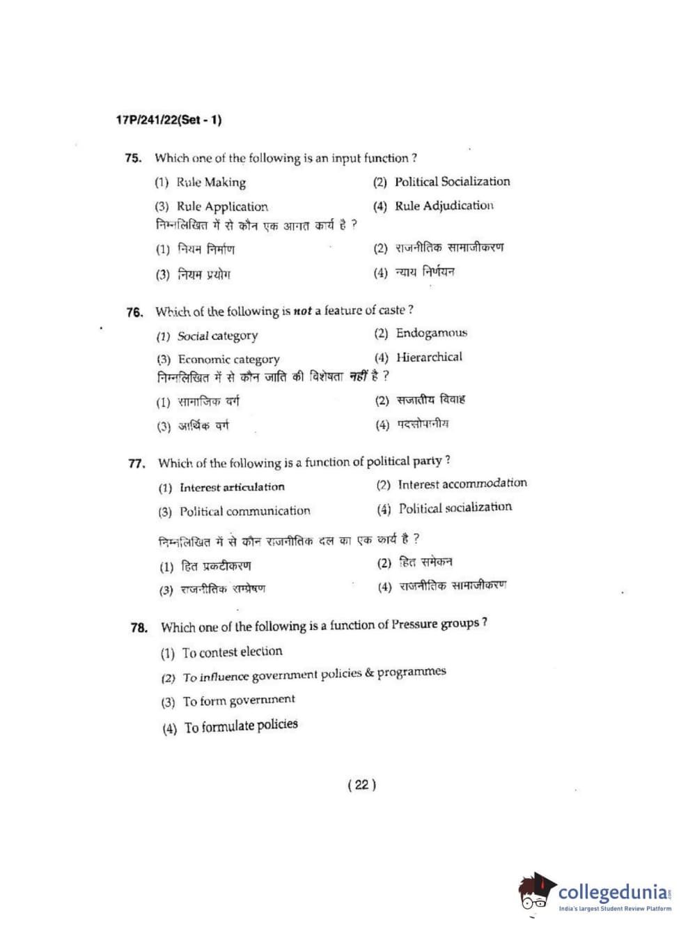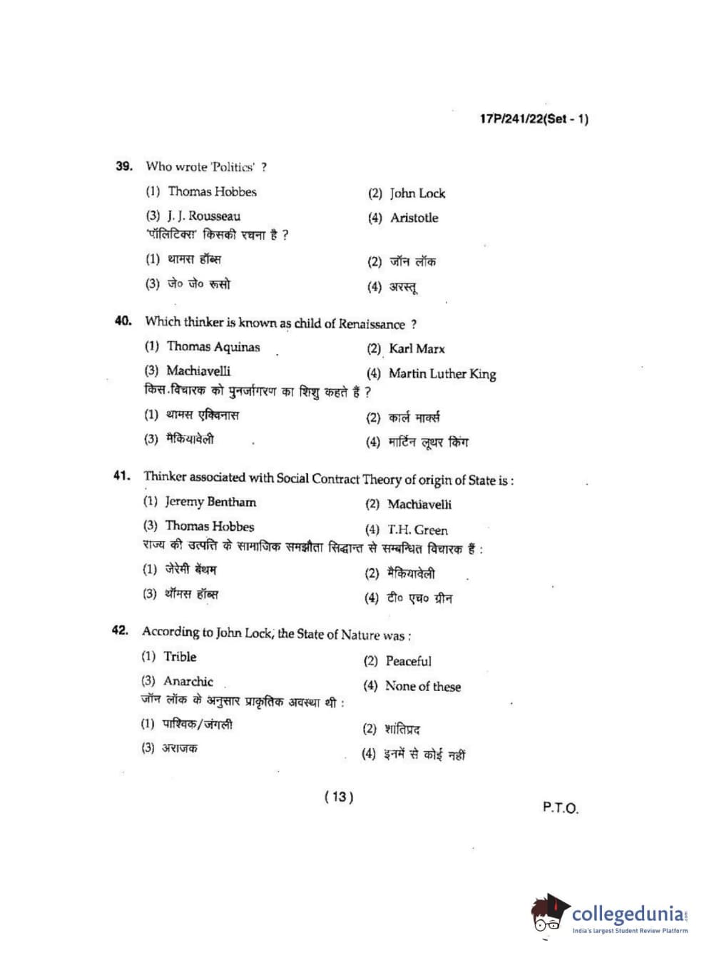 BHU PET 2017 M.A Political Science Question Paper with Answer Key PDFs