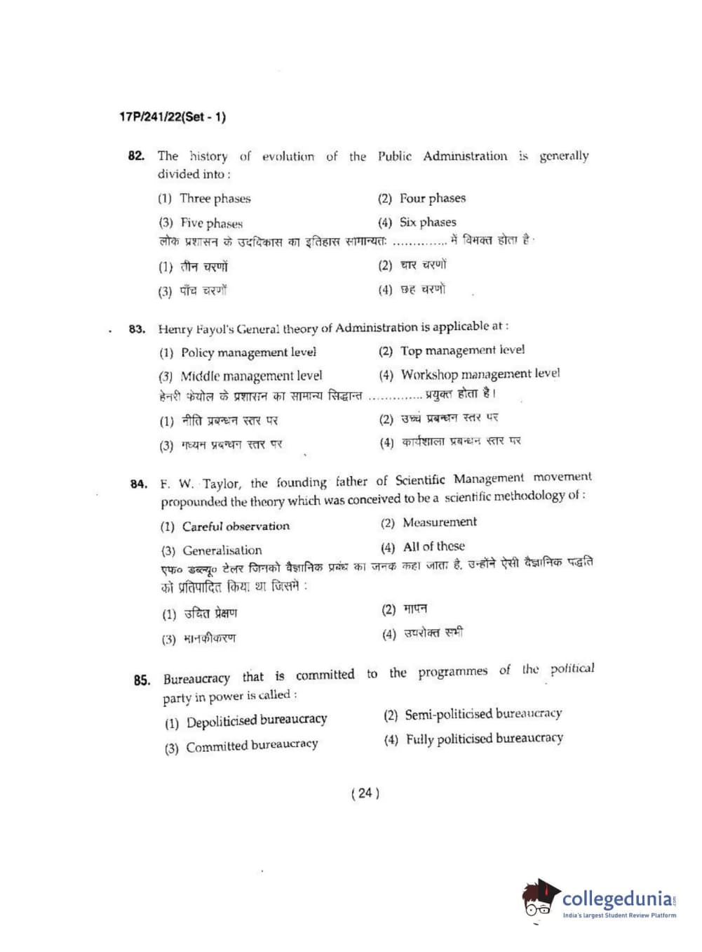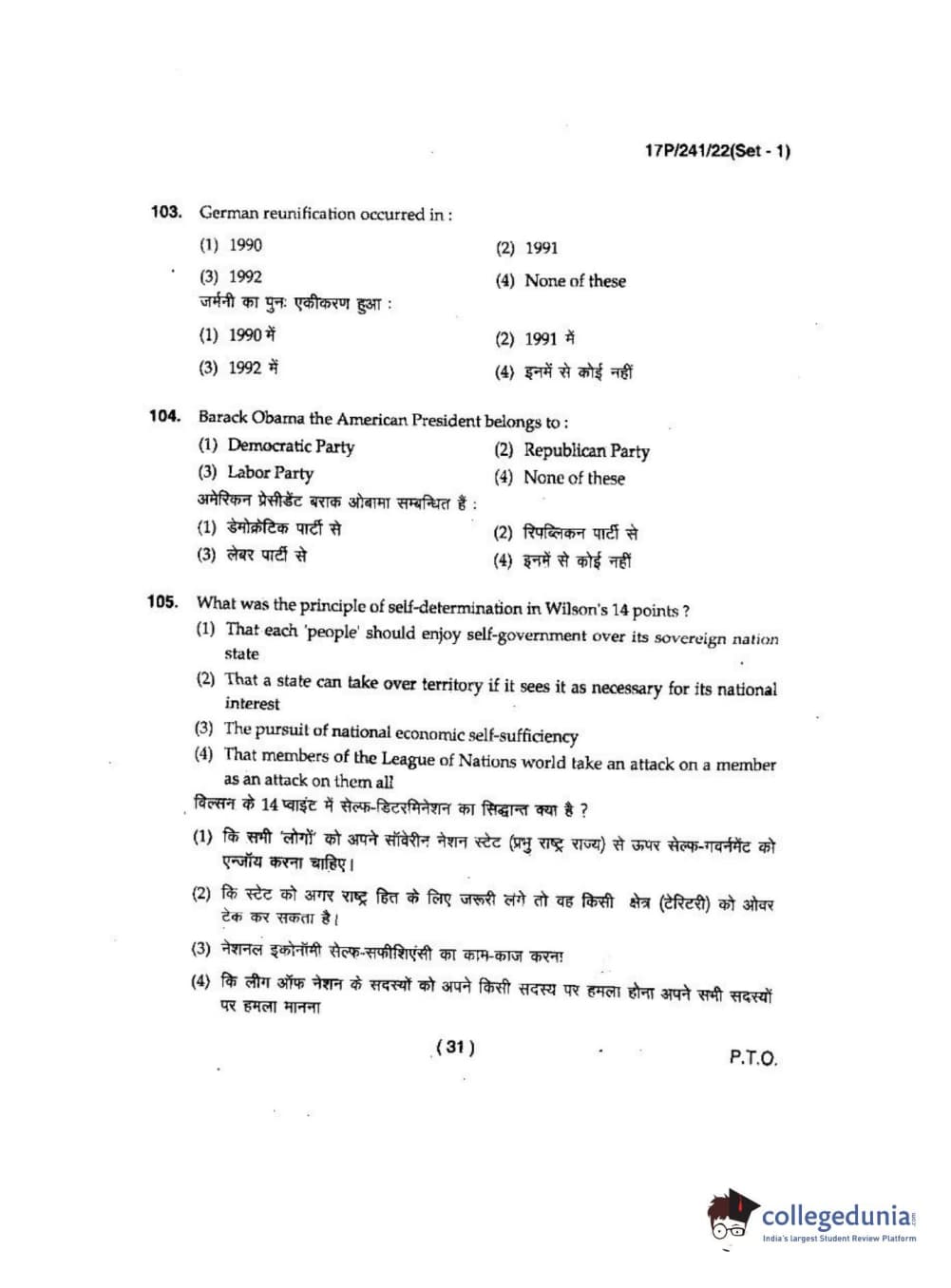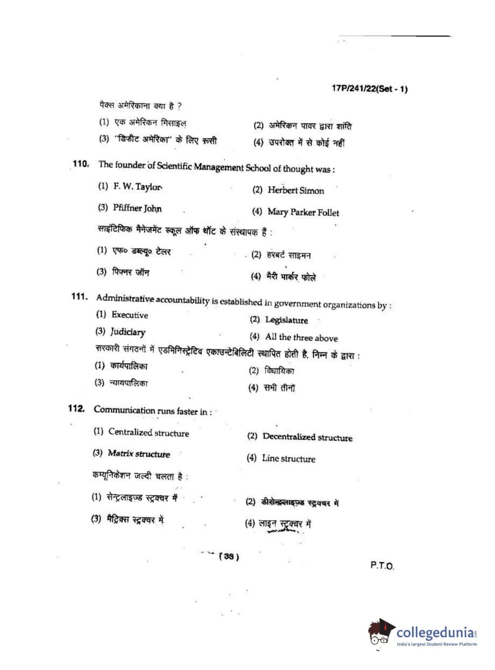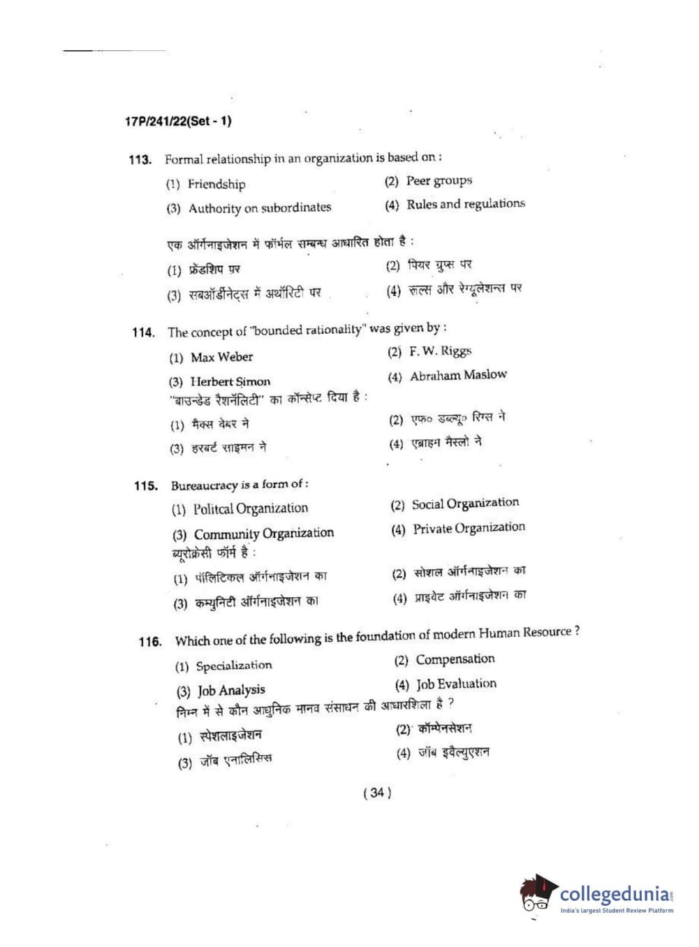 BHU PET 2017 M.A Political Science Question Paper with Answer Key PDFs