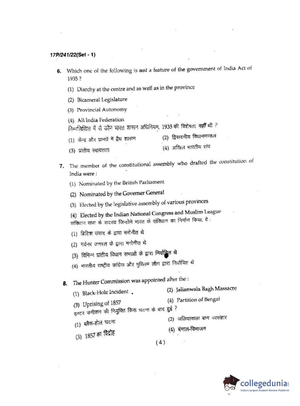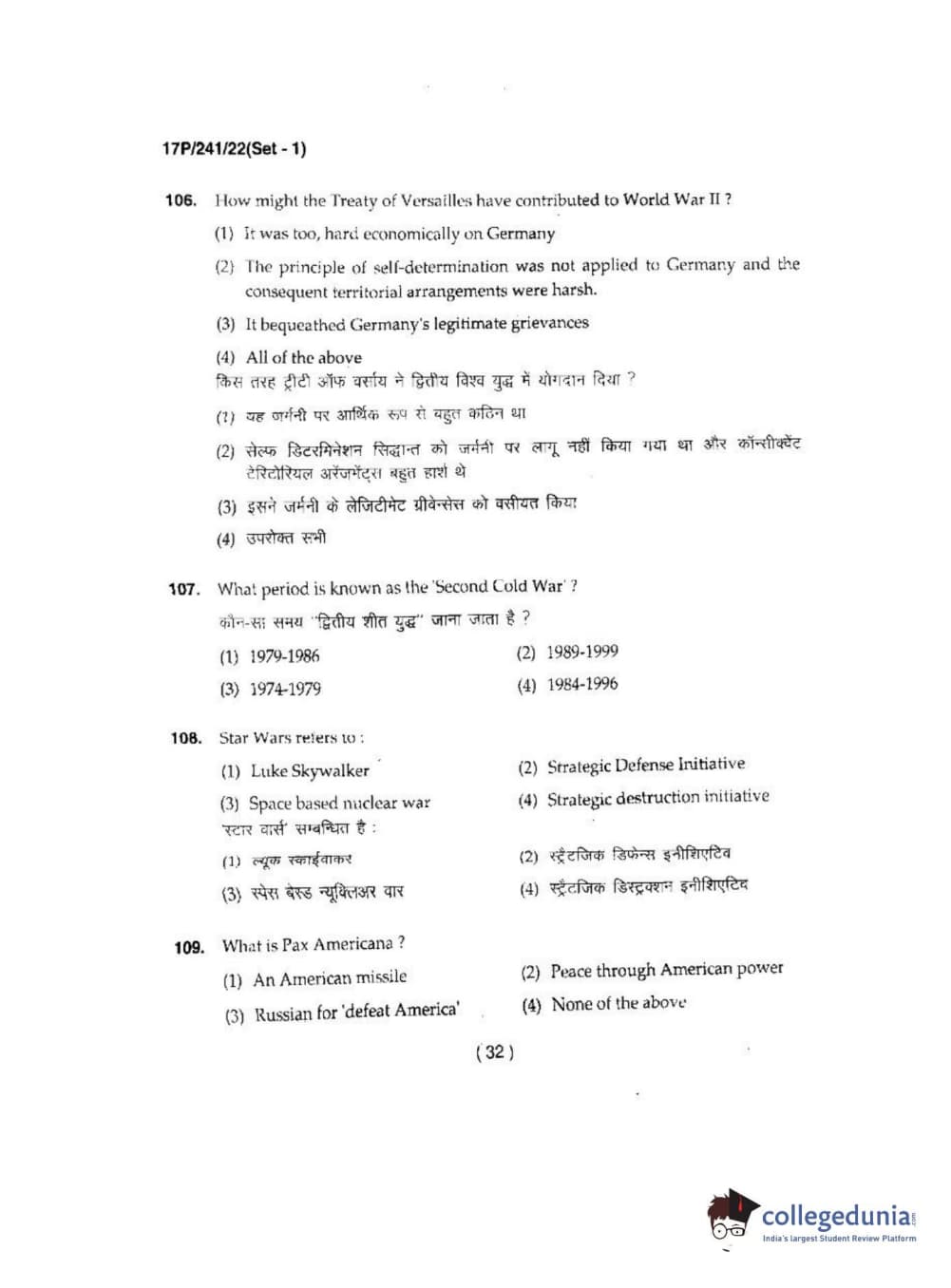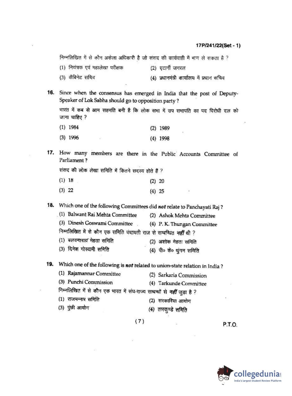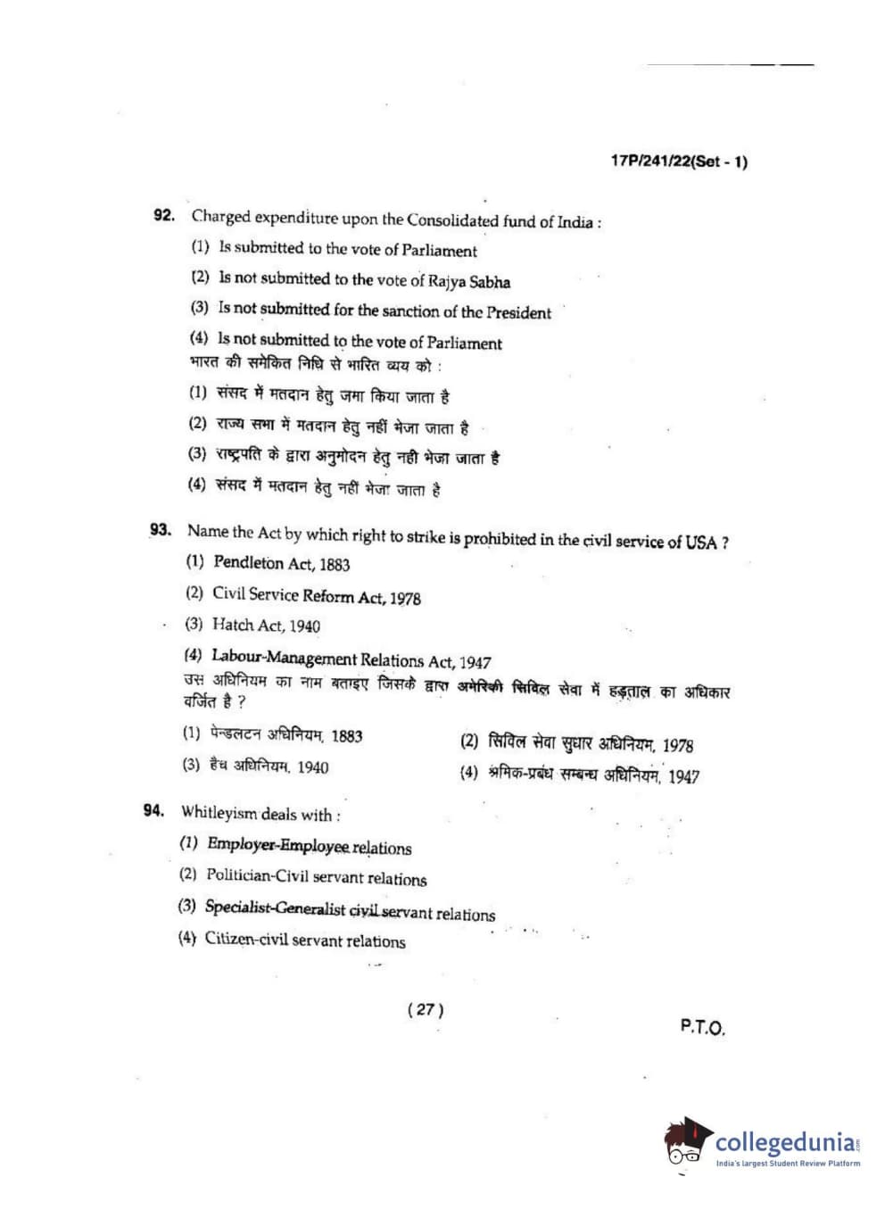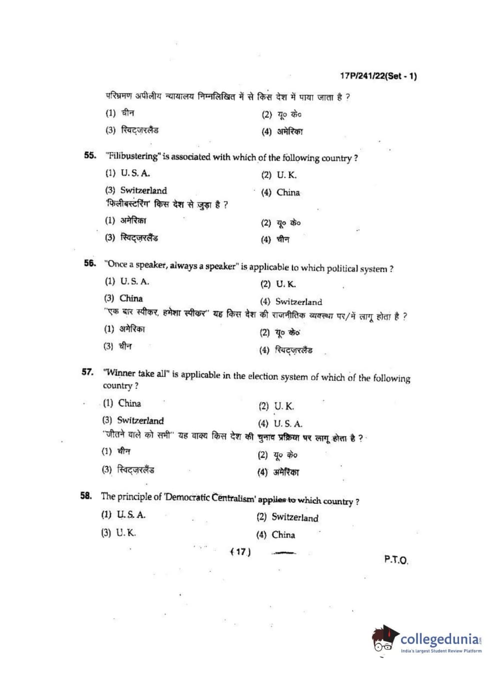 BHU PET 2017 M.A Political Science Question Paper with Answer Key PDFs