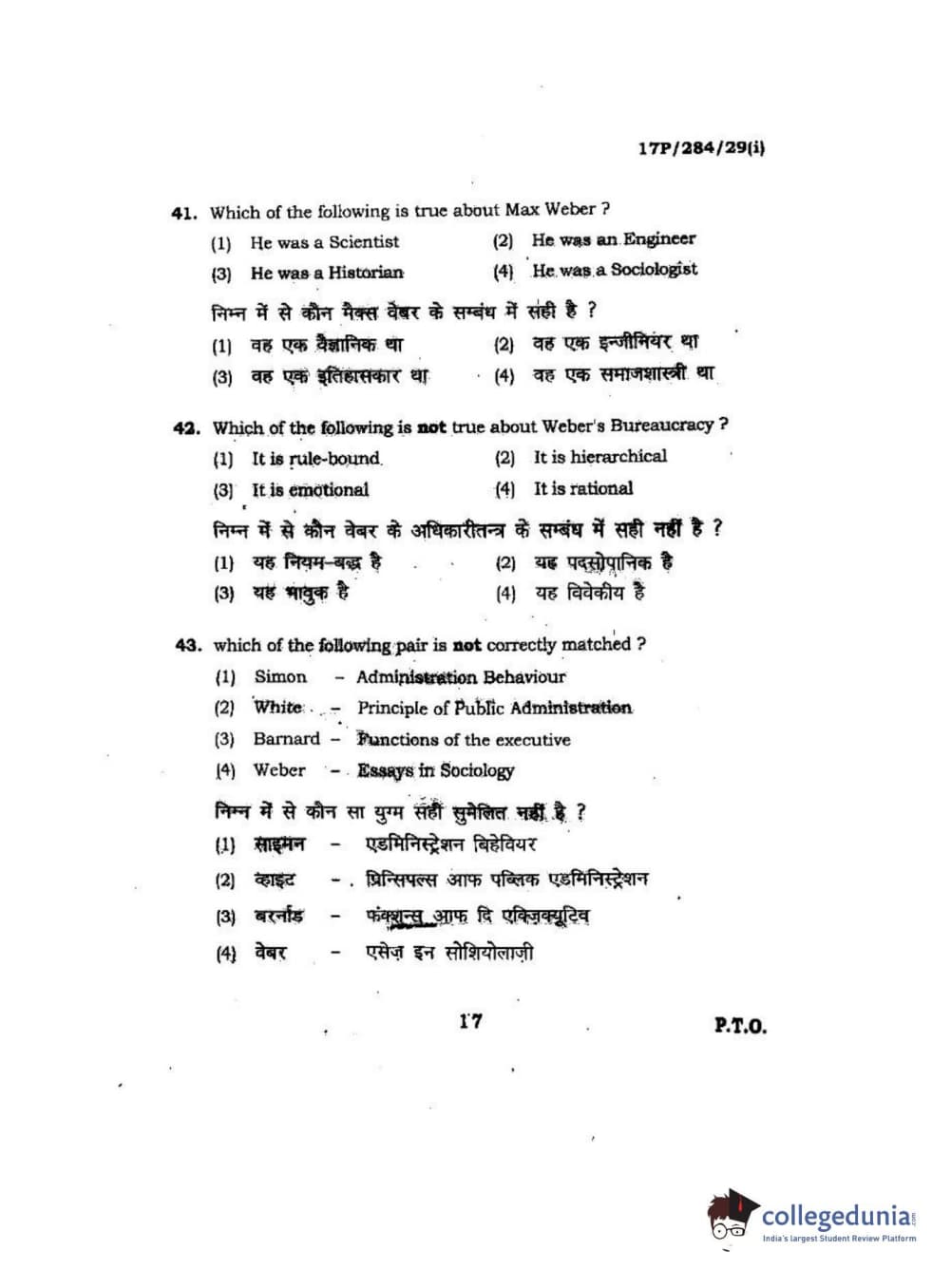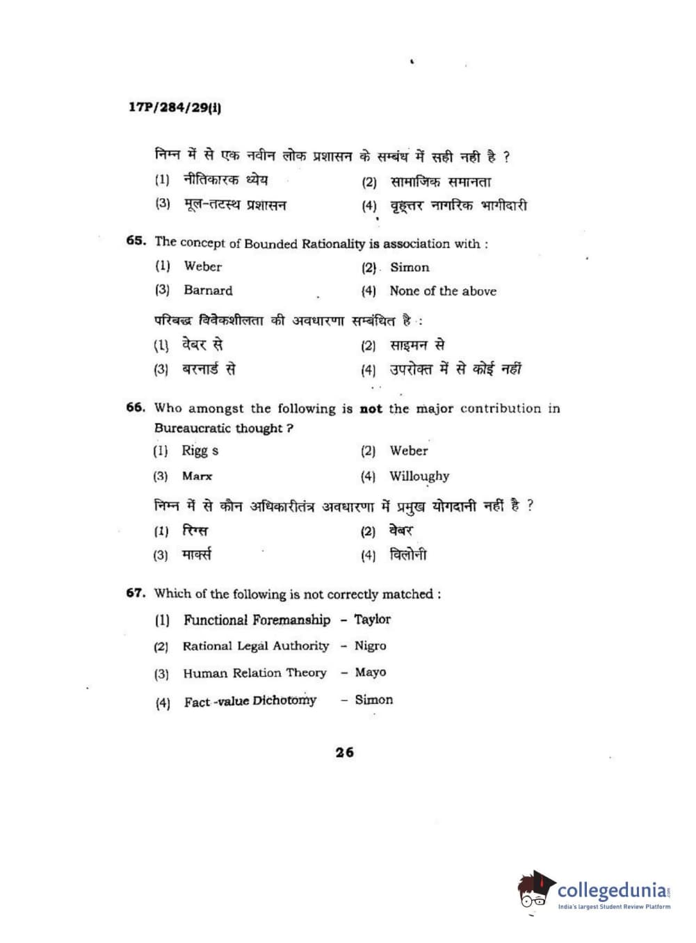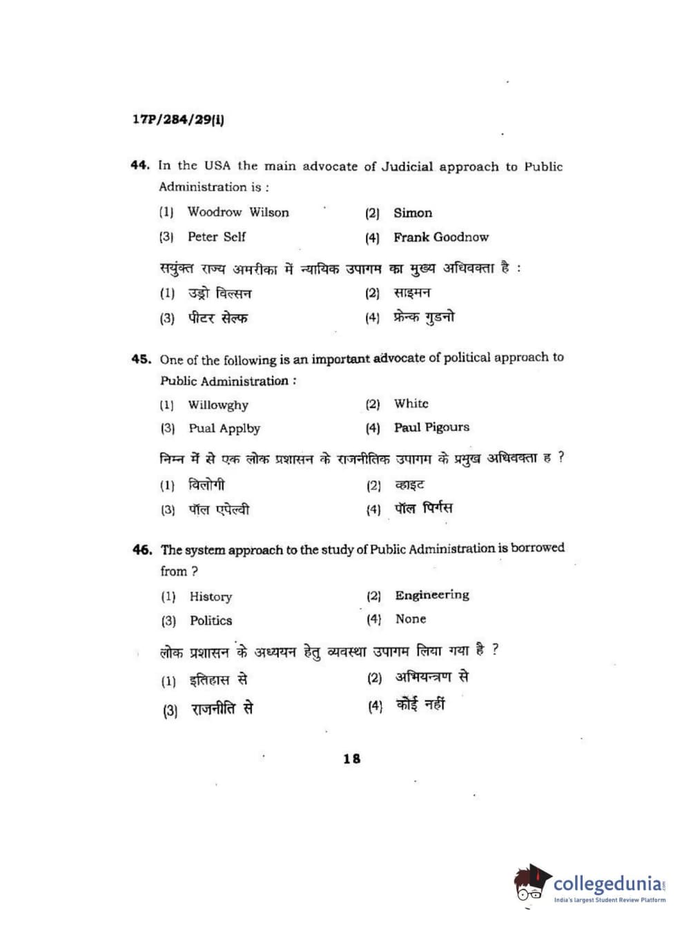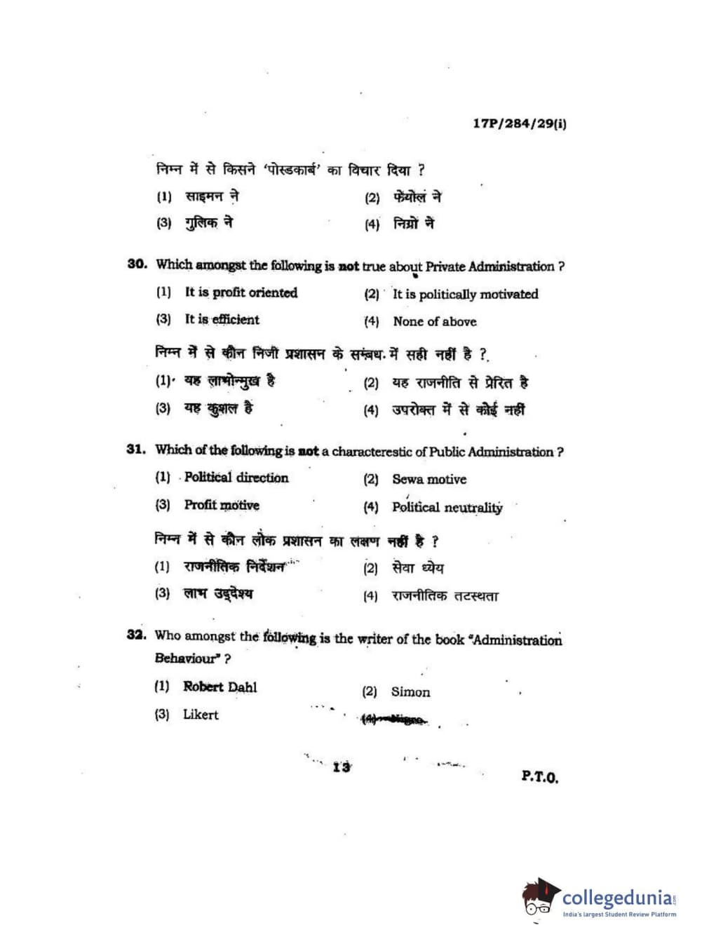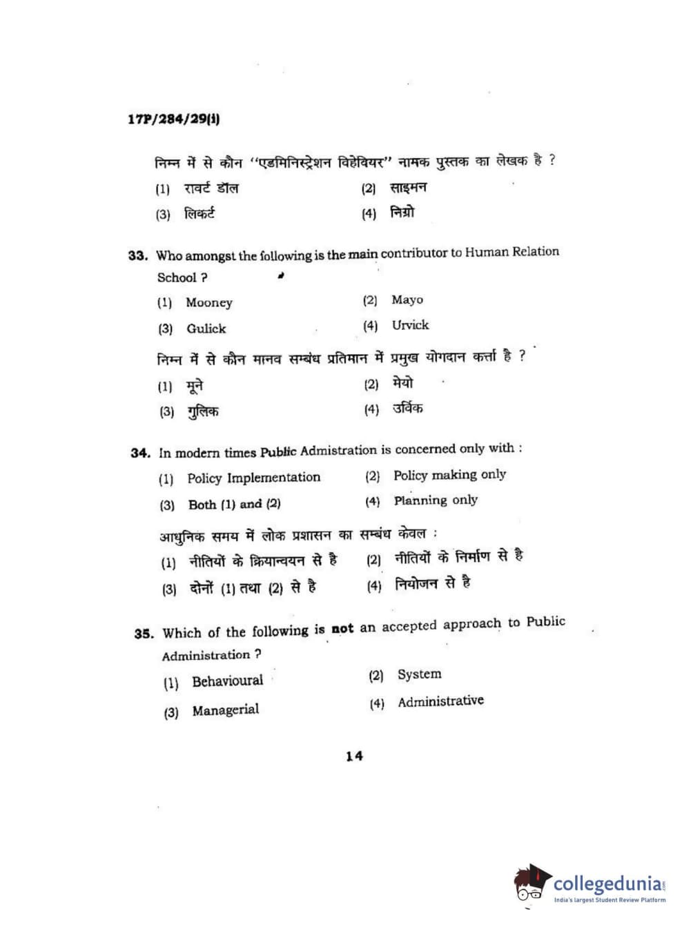 BHU PET 2017 M.A Public Administration Question Paper with Answer Key PDFs