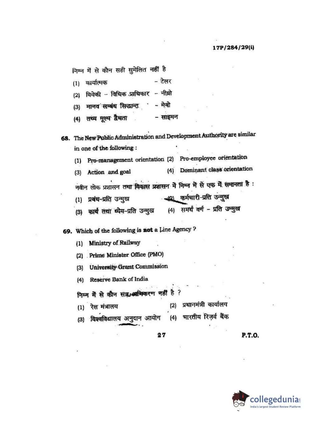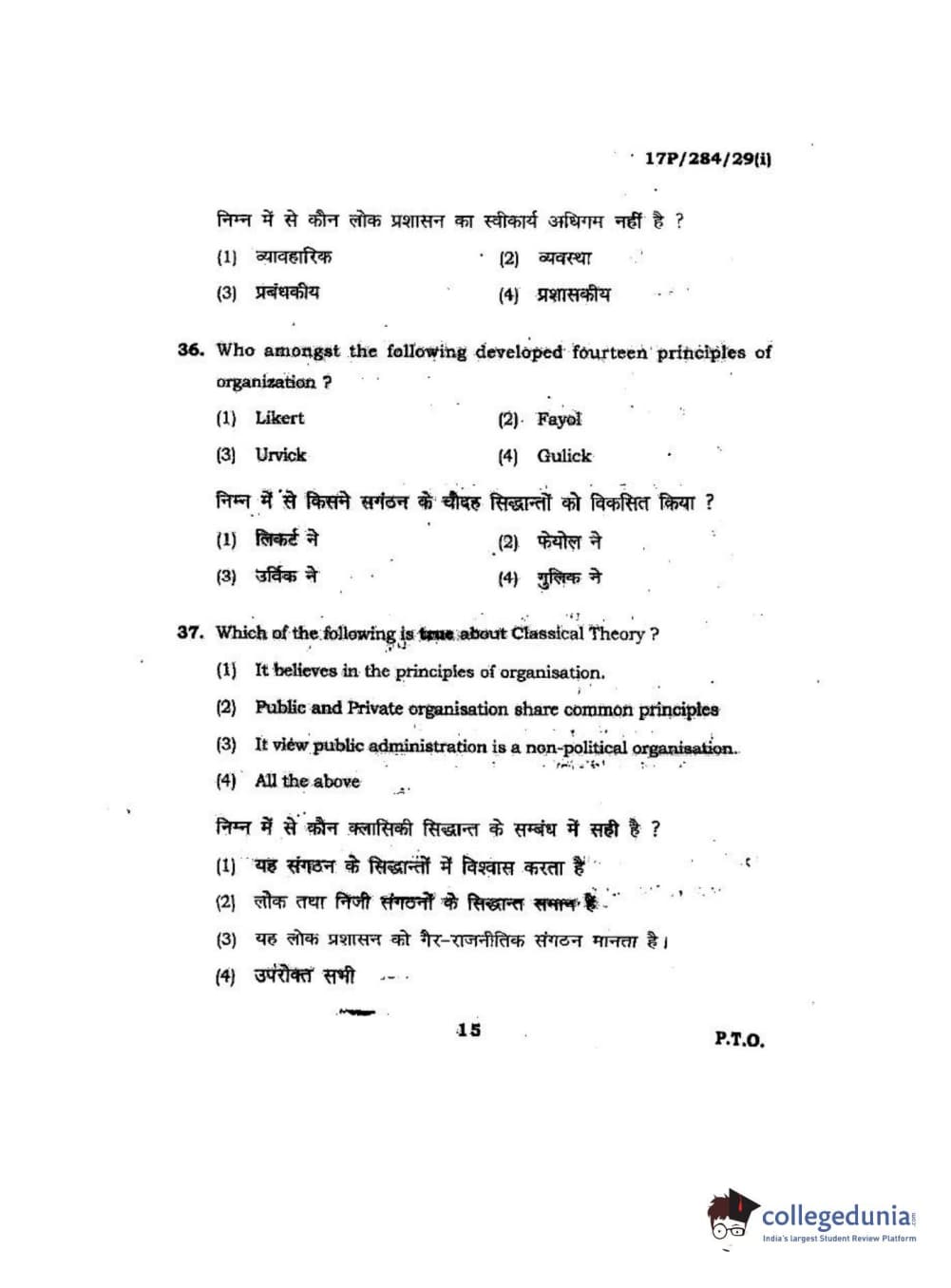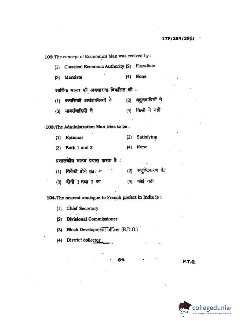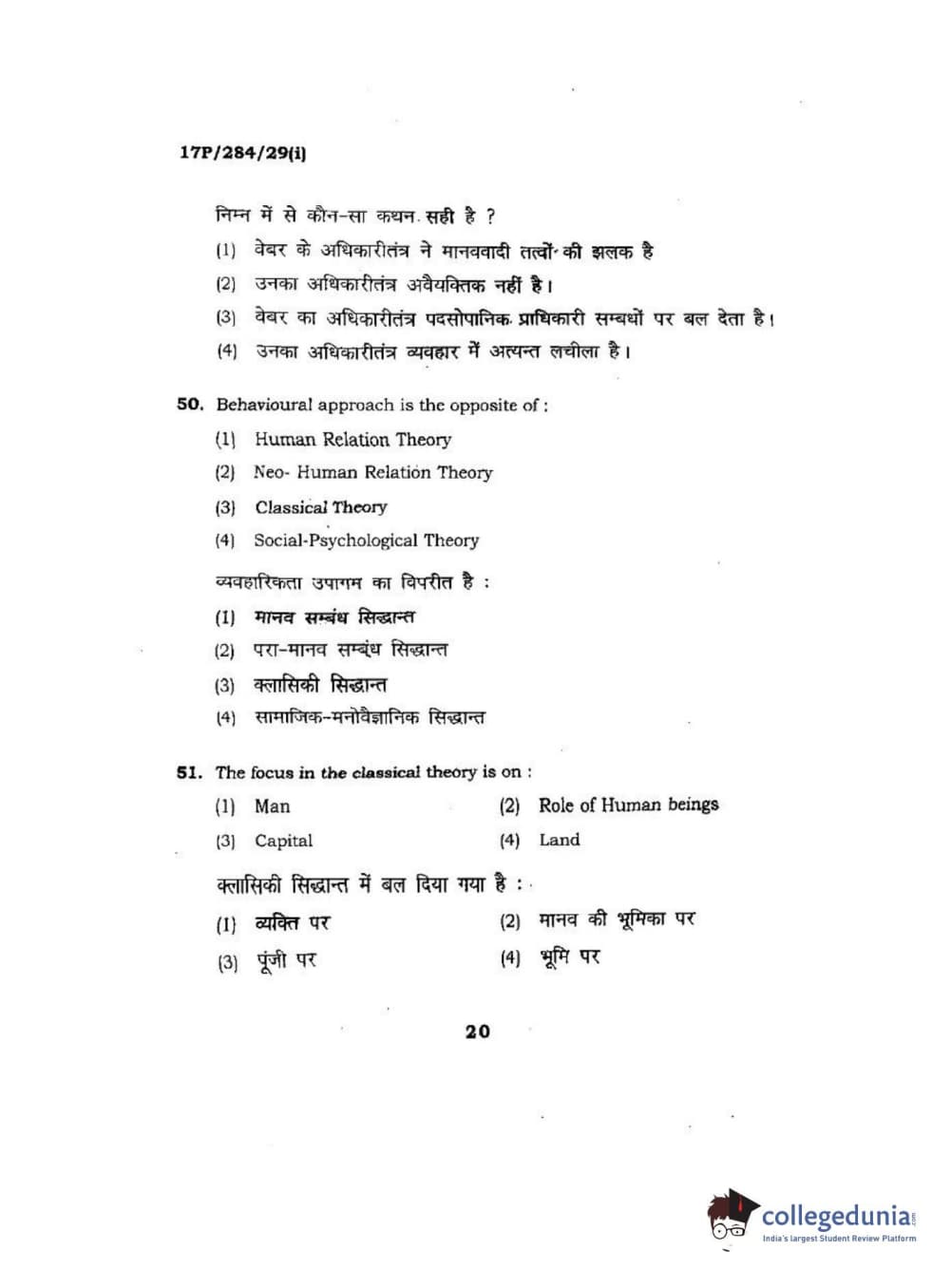 BHU PET 2017 M.A Public Administration Question Paper with Answer Key PDFs