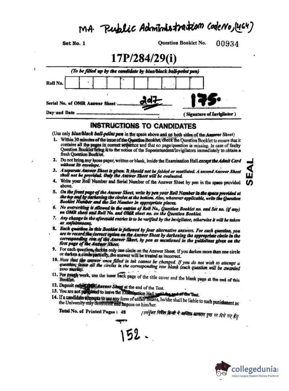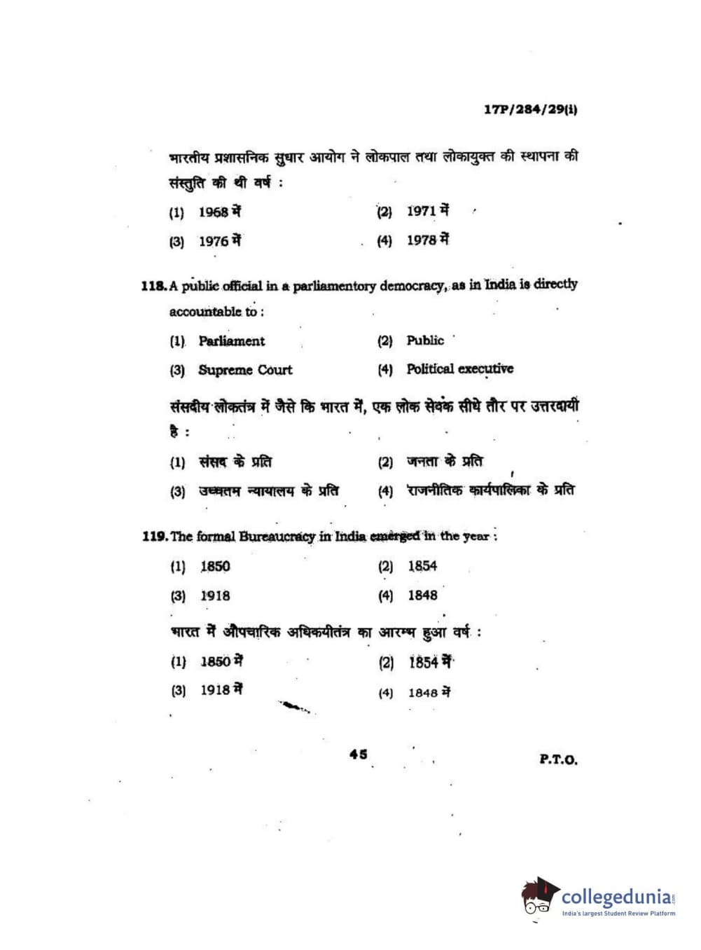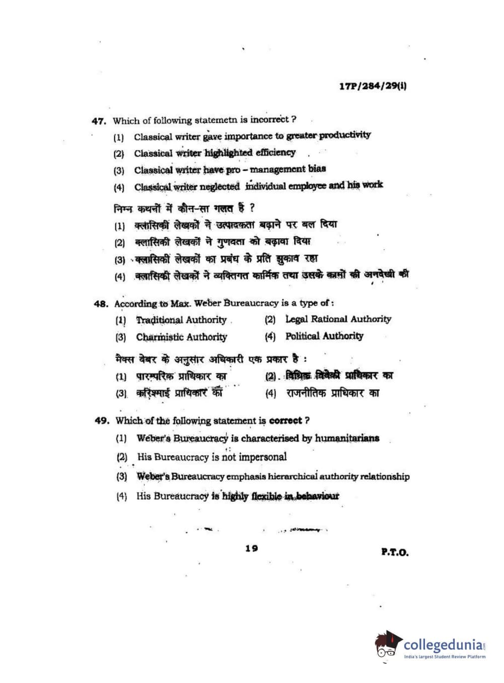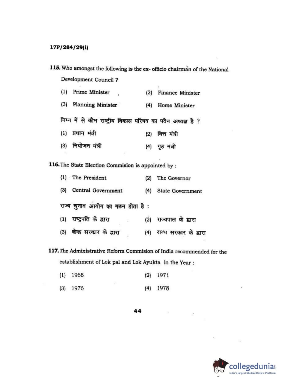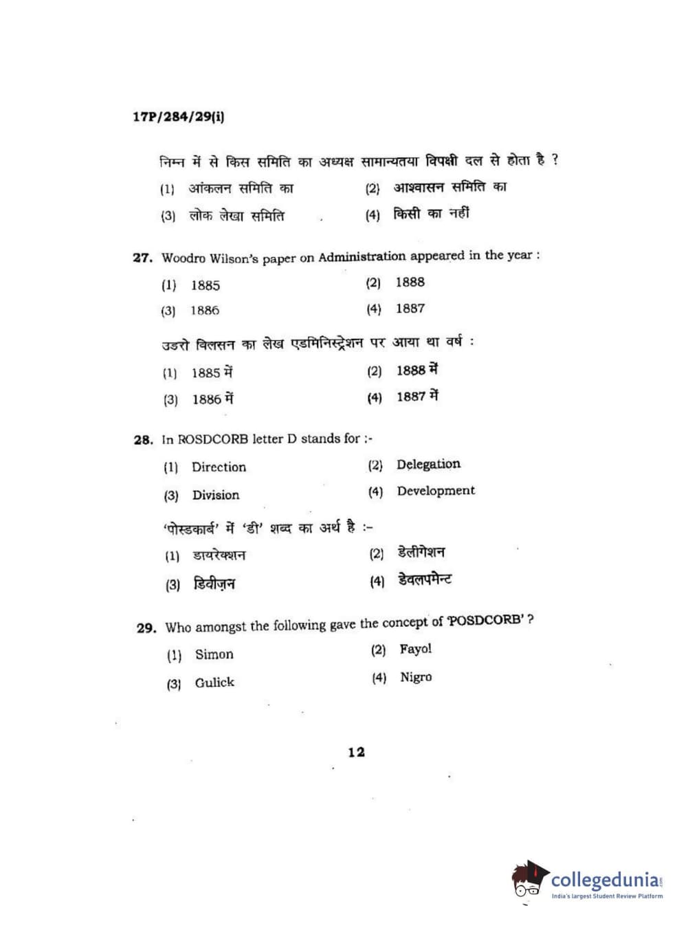 BHU PET 2017 M.A Public Administration Question Paper with Answer Key PDFs
