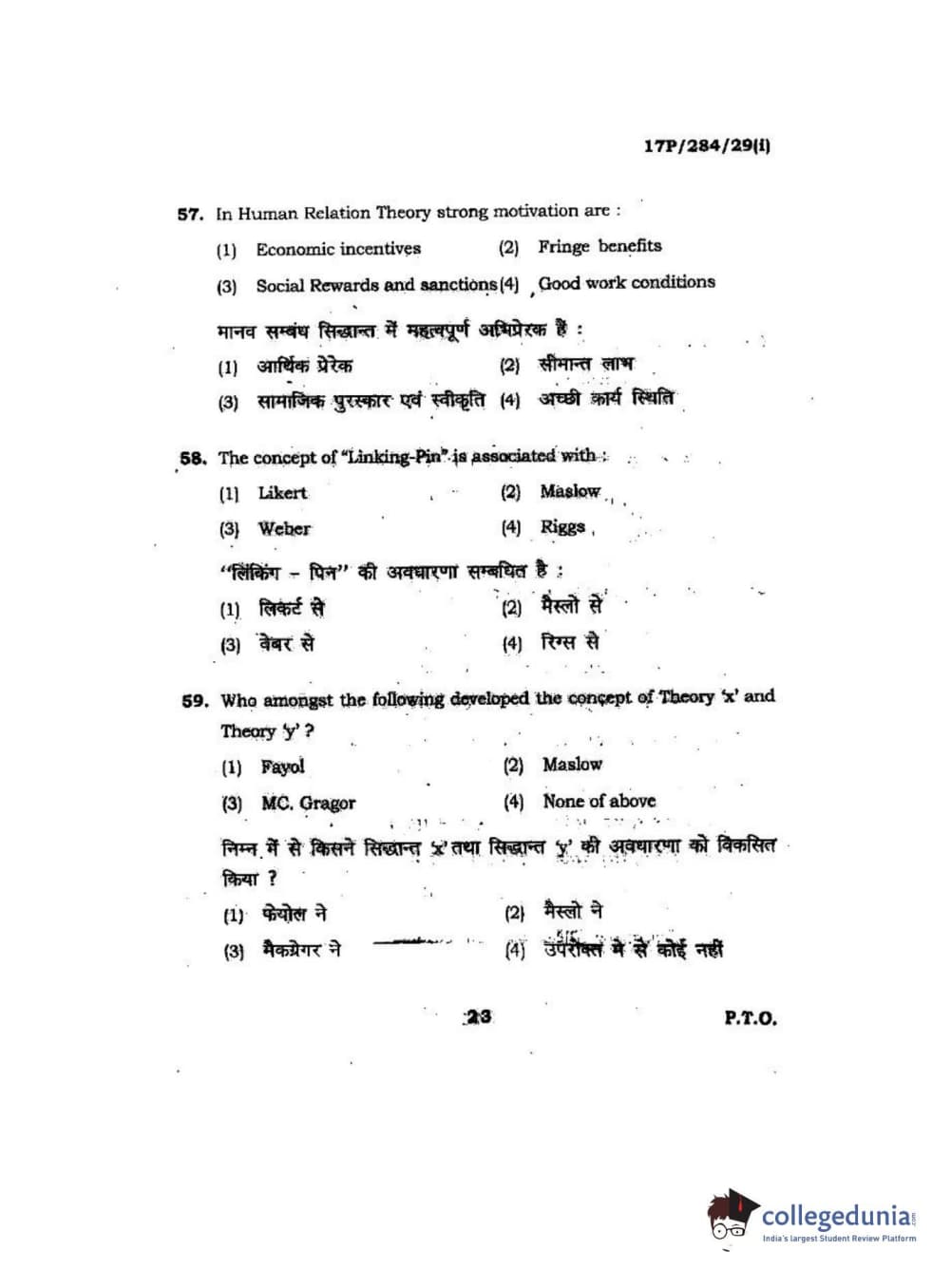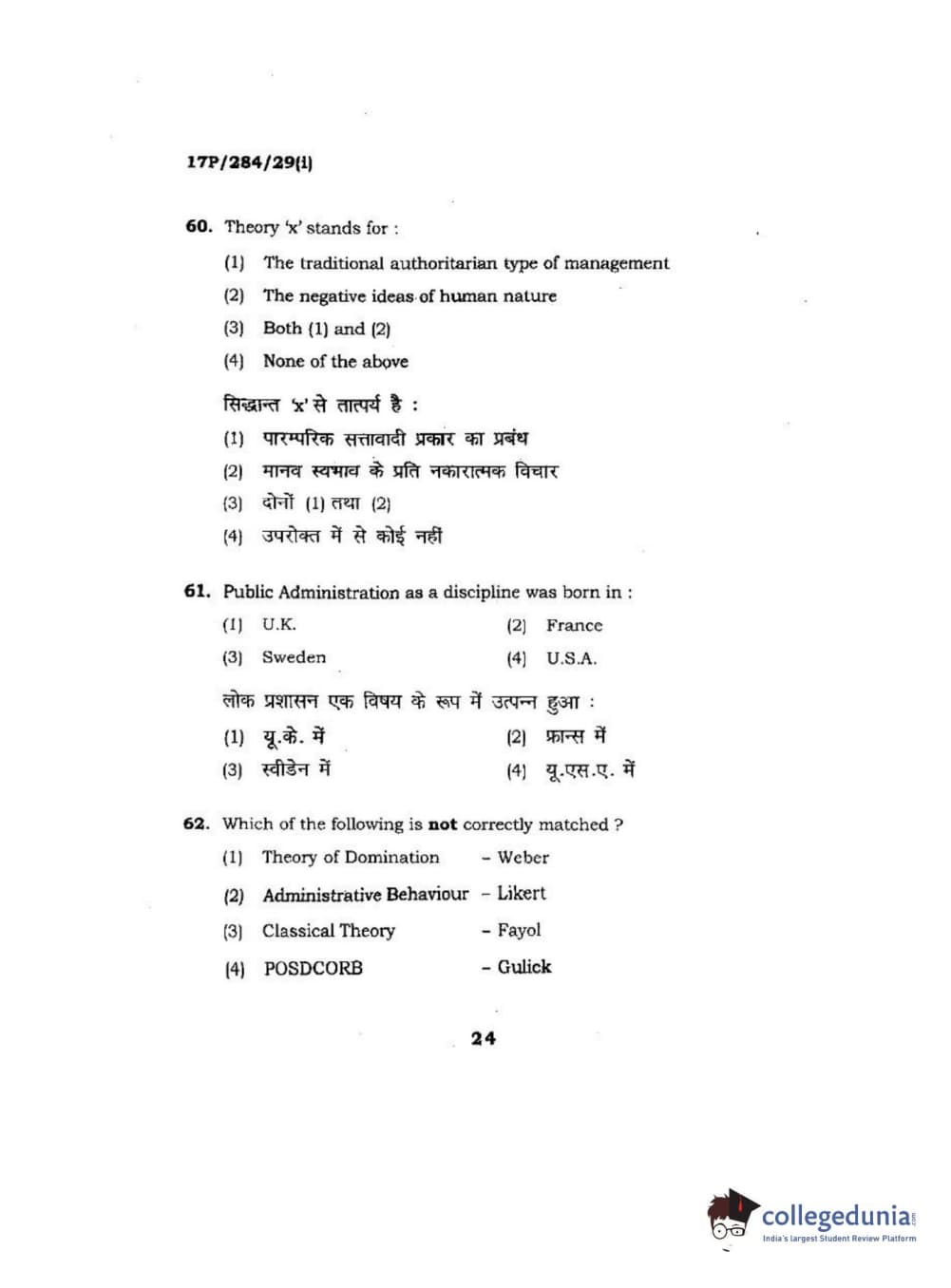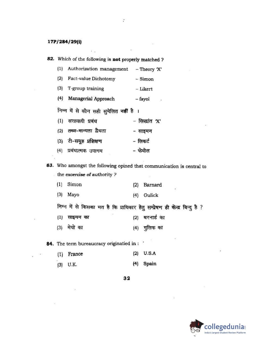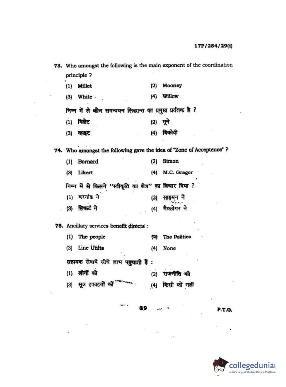 BHU PET 2017 M.A Public Administration Question Paper with Answer Key PDFs