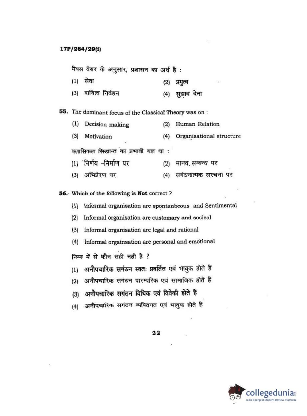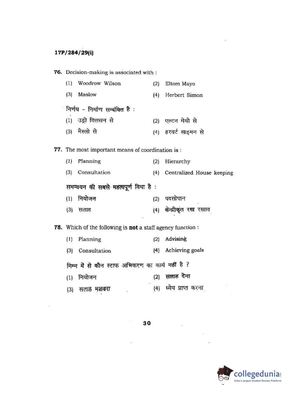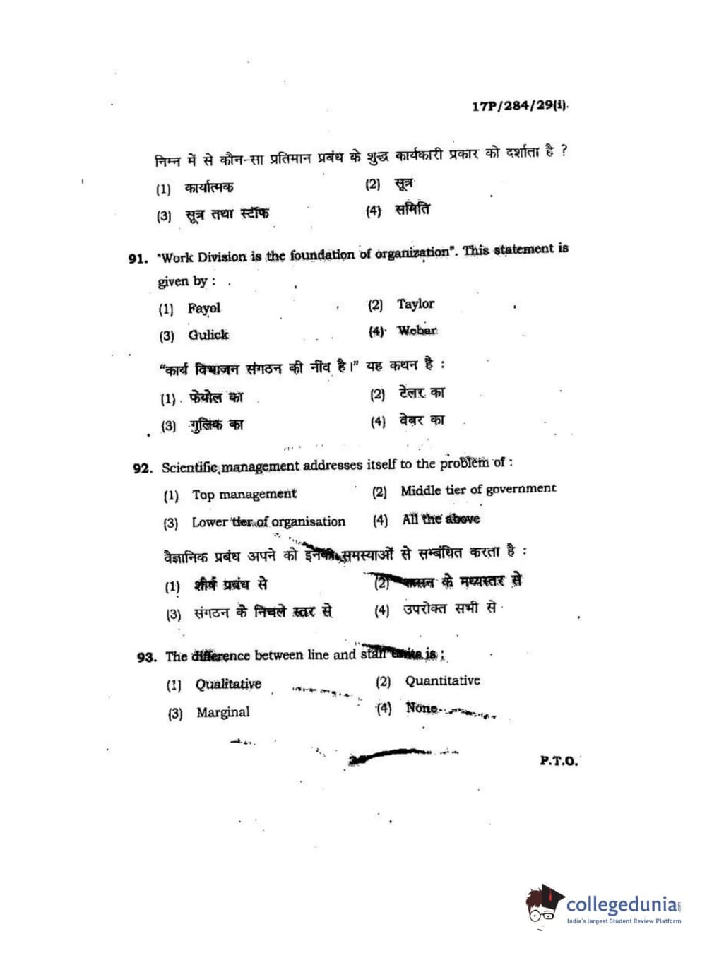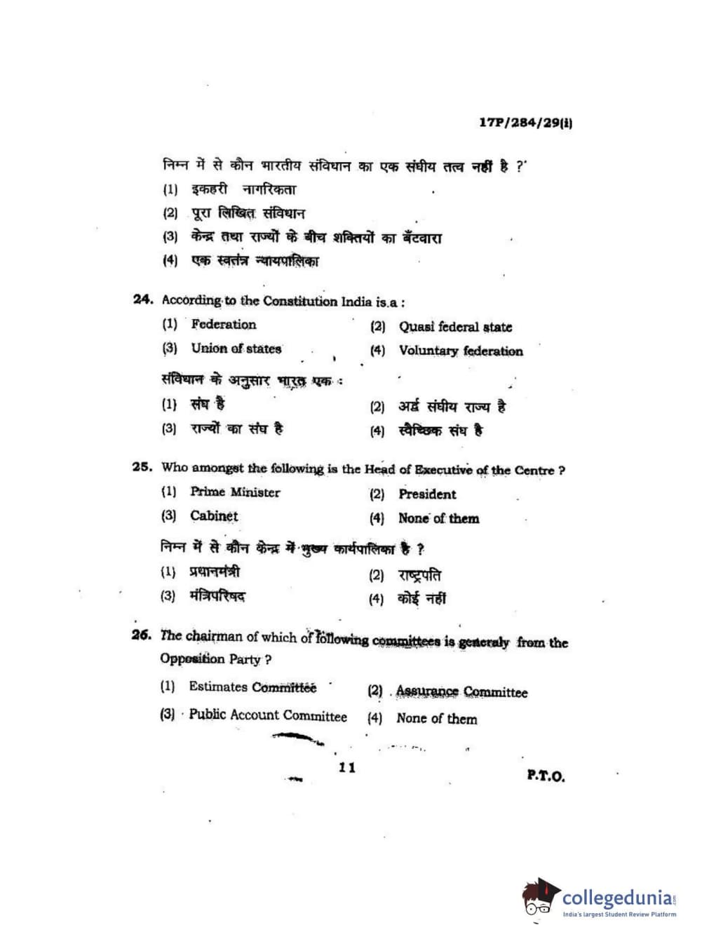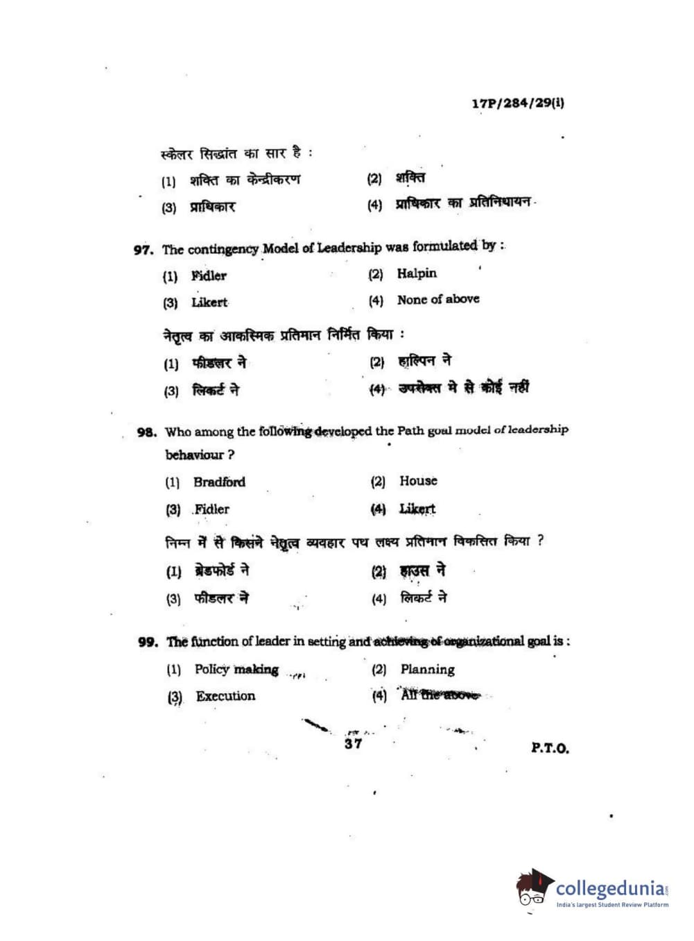 BHU PET 2017 M.A Public Administration Question Paper with Answer Key PDFs