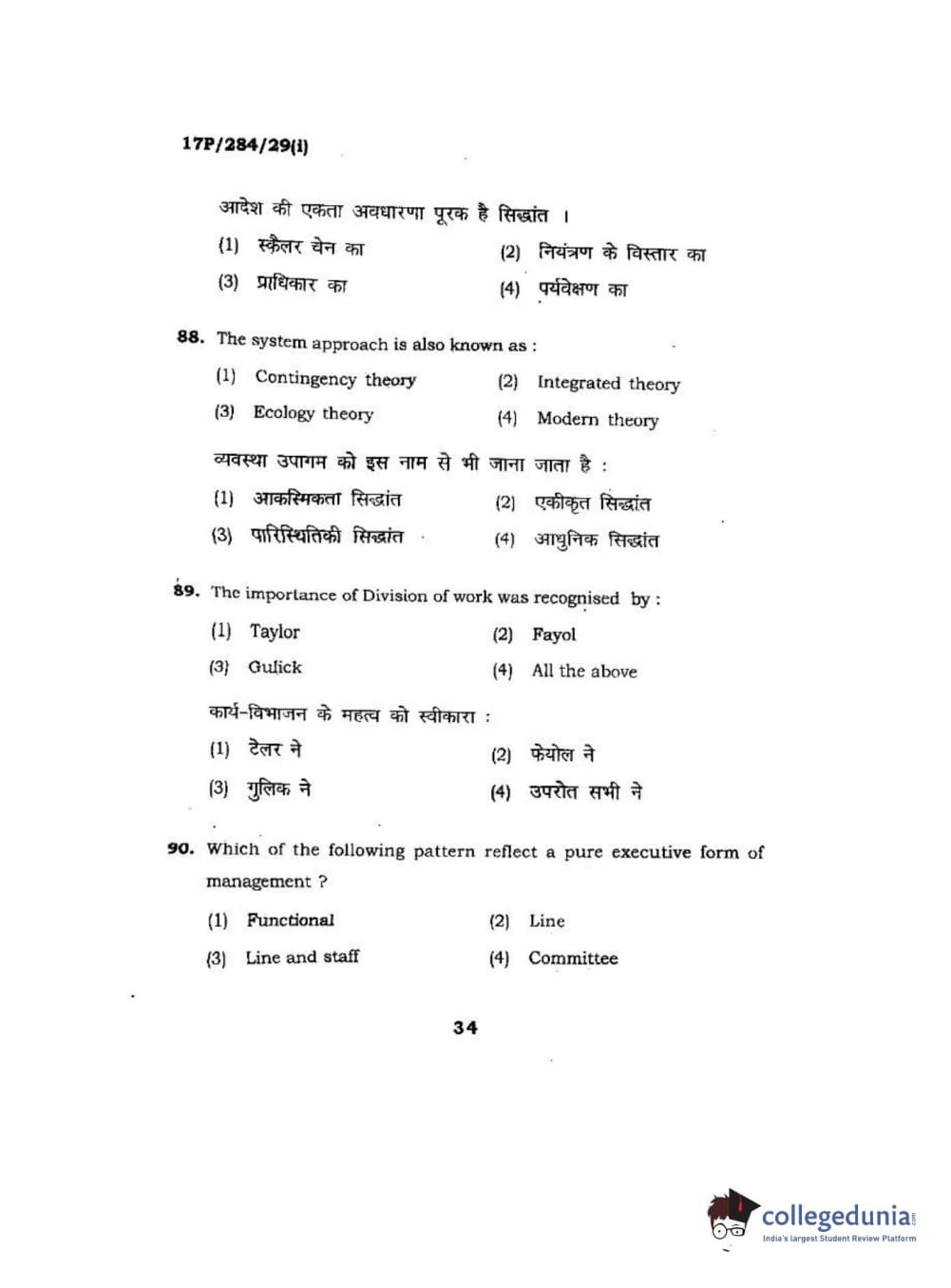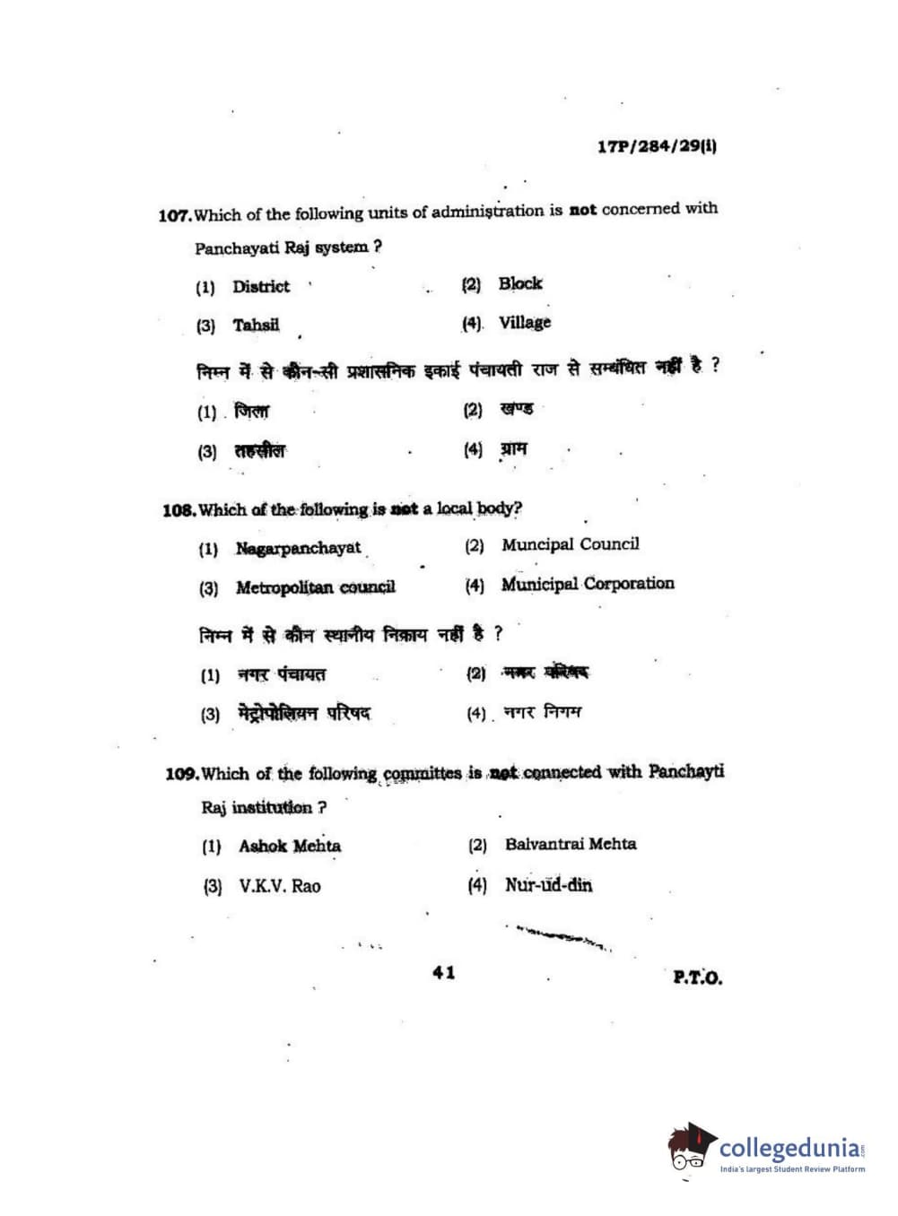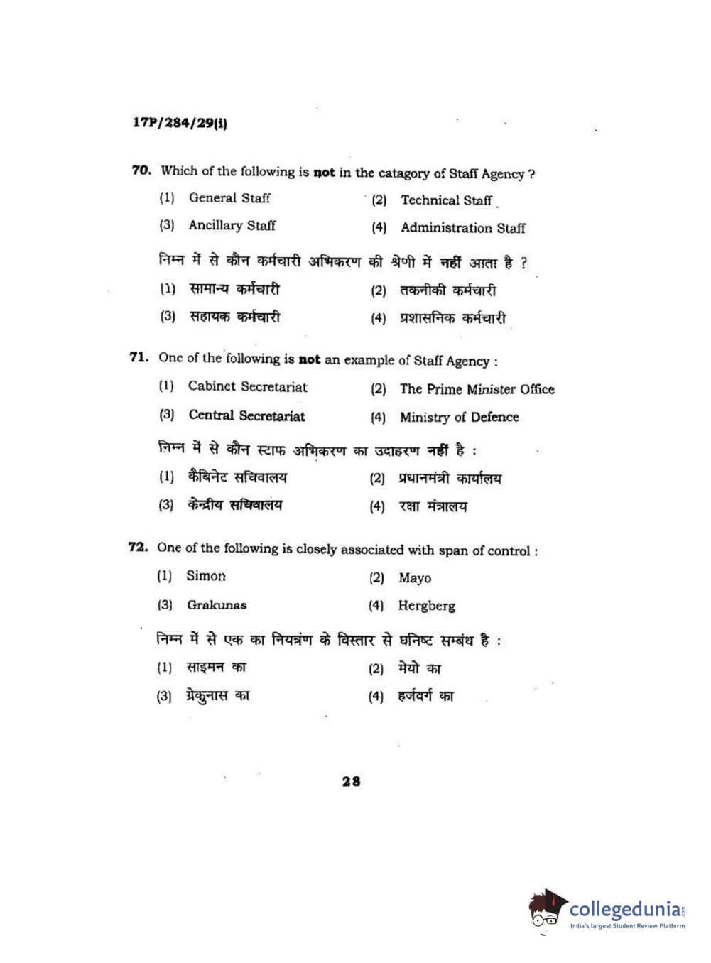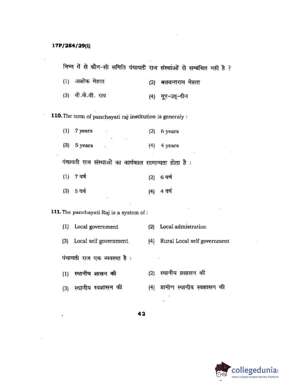 BHU PET 2017 M.A Public Administration Question Paper with Answer Key PDFs